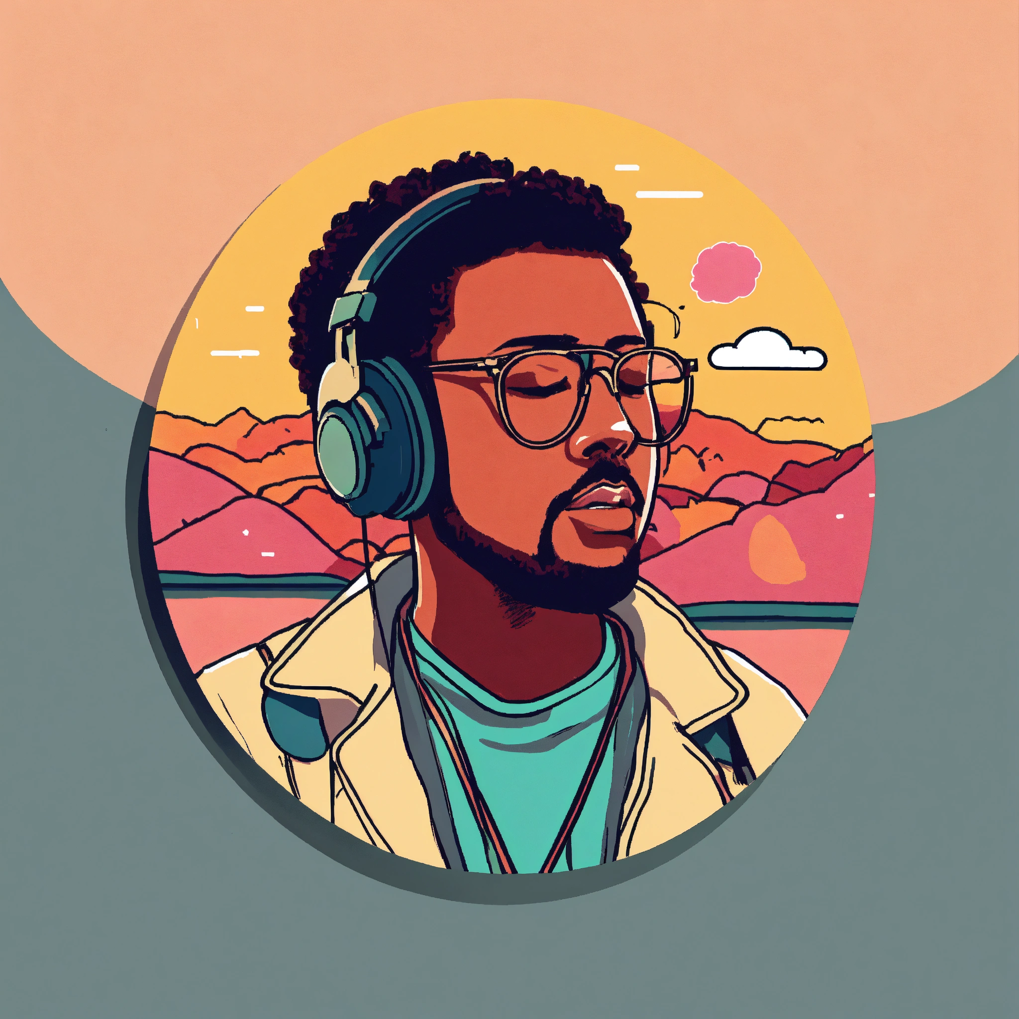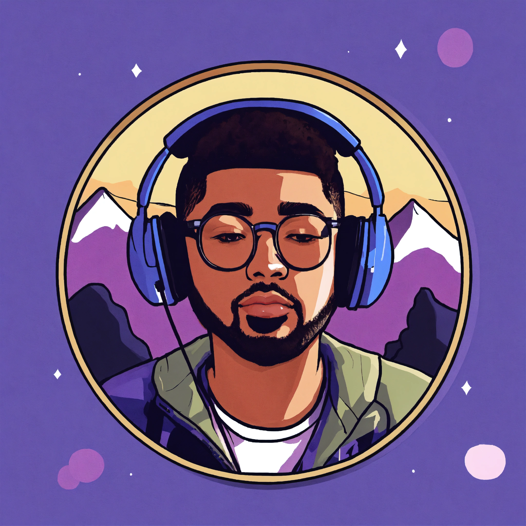 Badge with profile picture of a fan listening to lo-fi music with minimalist design