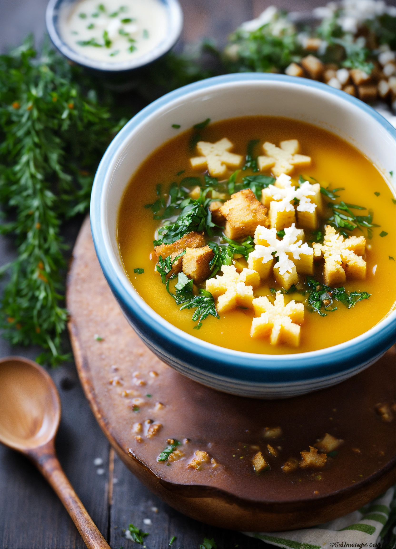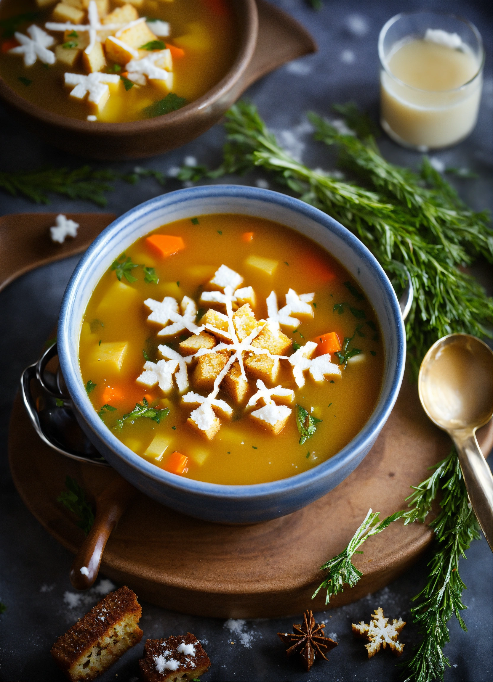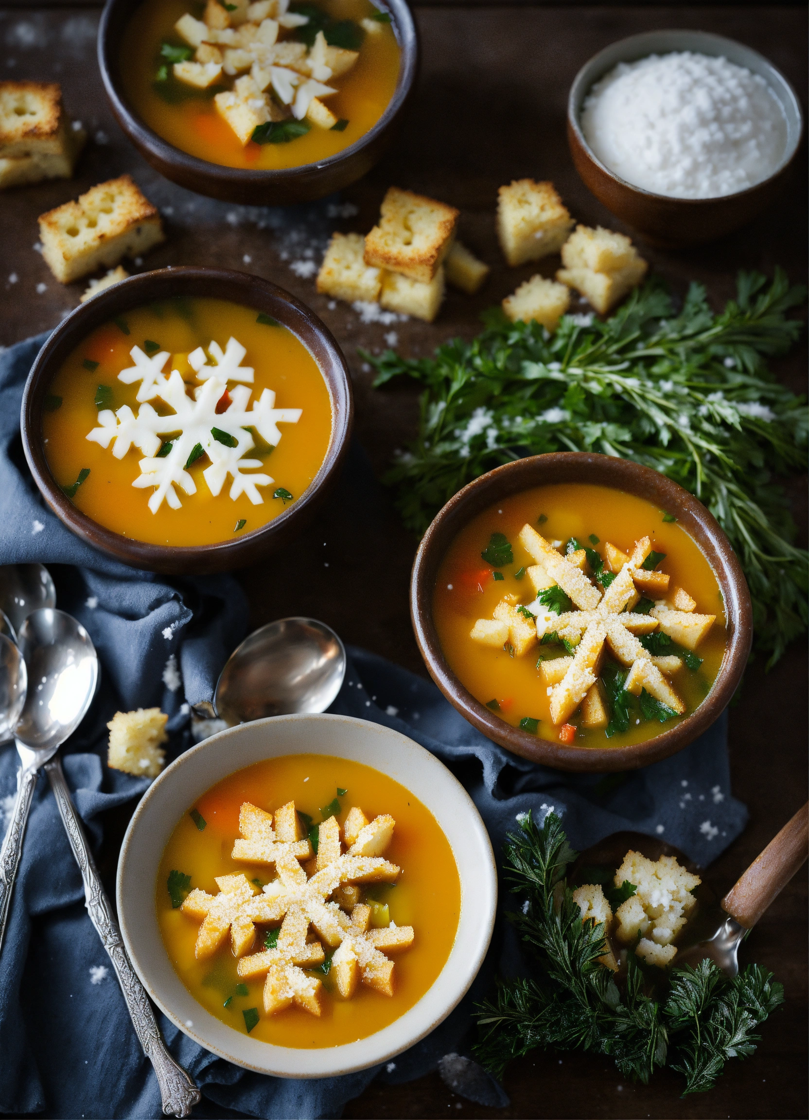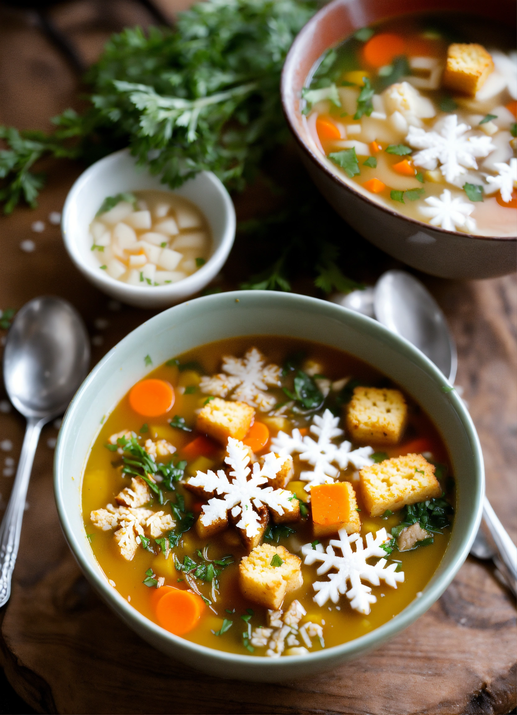 Umbrella's snowfall soup a hearty winter soup with snowflake-shaped croutons