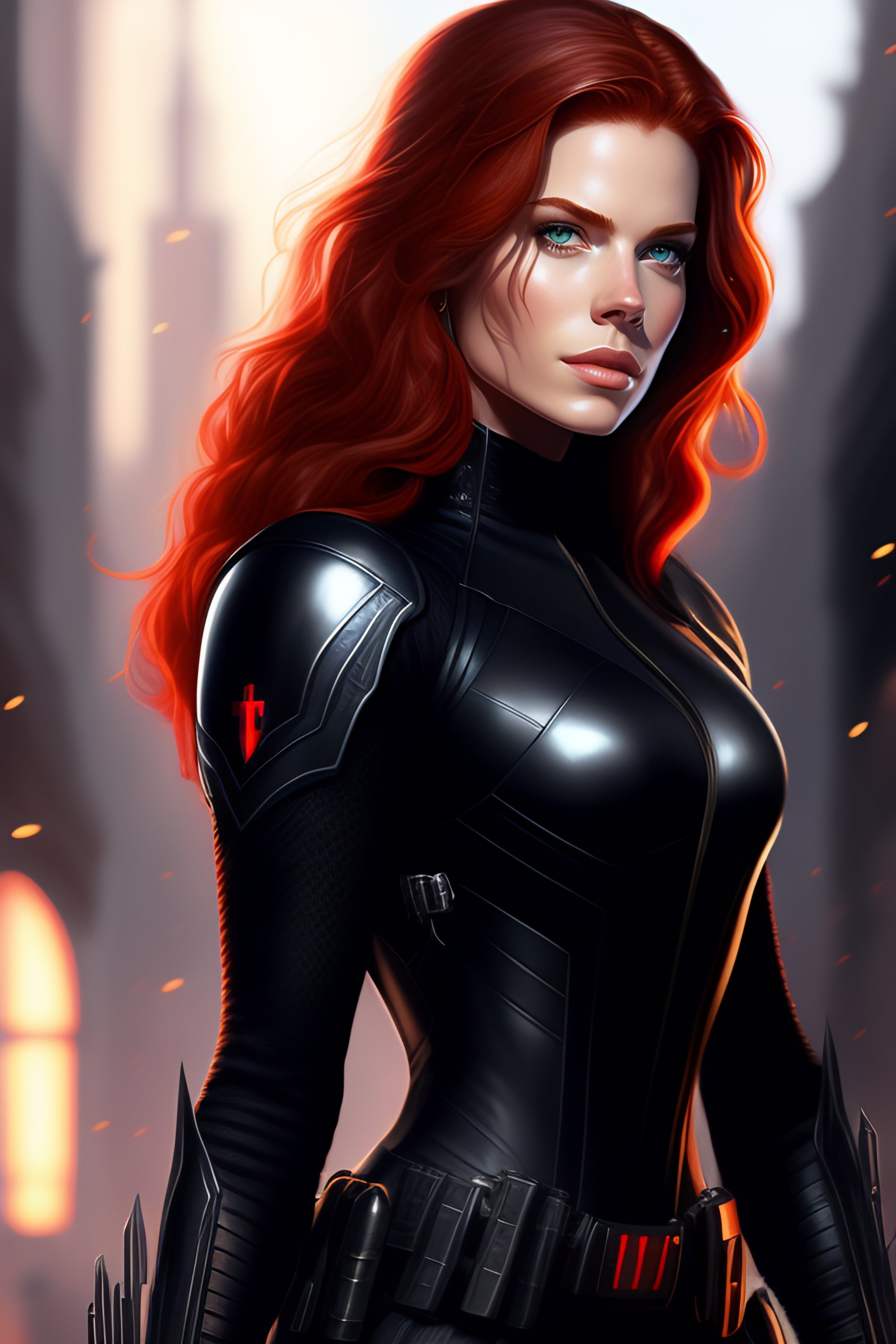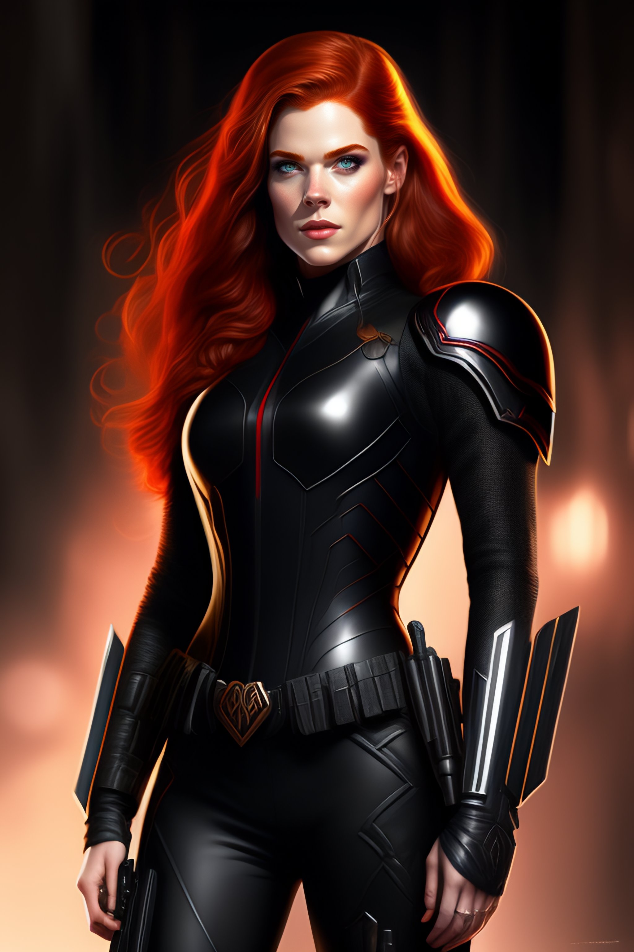 Full body intense potrait of thin muscular rose leslie as black widow, gun in hand in full balck suit armour, illustration, in the style of fernando juarez, epic, fantasy, intricate, elegant, amazing detail, digital painting, artstation, concept art, smooth, sharp focus, illustration
