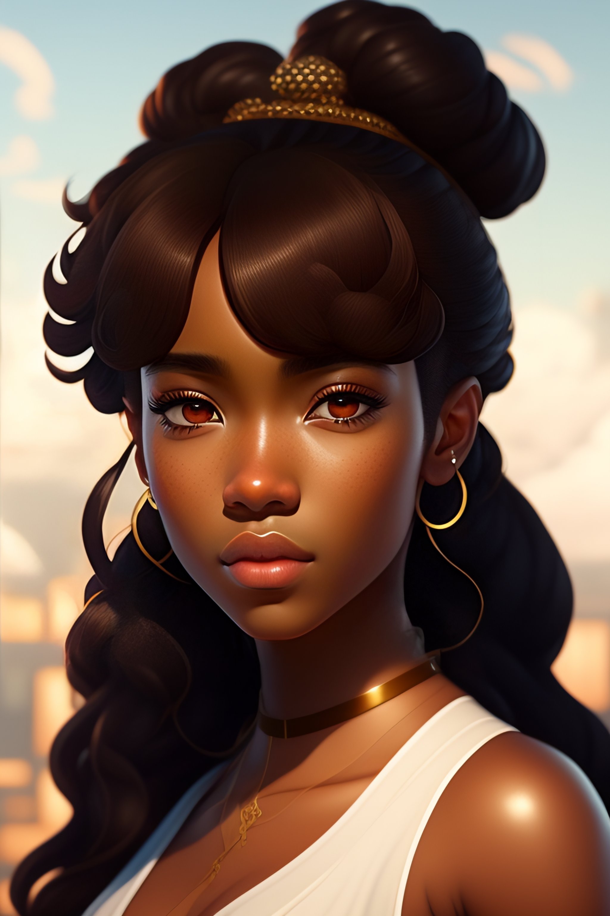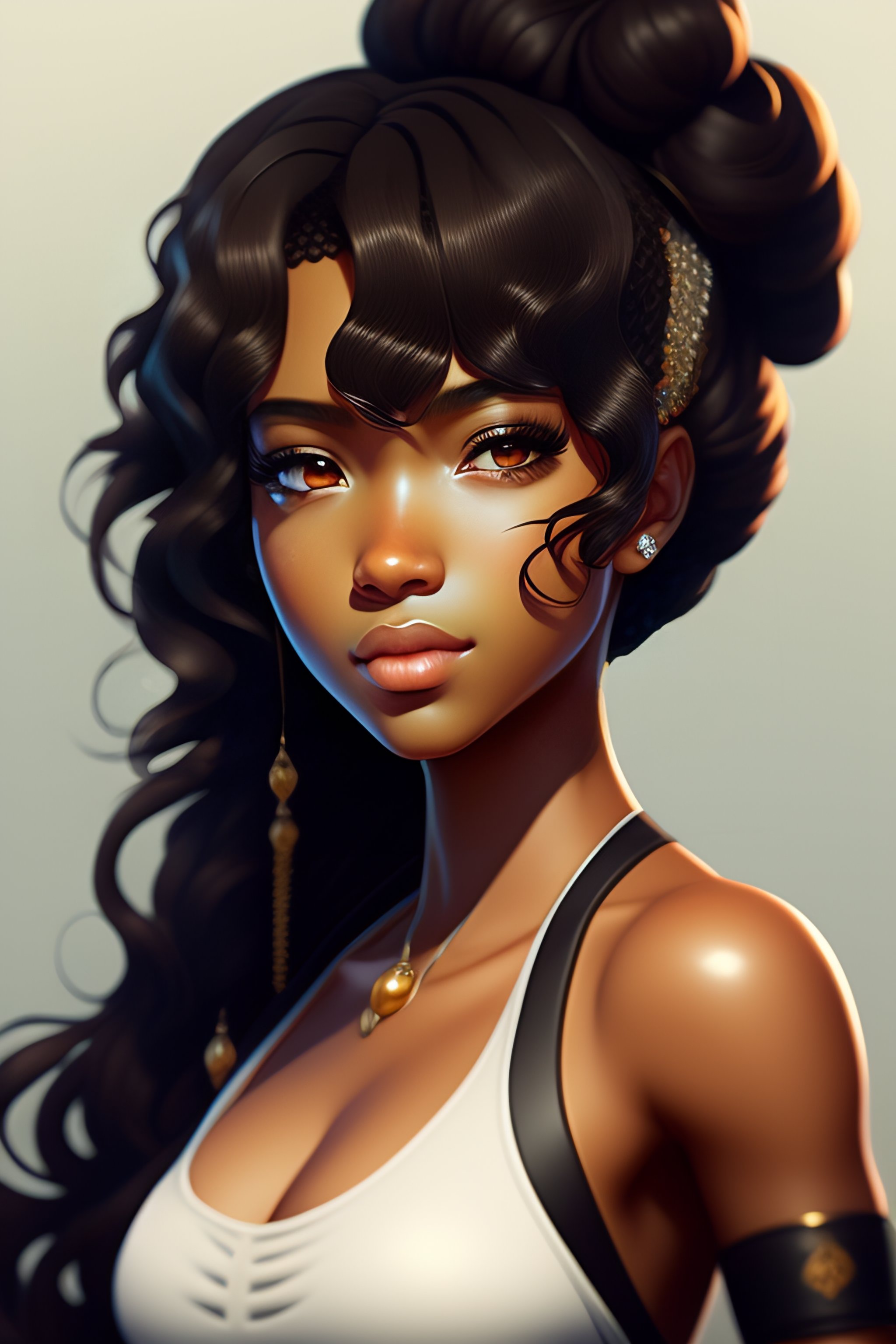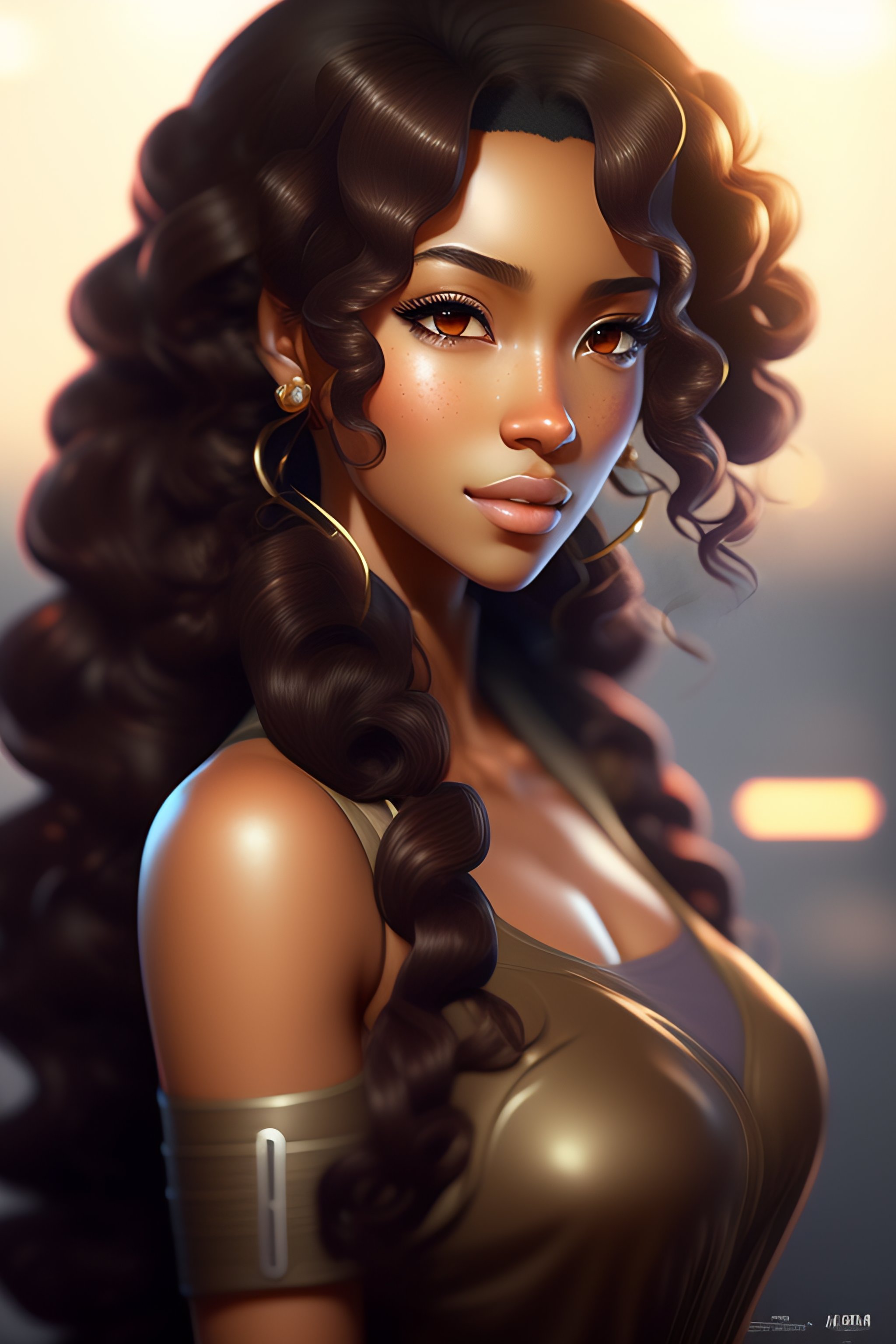 Anime portrait of brown girl with black curly hair, anime masterpiece, highly detailed, artstation, 8k
