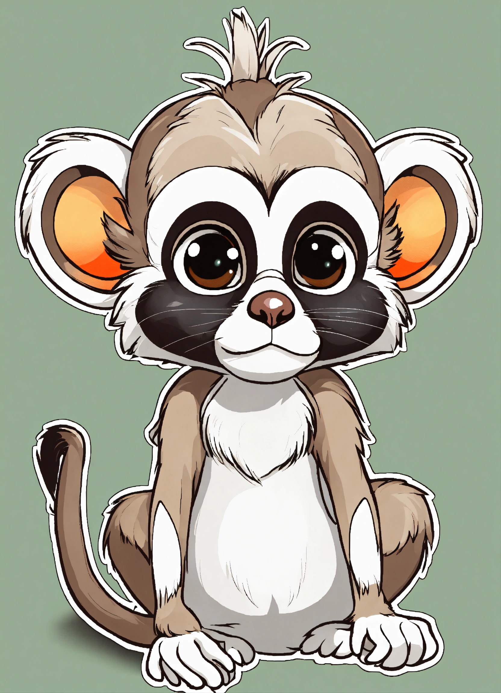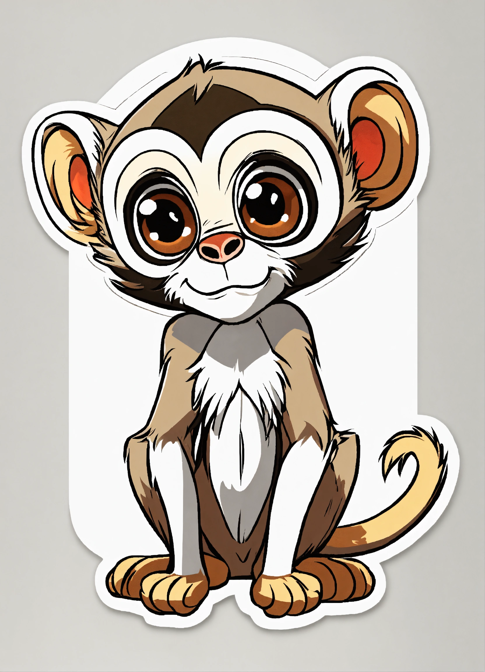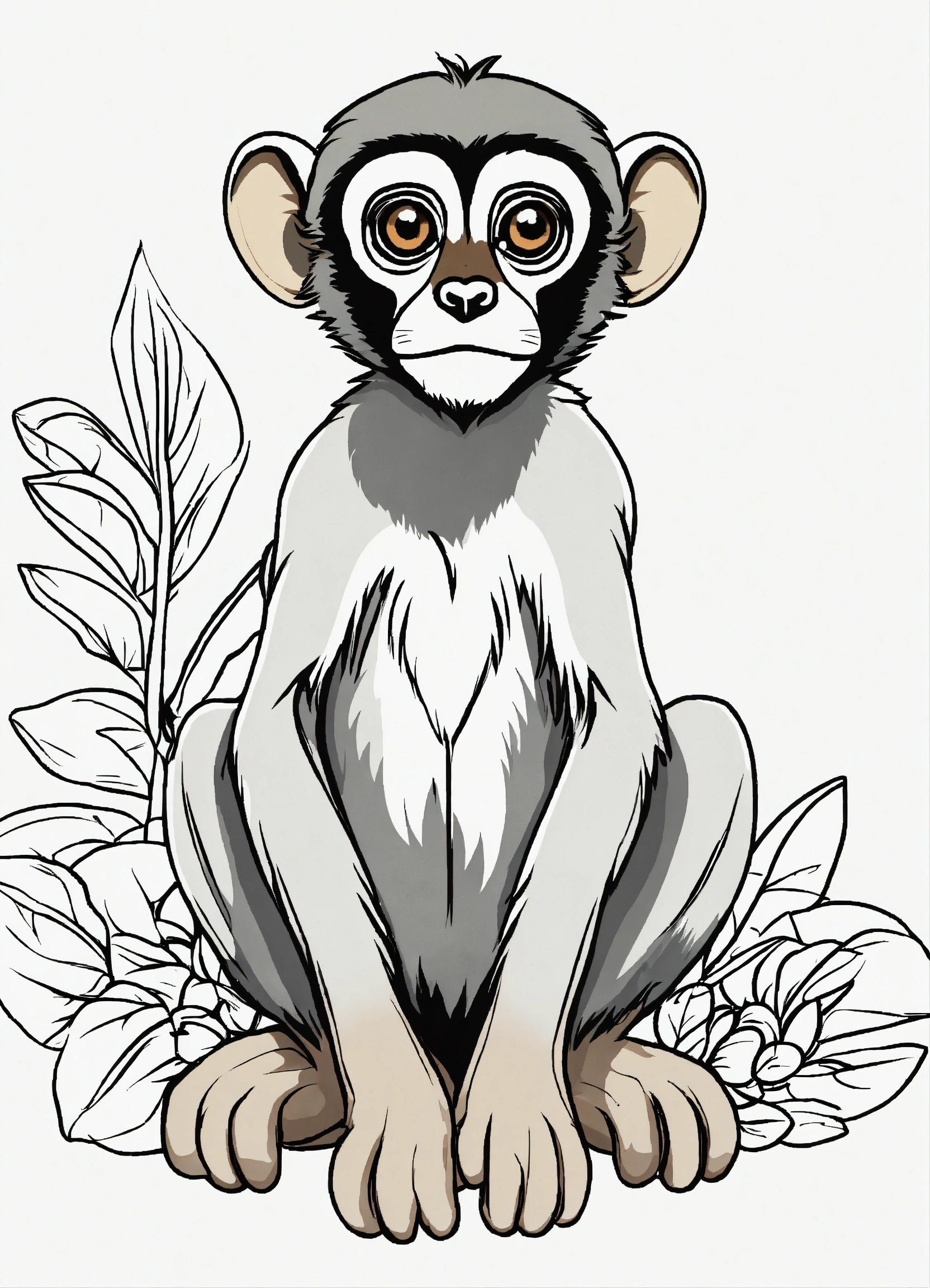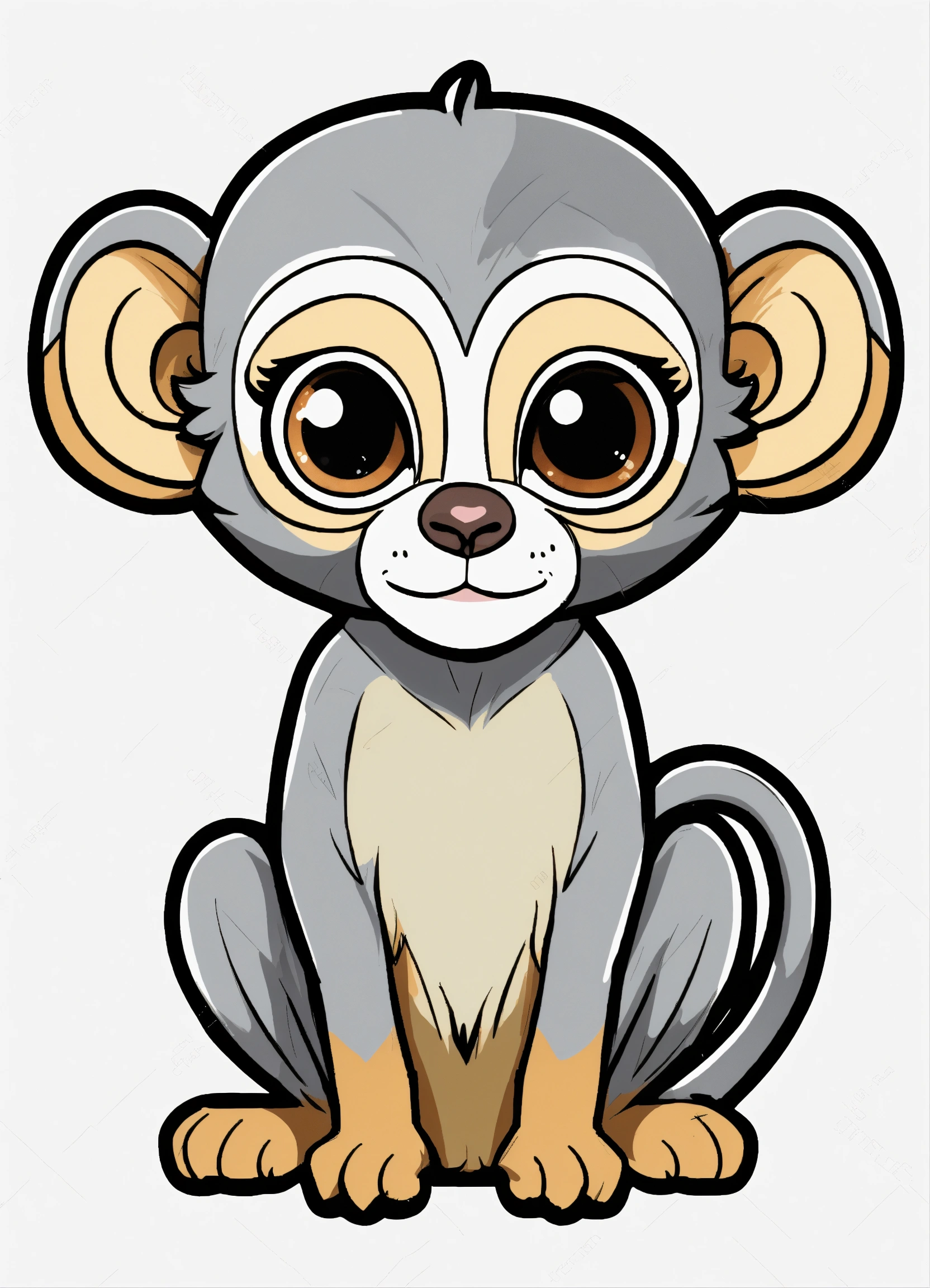 Generate a cute vervet monkey, resolution, cartoon-sticker style with clear lines on a pure white background suitable for a children's coloring book.