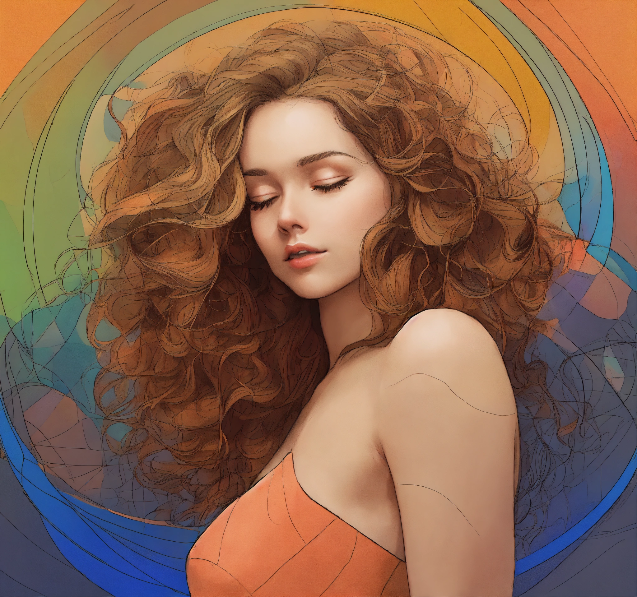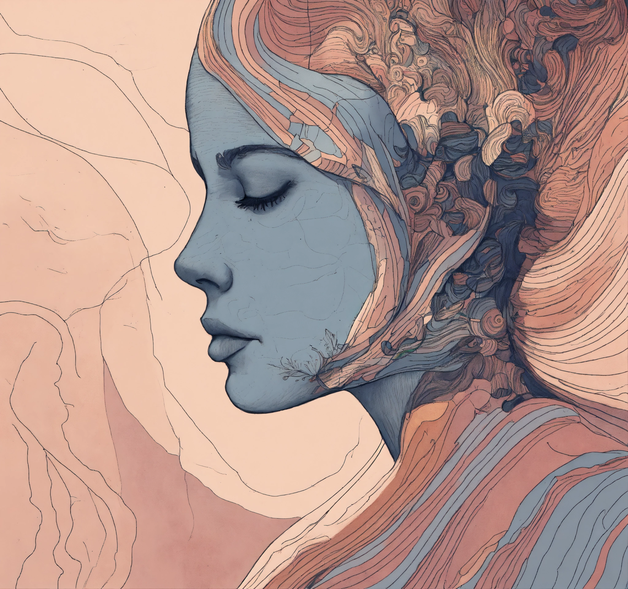 Create me a minimalist sketch where solely the contours are and what fits on a round canvas