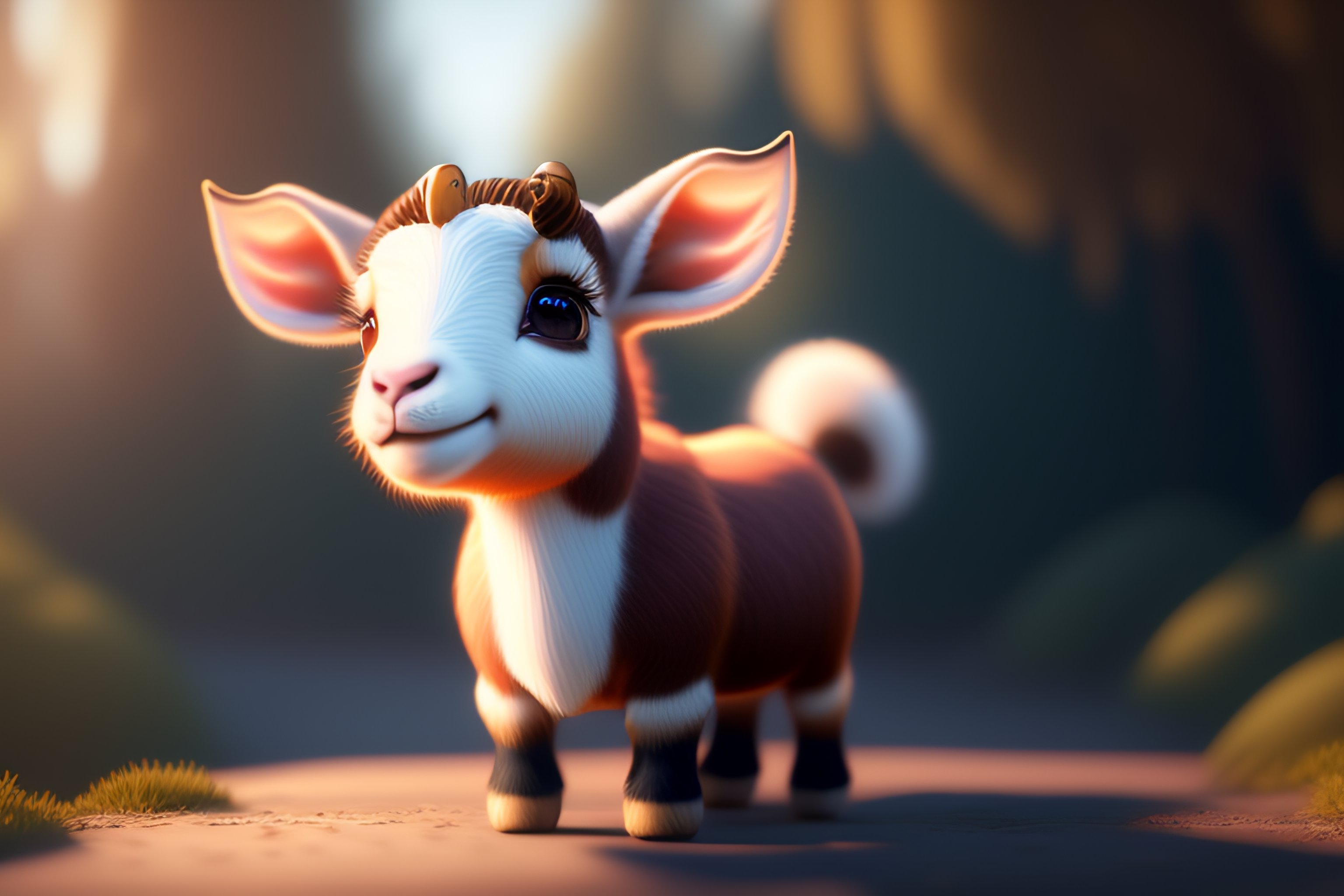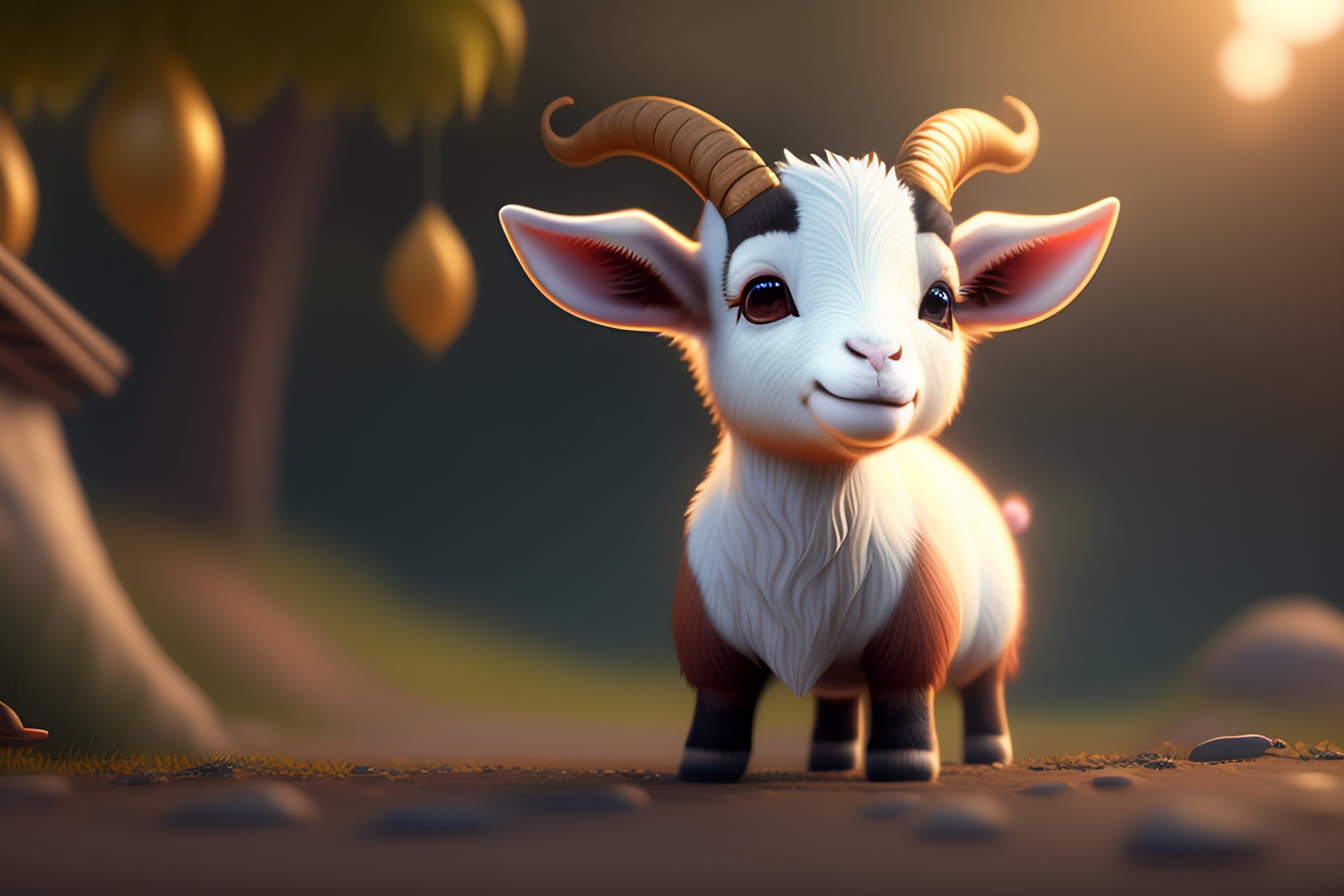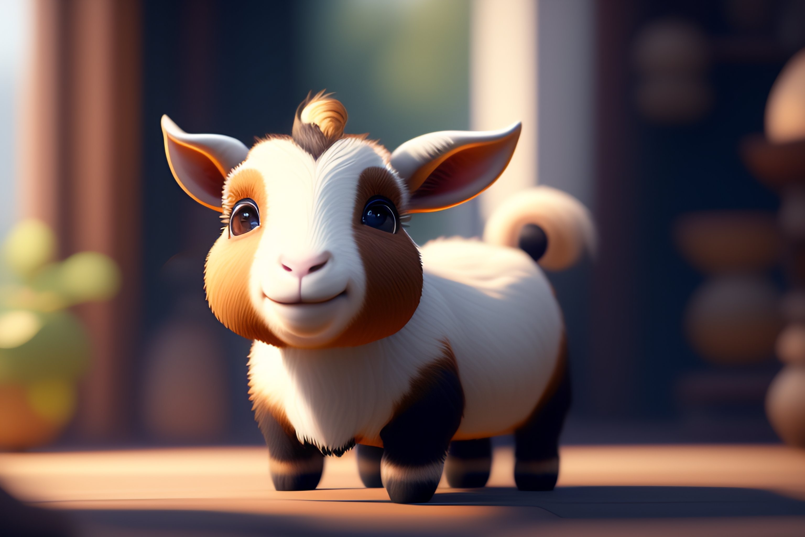 Cute adorable little goat waving and smiling greeting me, unreal engine, cozy interior lighting, art station, detailed digital painting, cinematic, character design by mark ryden and pixar and hayao miyazaki, unreal 5, daz, hyper realistic, octane rendering
