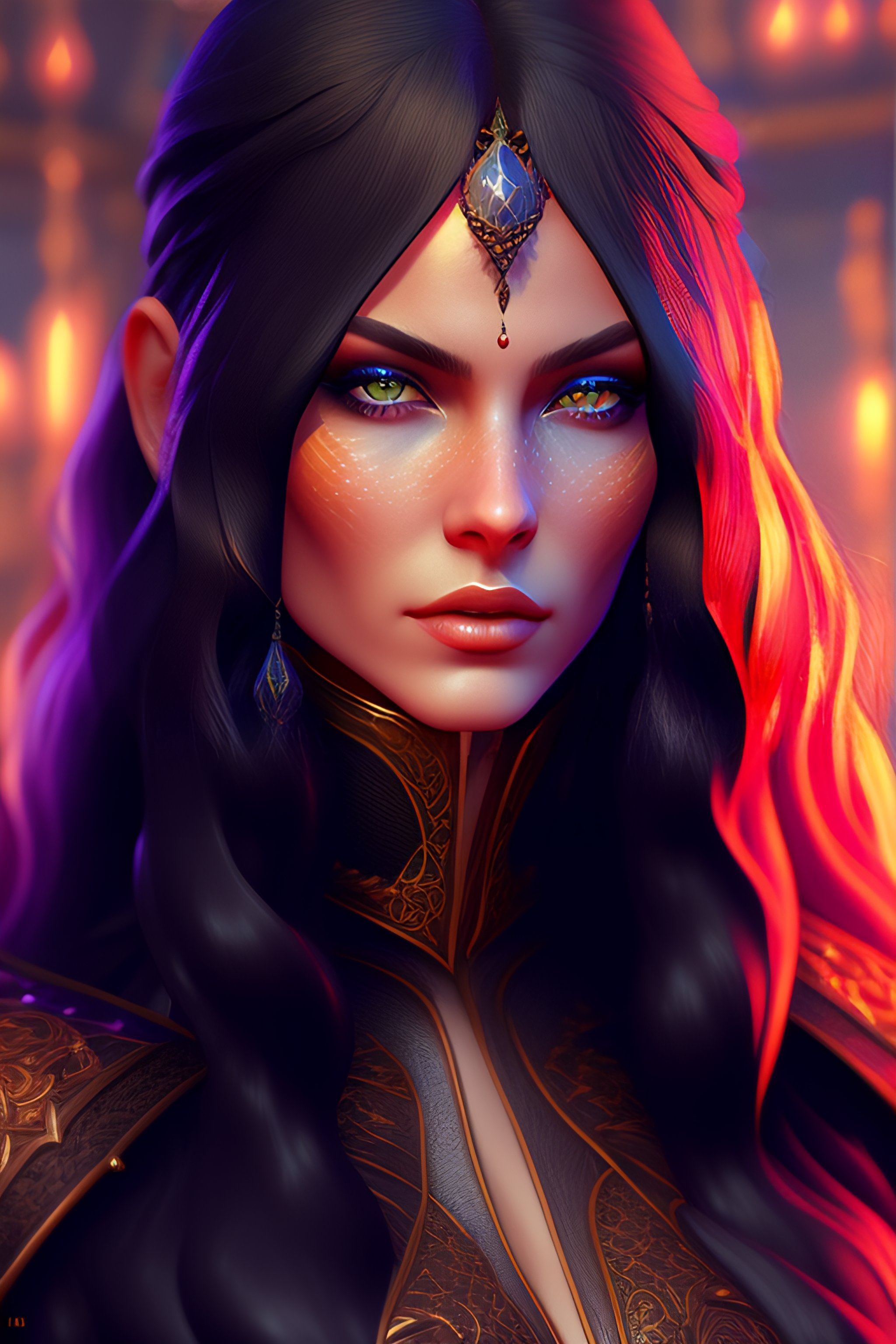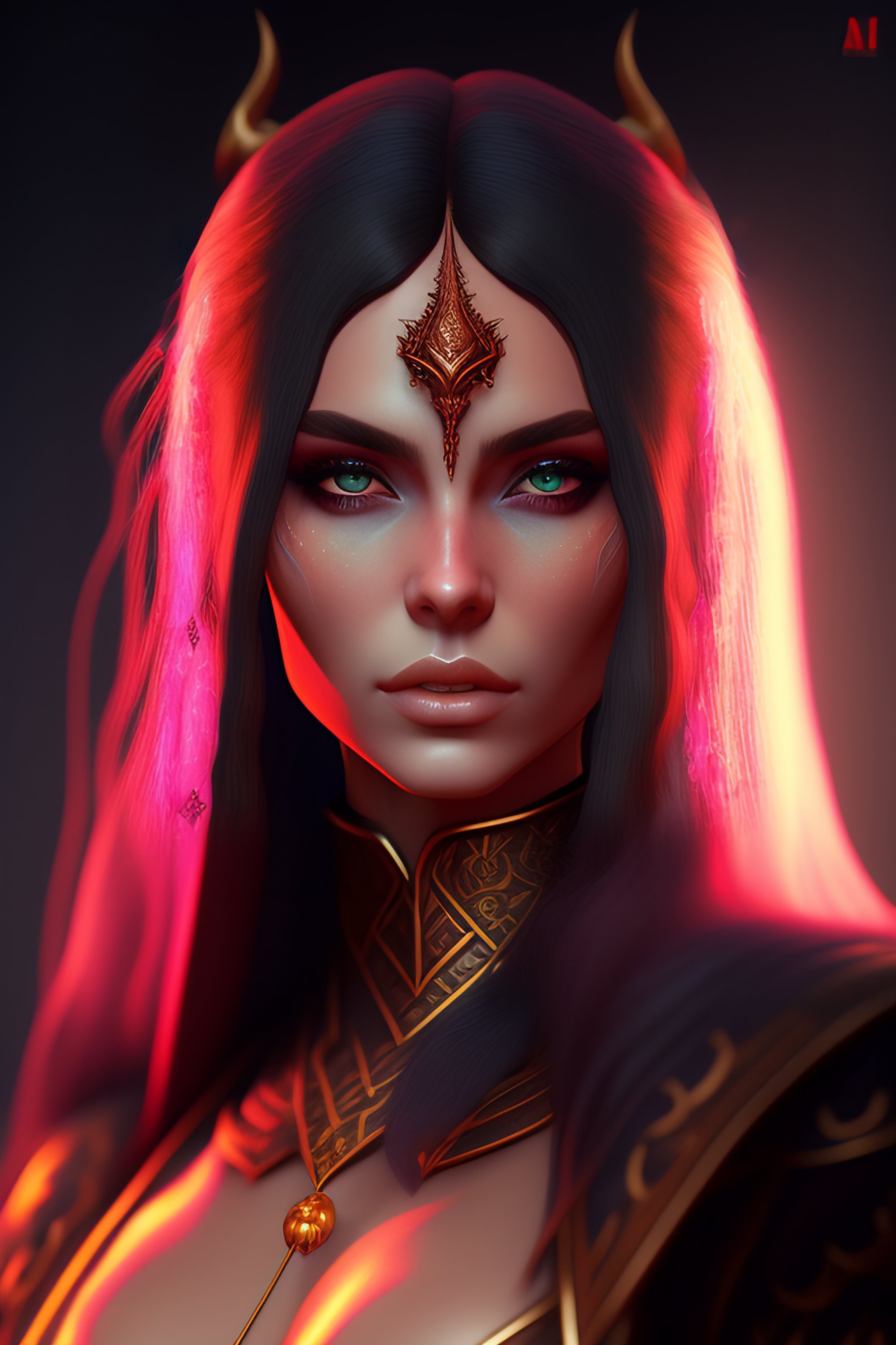 Demon wizard girl. concept art portrait of casey weldon, olga kvashi, miho hirano, super-detailed intricately-detailed gothic graphics in the artstation process color trend. unreal engine 5., 8k resolution, deviantart gothic masterpiece