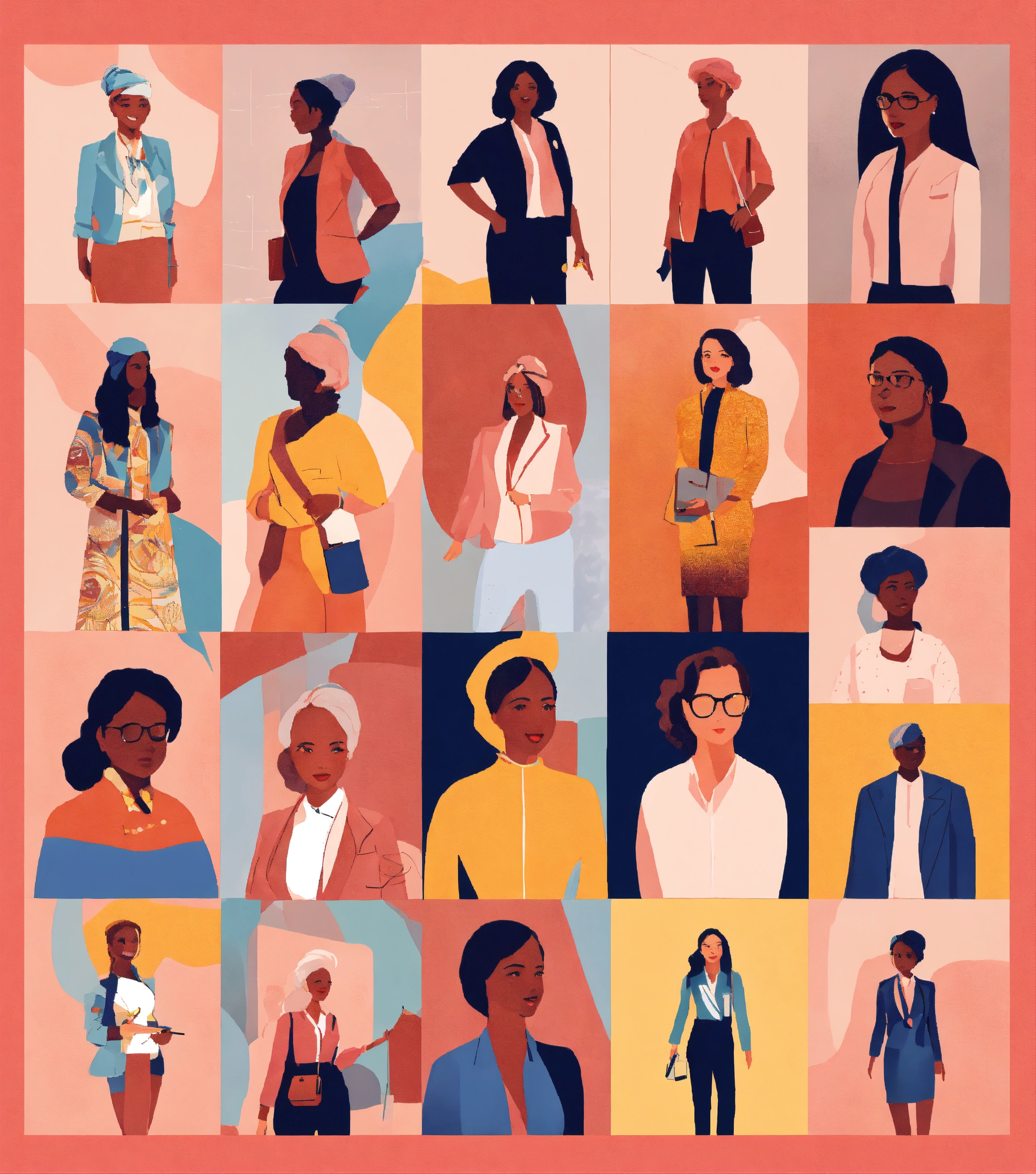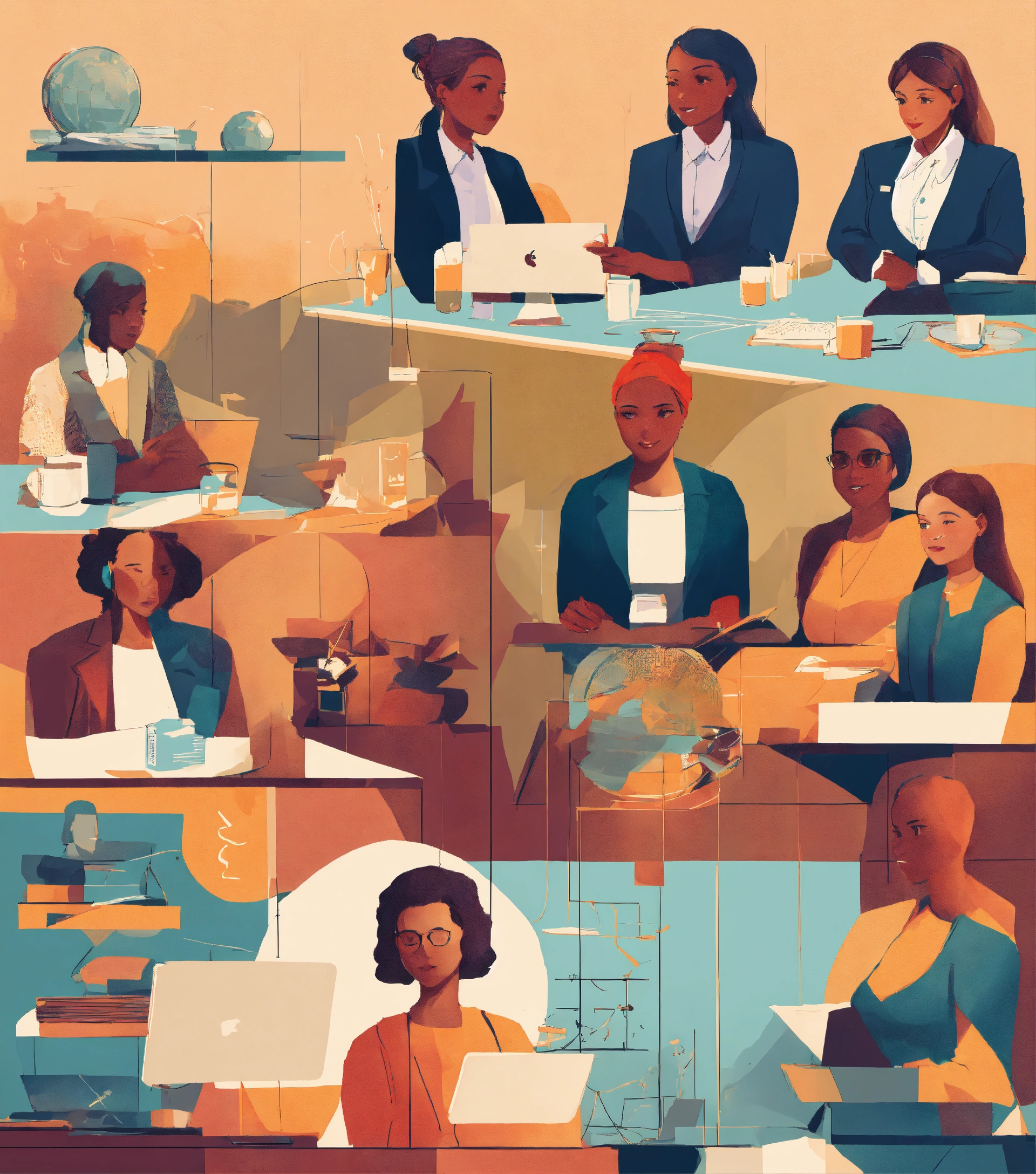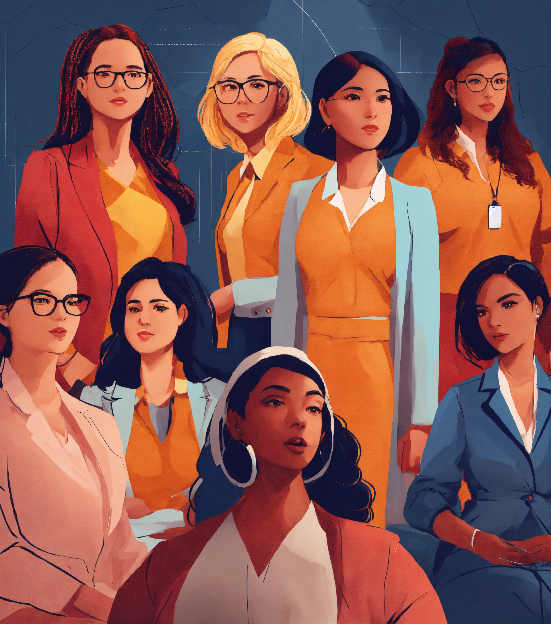 illustrations of women in different leadership roles and sectors in future