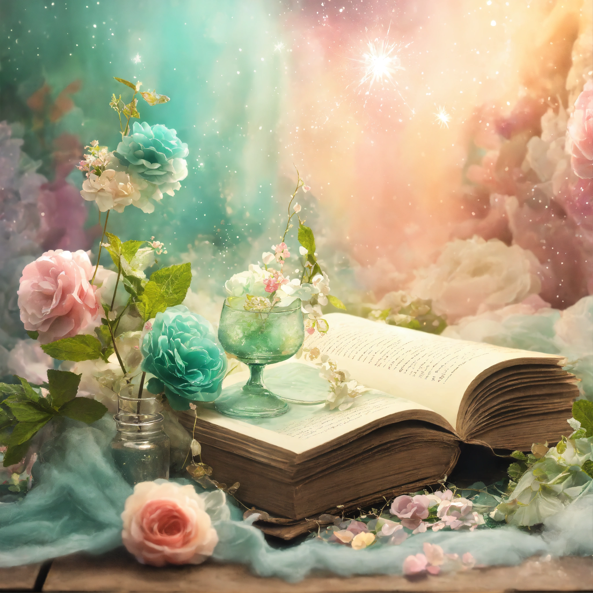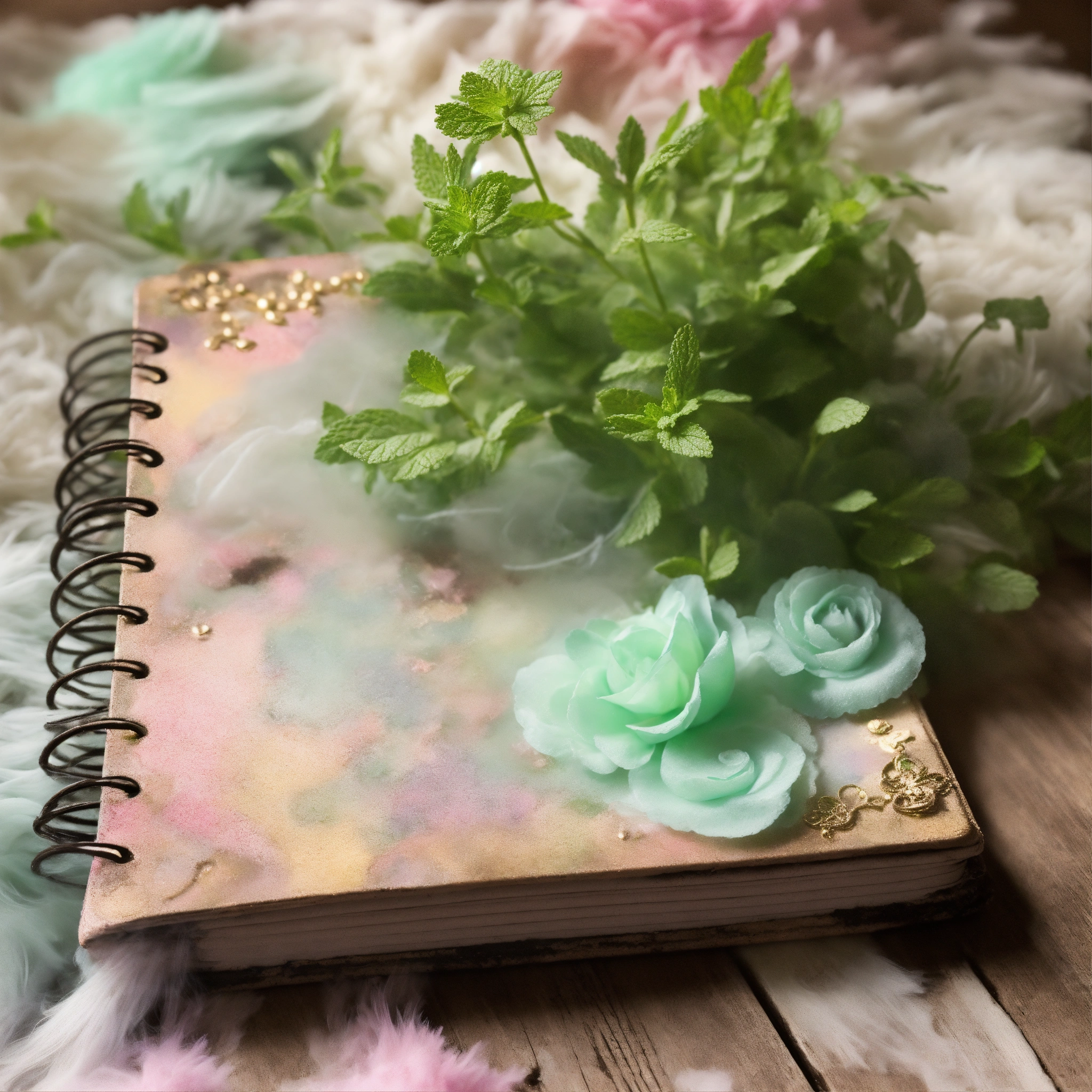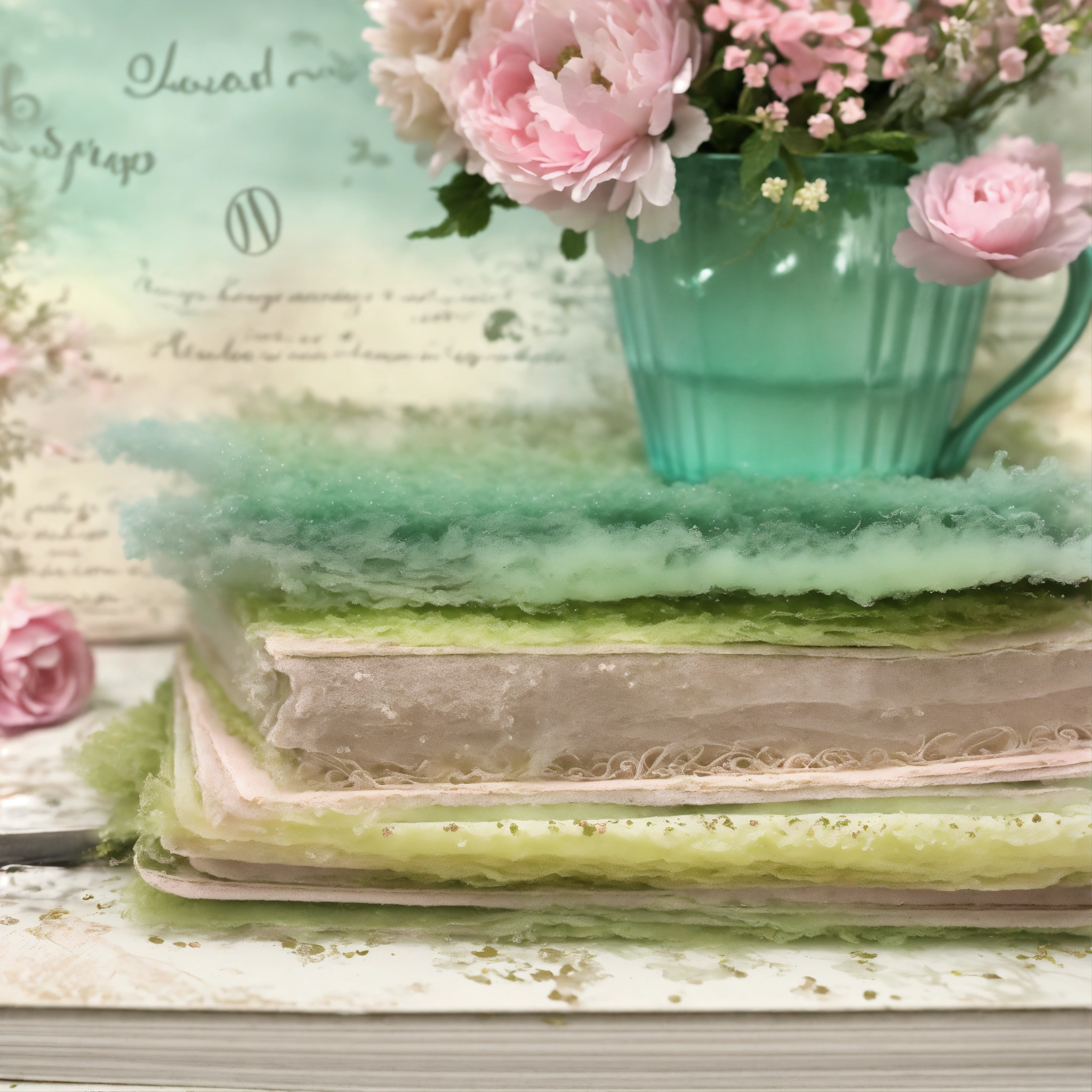 Shabby chic dreamy mist pastel junk journals mint julep swirling magical fairytale abstract art style