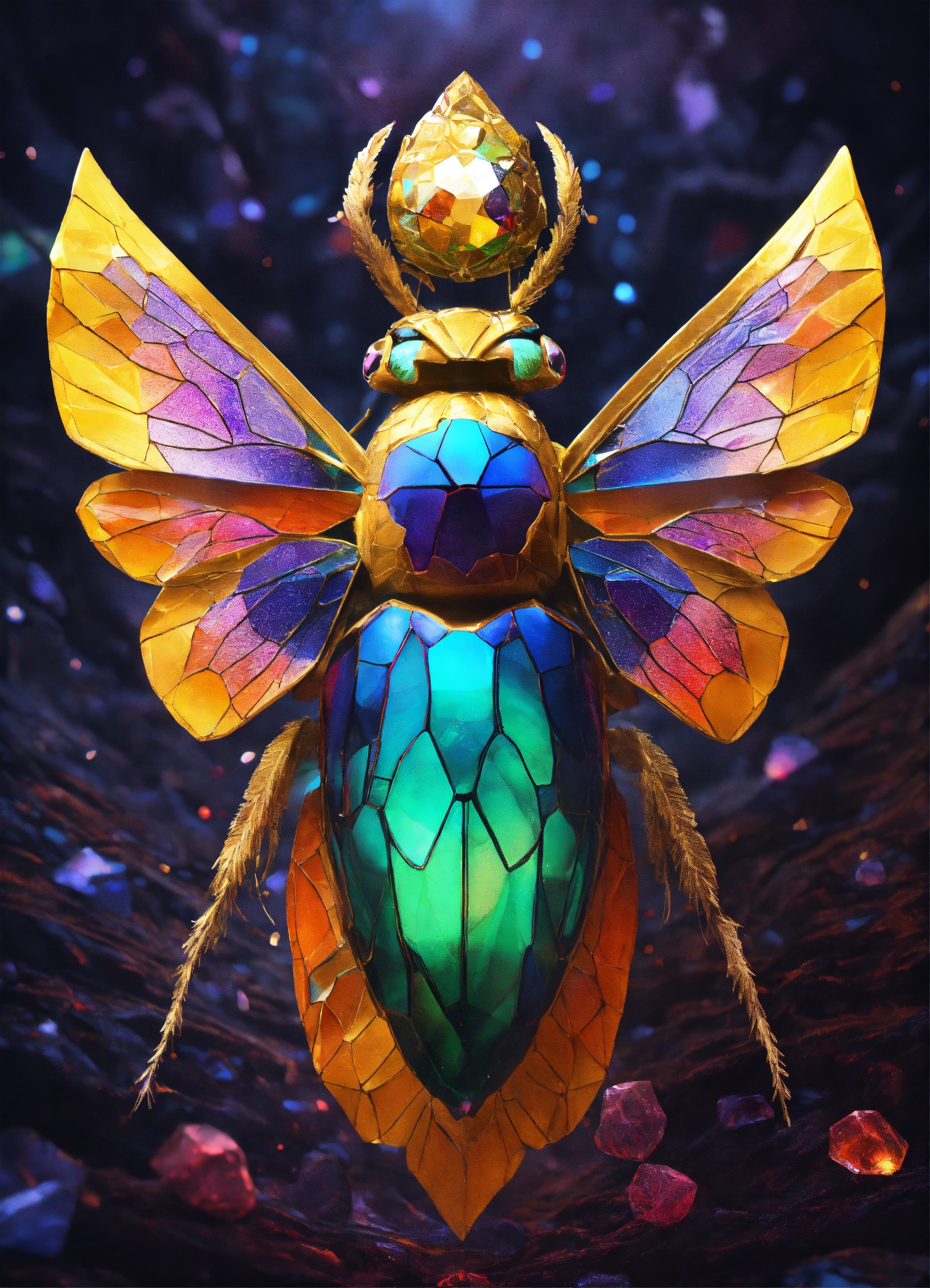 12. chromatic chrysaliscarab its crystalline carapace reflects a dazzling array of colors, shimmering in 8k ultra 3d, symbolizing transformation and rebirth.