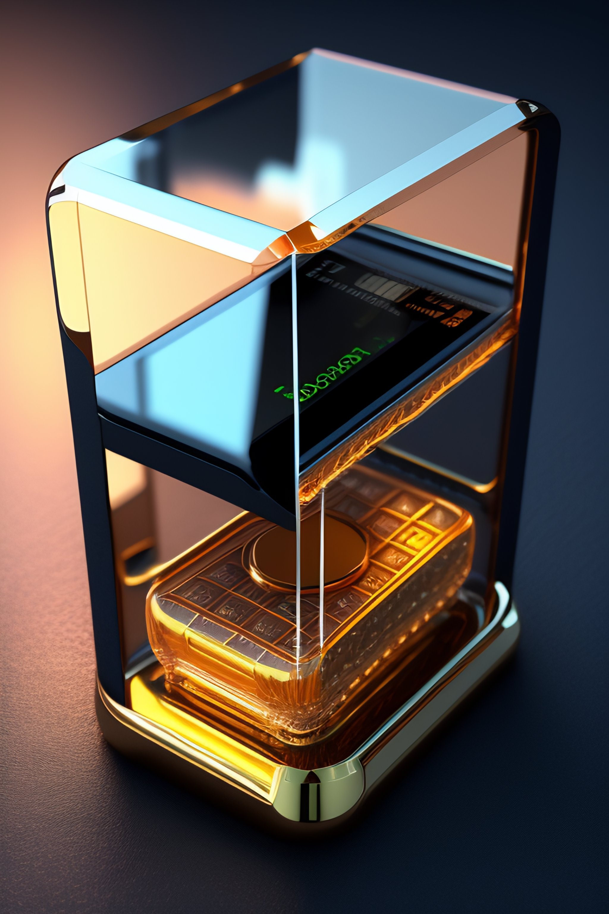 3d rendering in glass morphic style of protecting shield with a crypto wallet on it