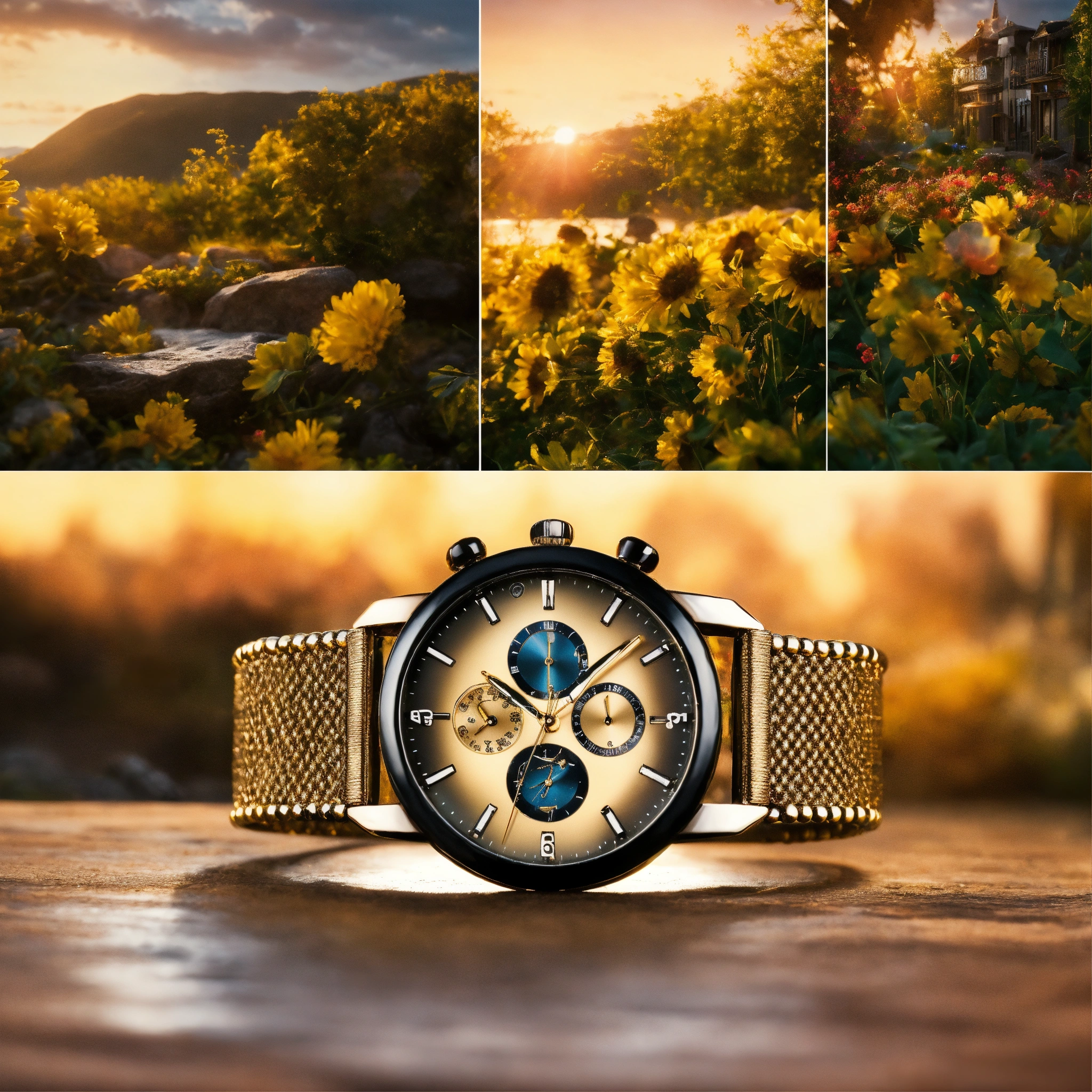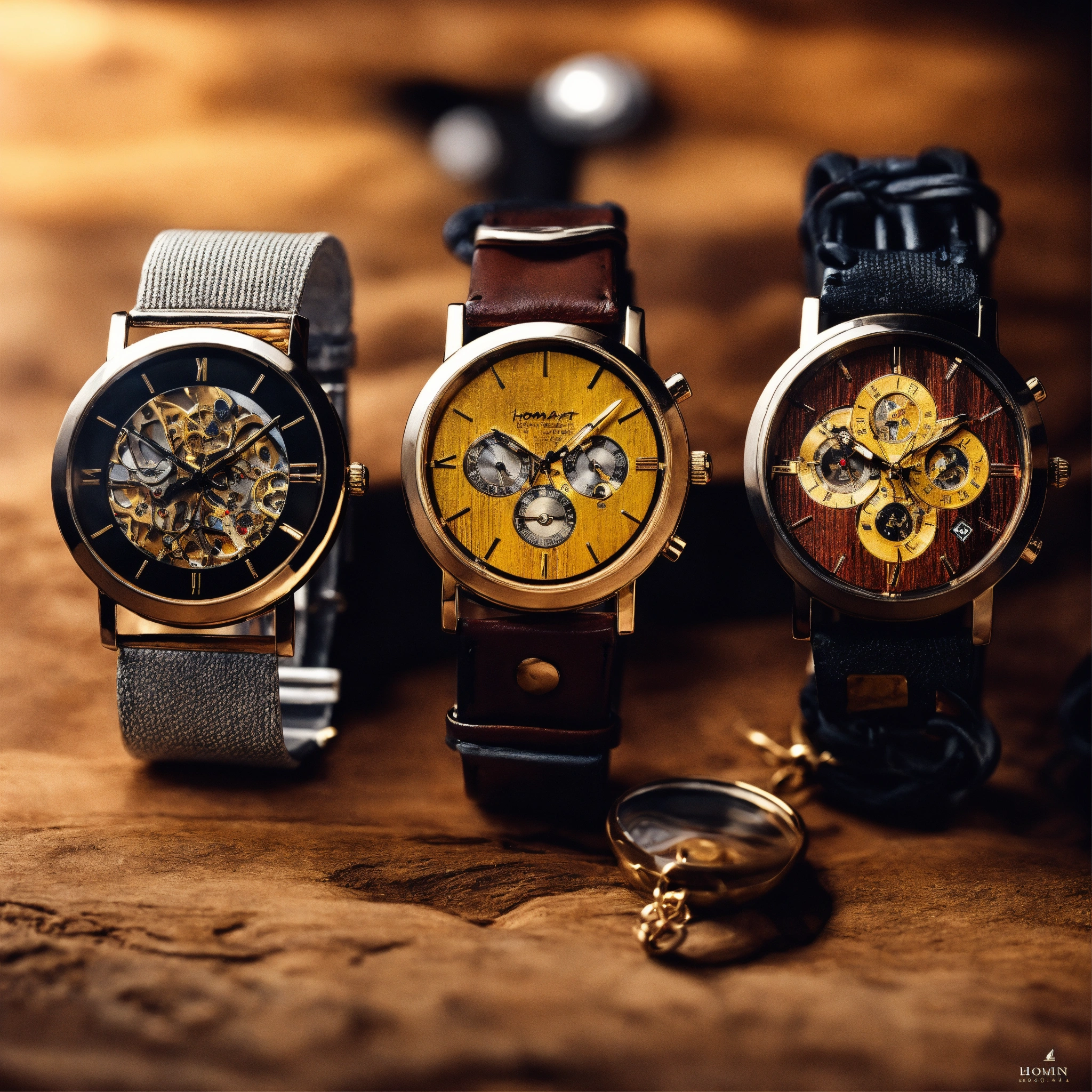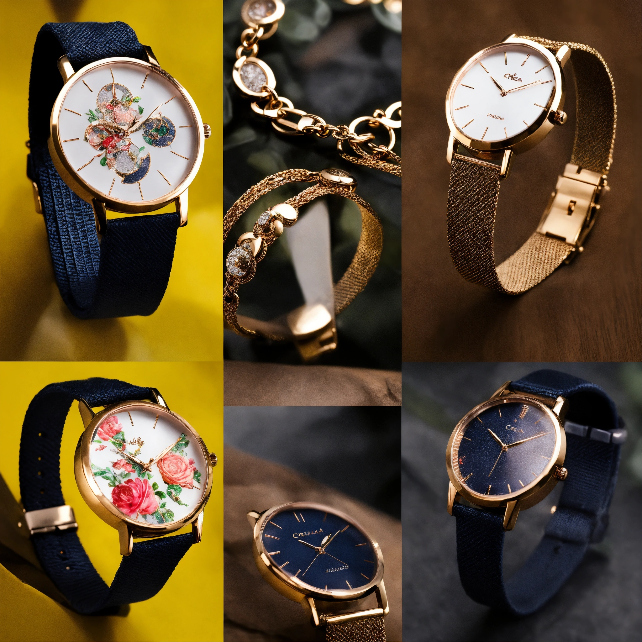Crea una imagen hiperrealista de 4 relojes de pulsera para hombre y mujer de muchos estilos