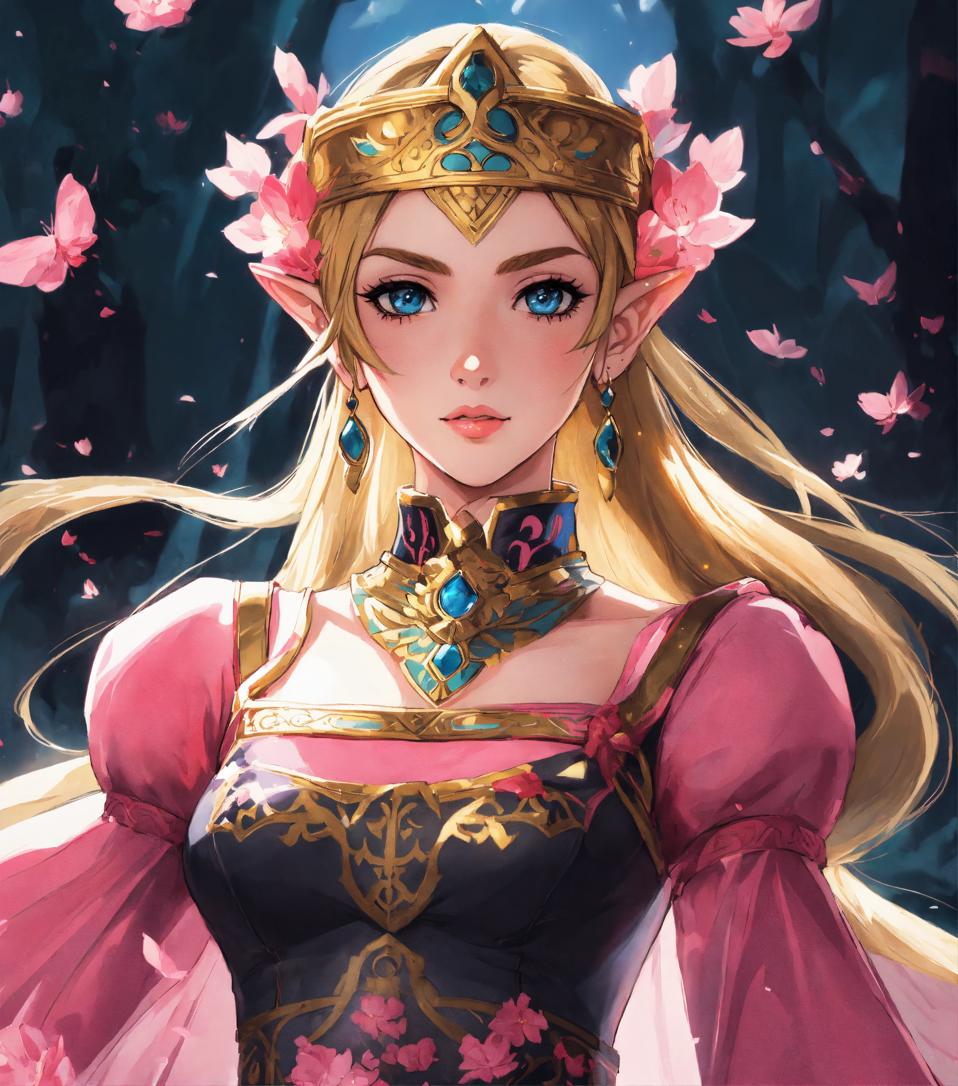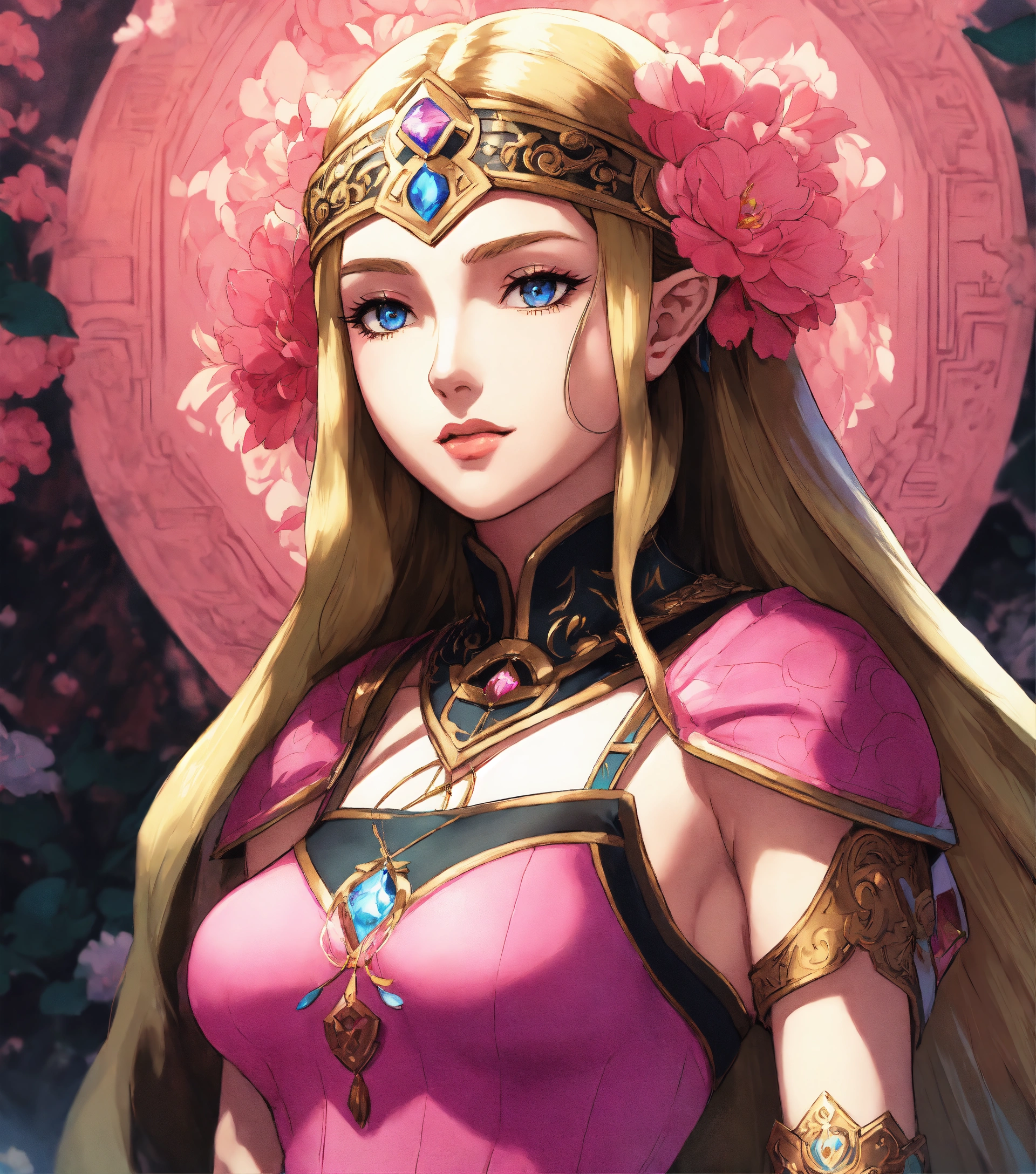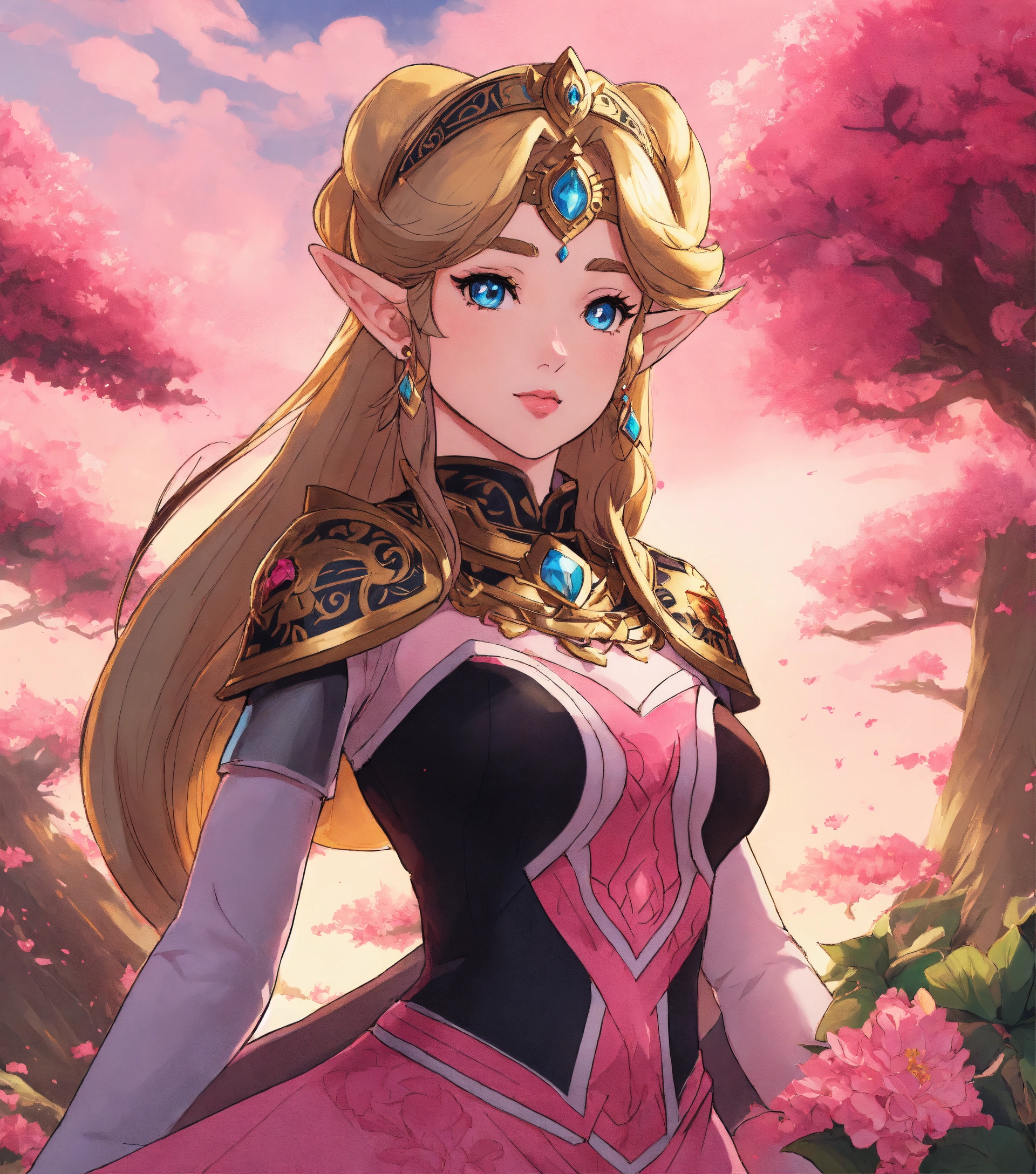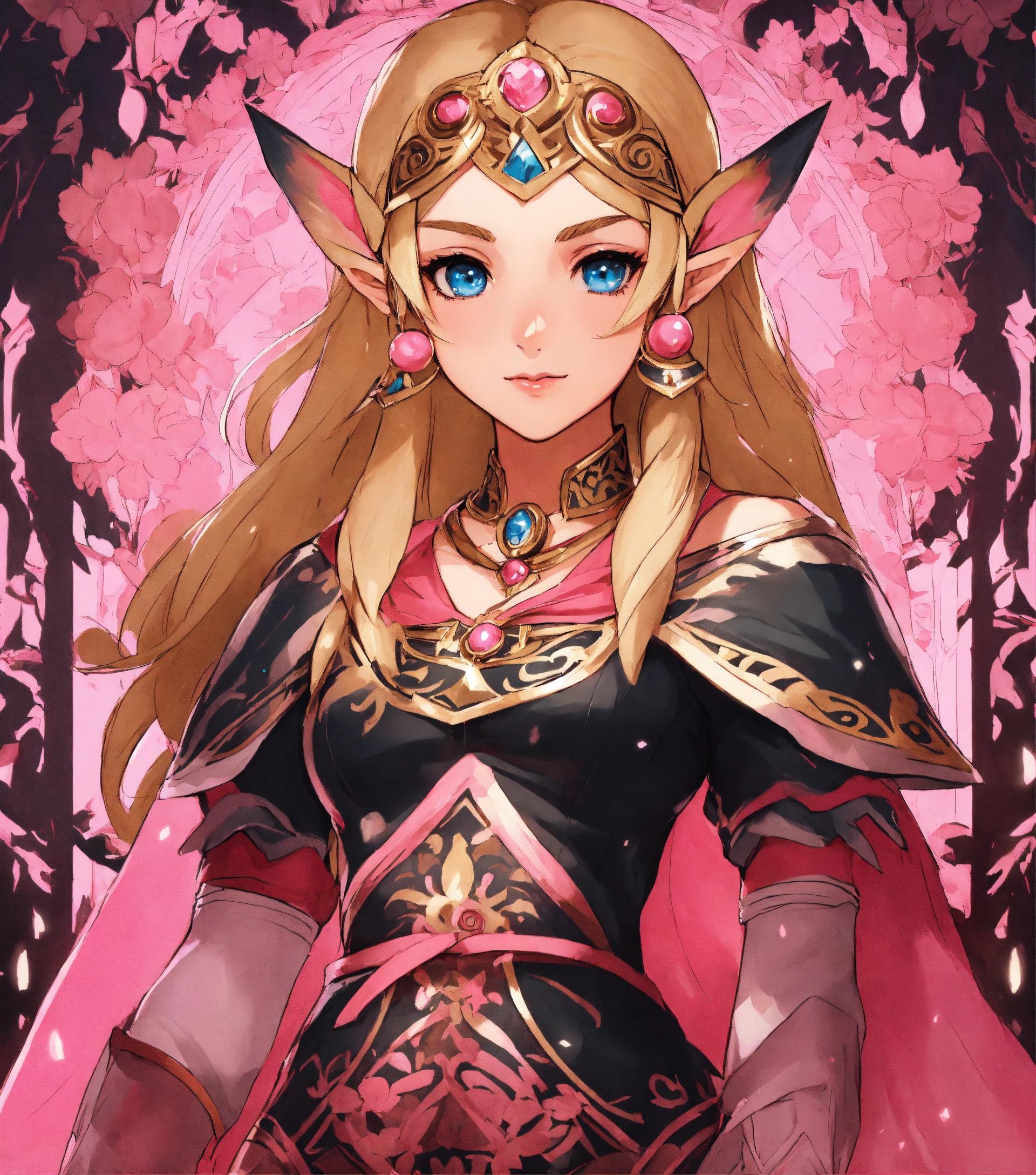 Anime artwork of princess zelda in a detailed intricate pink and black dress, stunning beautiful artwork, breath of the wild, 8k retro anime art, vintage 90's anime, akira style, by artgerm