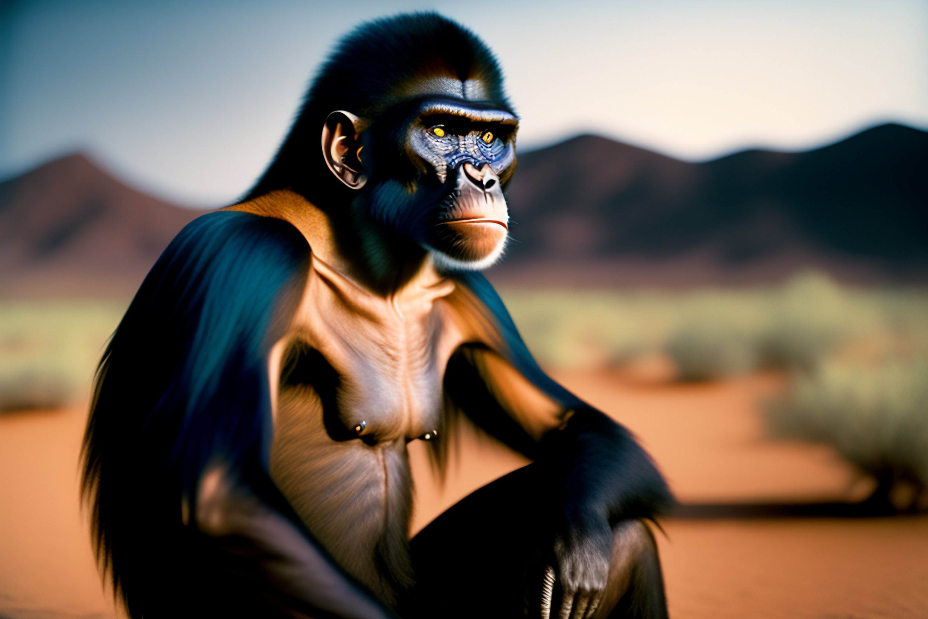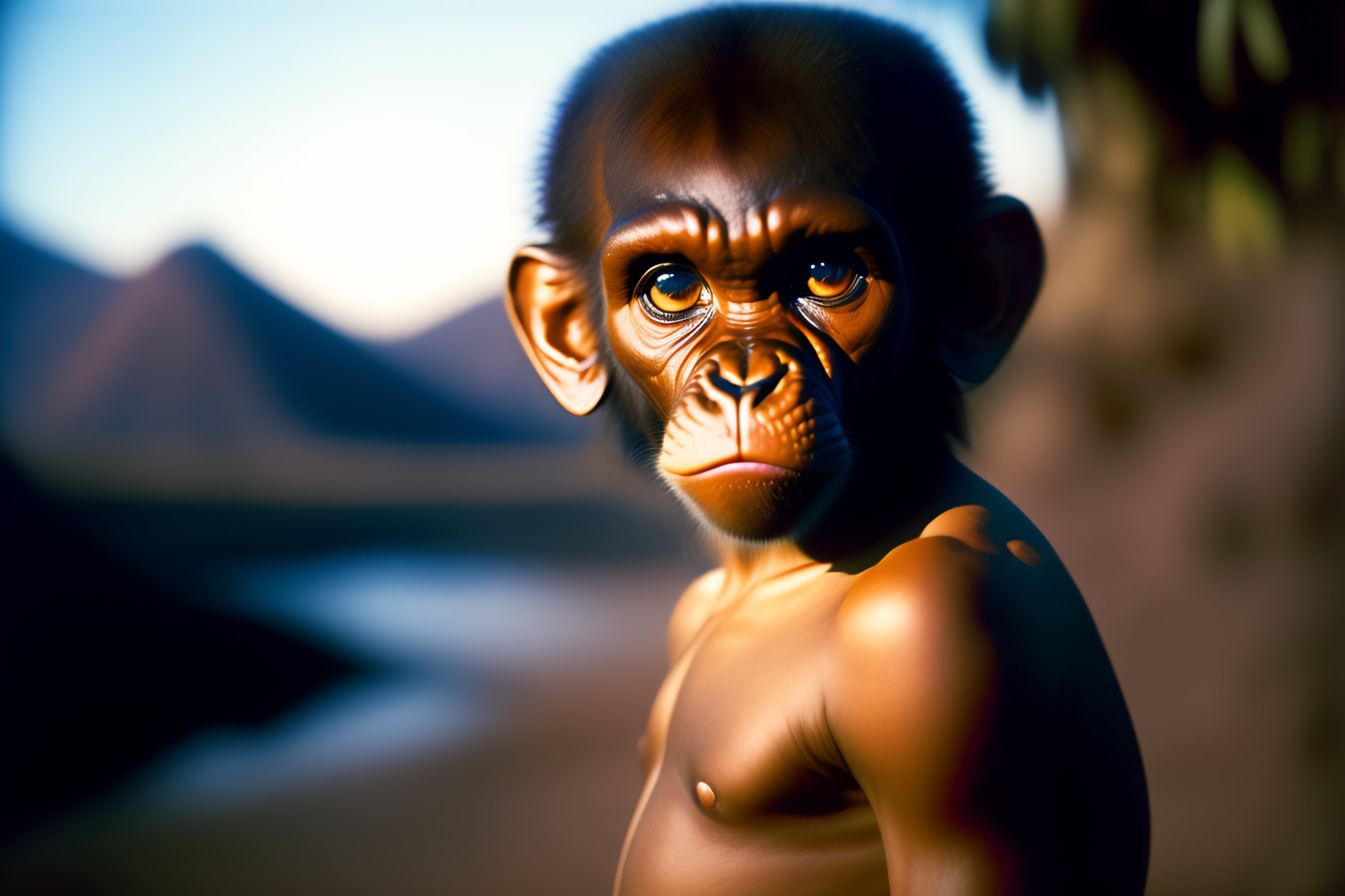 “ full body photo of lucy the australopithecus afarensis looking deeply to the camera, blue eyes, anthropology photography, color kodakcrhome 64, national geographic, annie leibovitz ”