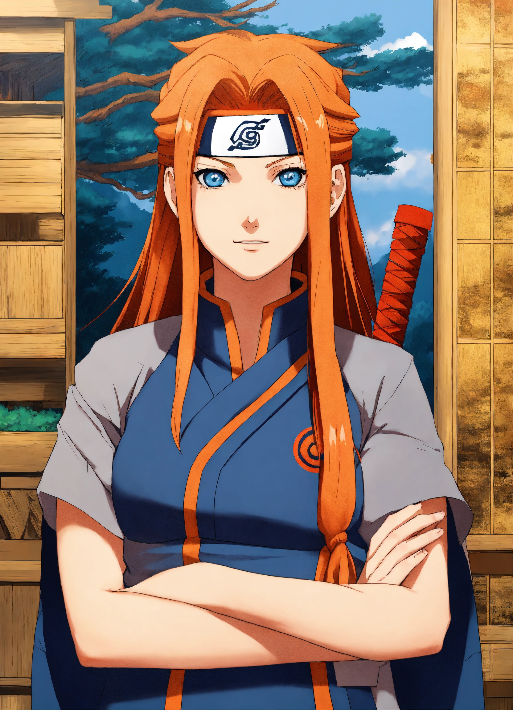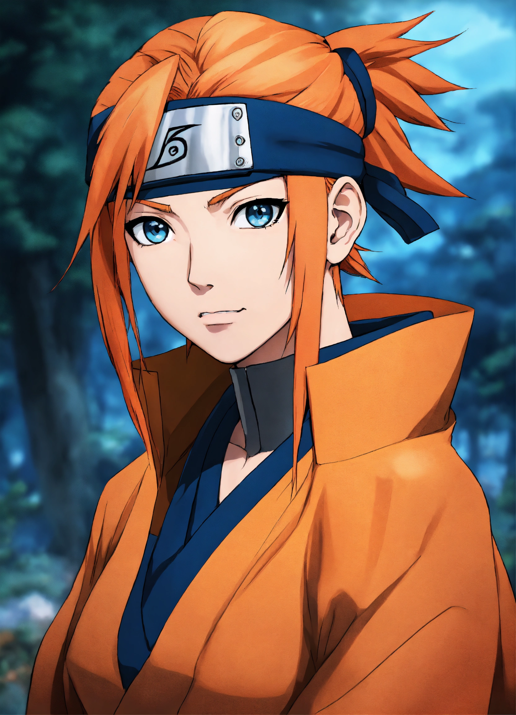 Naruto-style art, masashi kishimoto art, anime, naruto manga, naruto anime, original character, ginger hair, blue eyes, pretty woman, kunoichi, shinobi, konoha, ginger long hair, blue eyes, beautiful girl, beautiful young woman in naruto style art