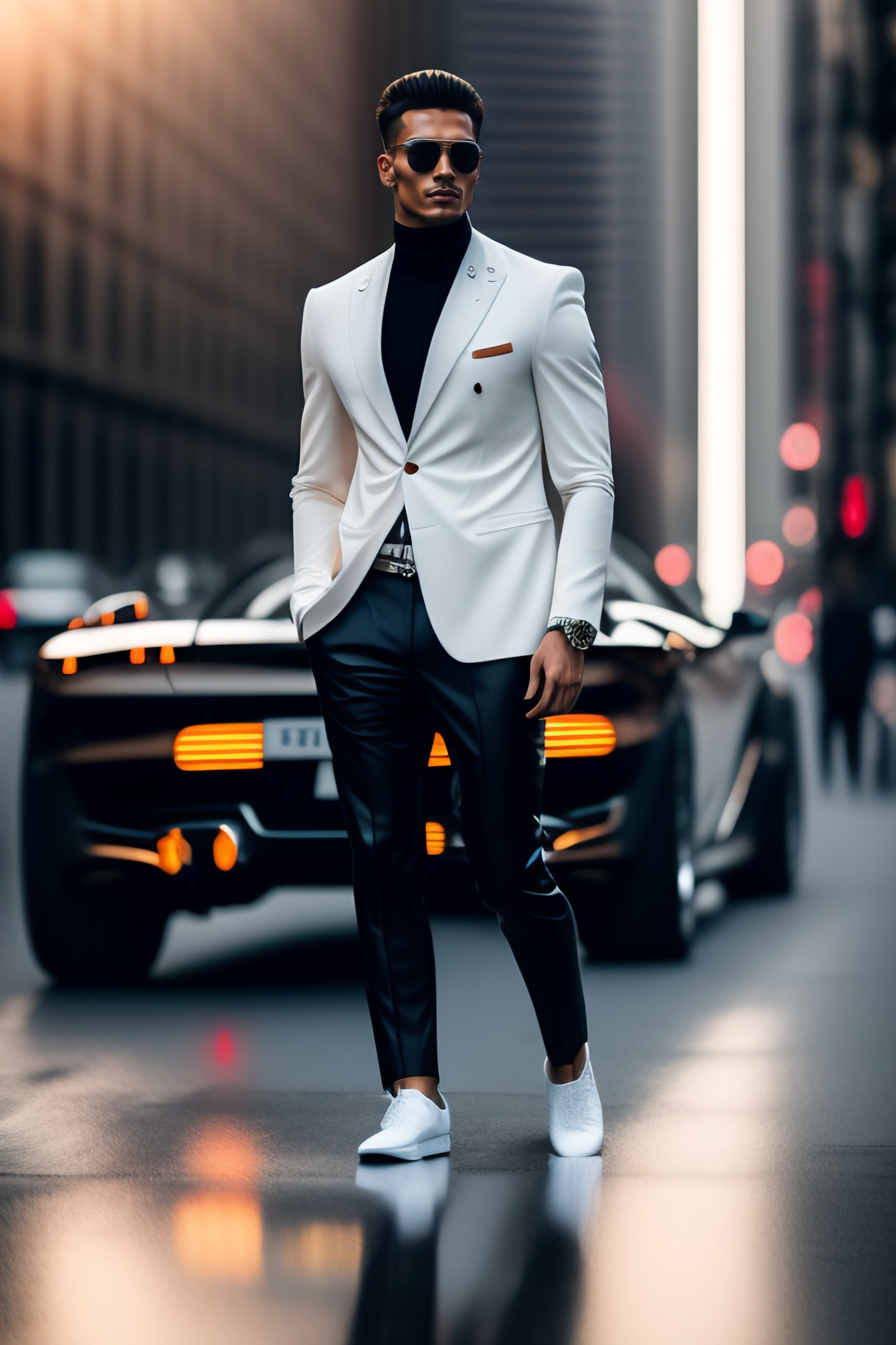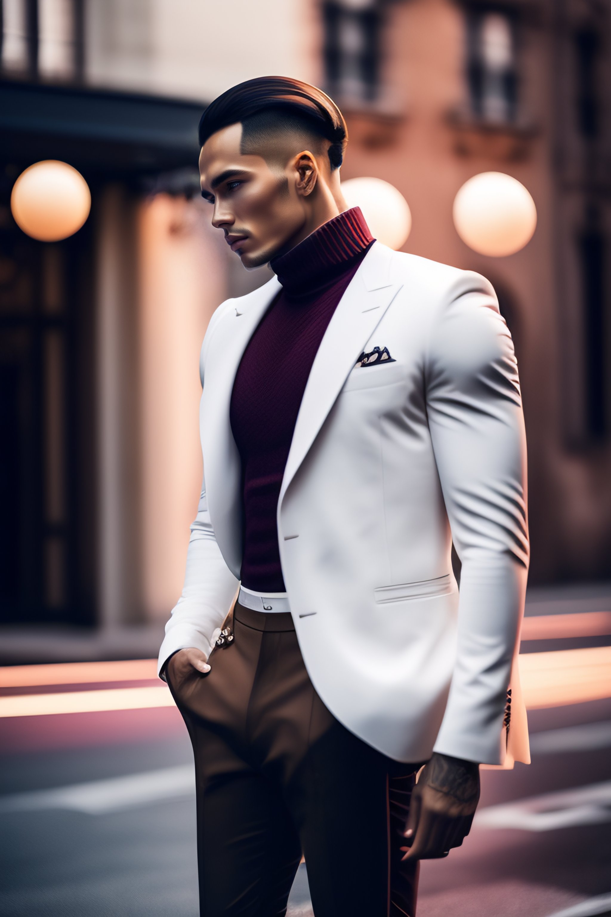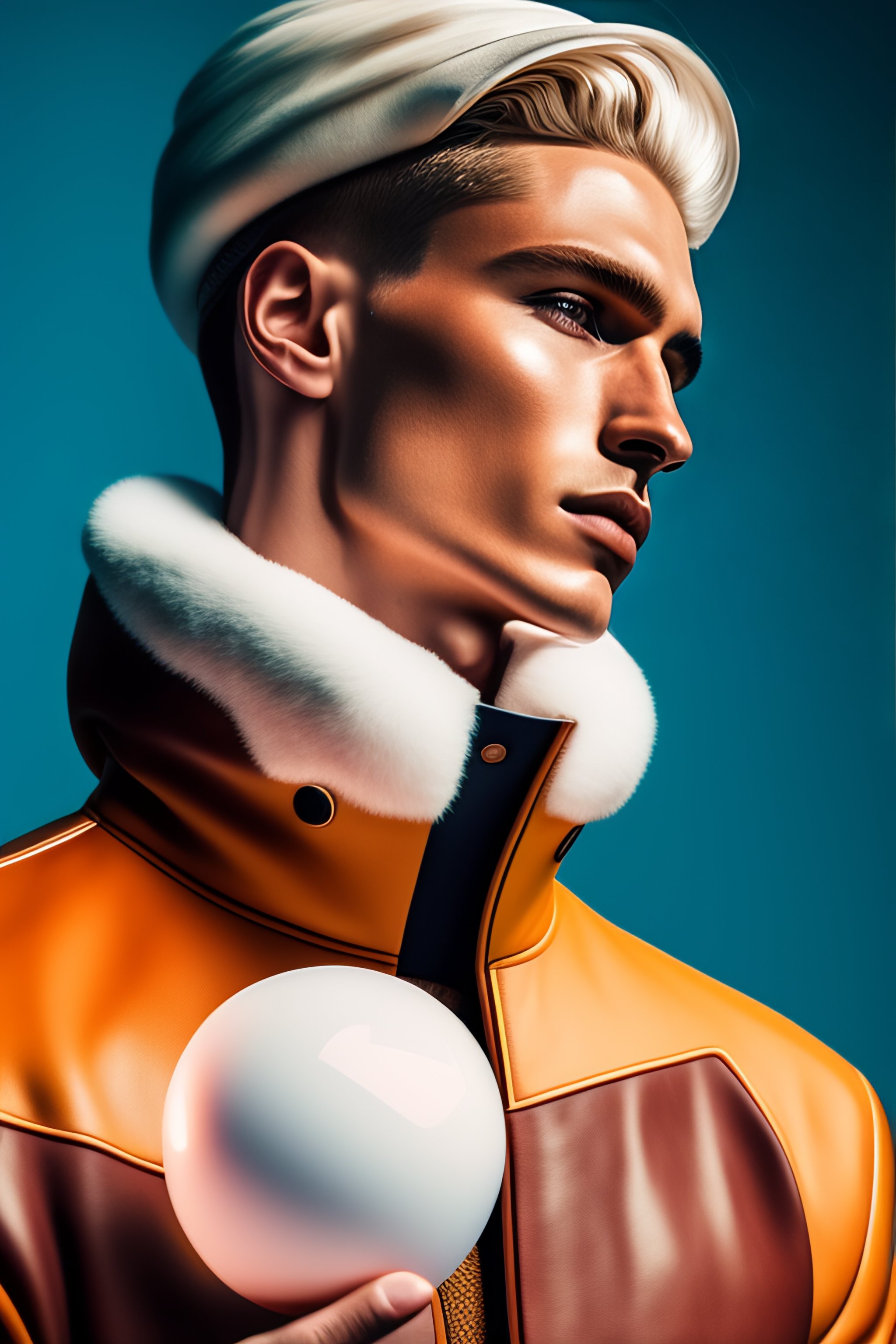 A fashionable european man, white skin, controls a levitating sphere with a hand gesture, advertising material of the 2020s, leather, future modern sets, cargo pants, beautiful colors, luxury, 8k, 4k, street clothes, geometric shapes, fashion photos taken by sony, photos taken by canon, photos taken by nikon