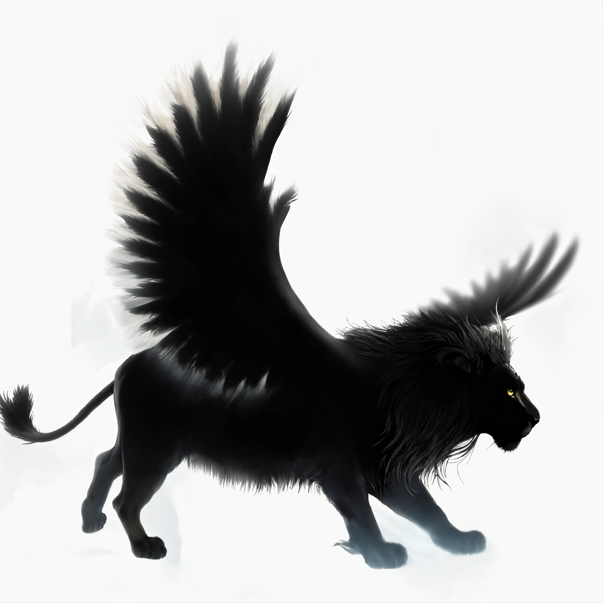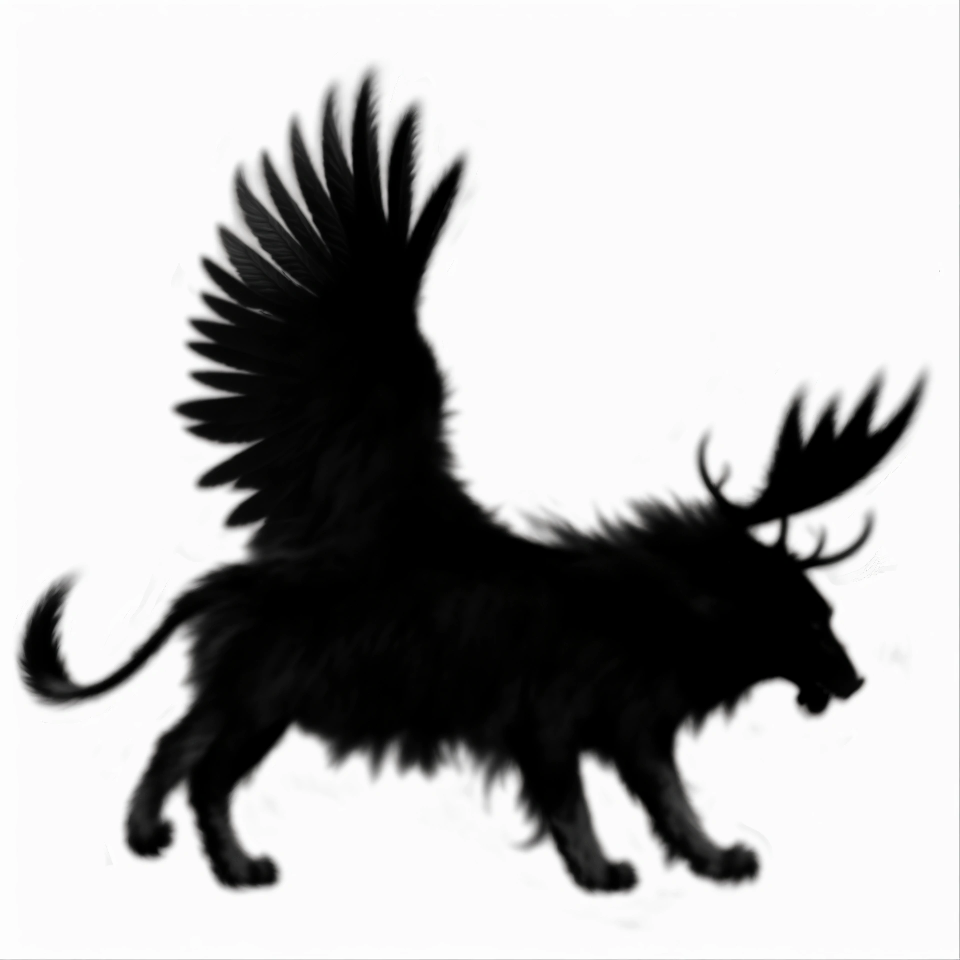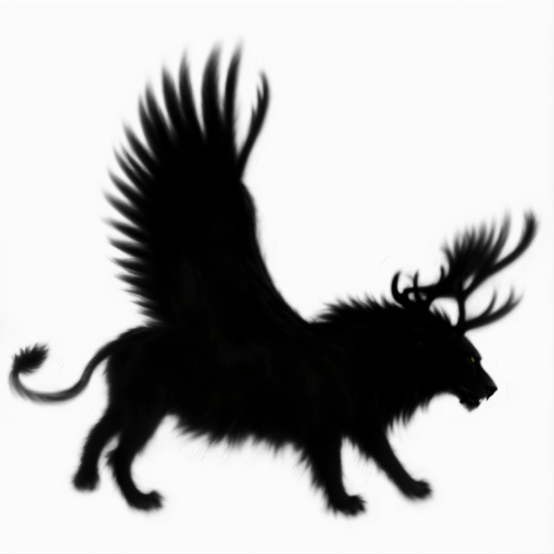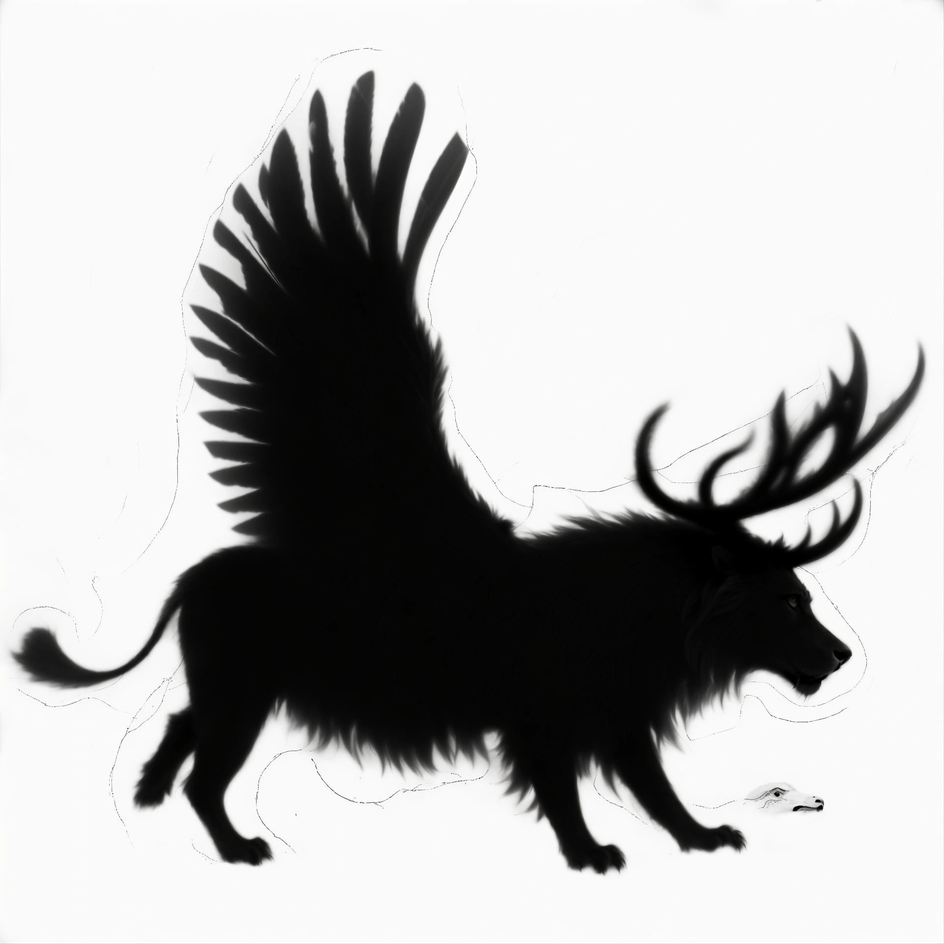 A surrealistic fantastical creature composed of a mix of animal attributes (head of a lion, eagle wings, lion tail, deer body, wolf fur), dwelling in a fusion of reality and surrealism, amidst the wonders of nature.