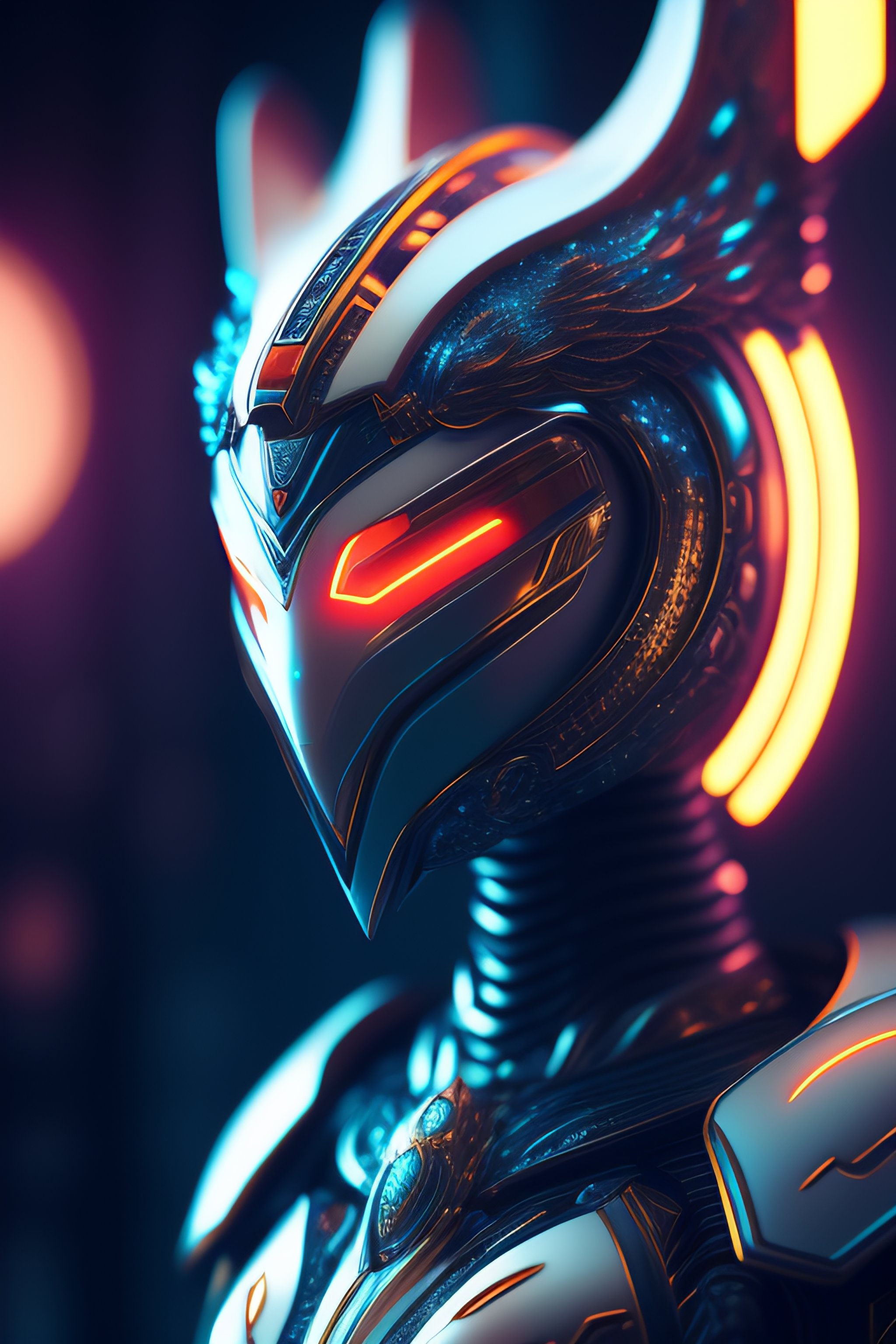 Sci fi, robot, monster fantasy artwork, white, intricated detail, ornament mask, russian pottery, neon glow lights, porcelain greek, portrait, 3d, cgi, realistic light, trending on cgsociety, glowing eyes, artwork, neon details, ultra realistic details, sci fi atmosphere, global illumination, shadows, octane render, 8 k, ultra sharp, intricated detail, high detail