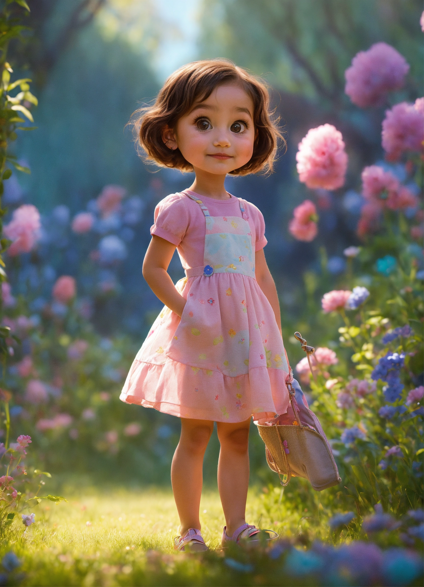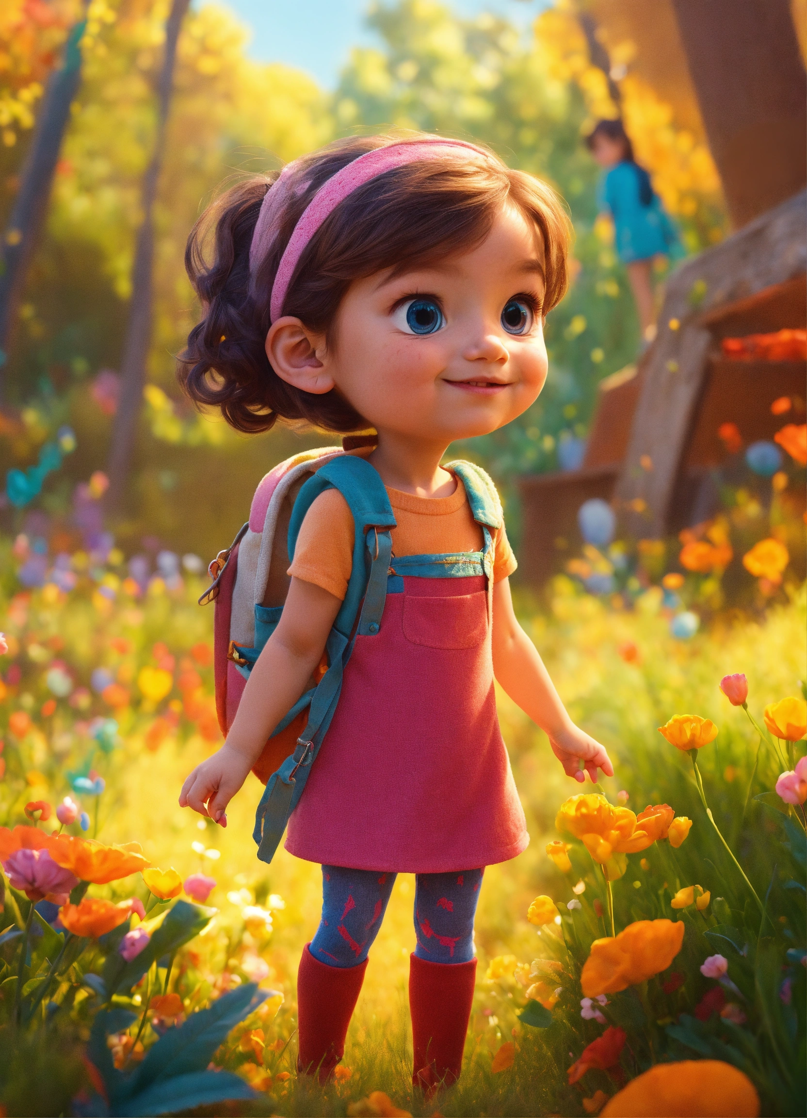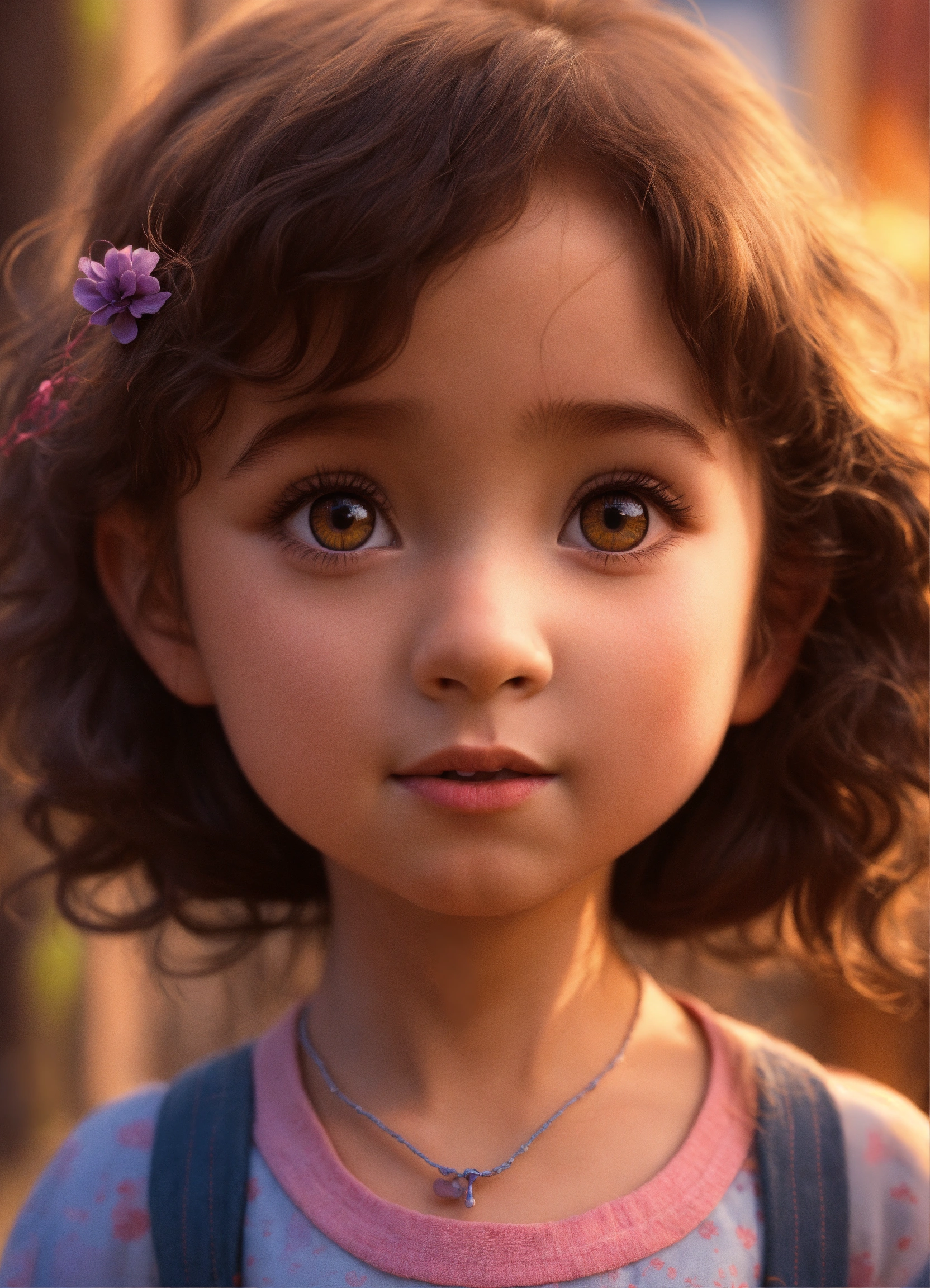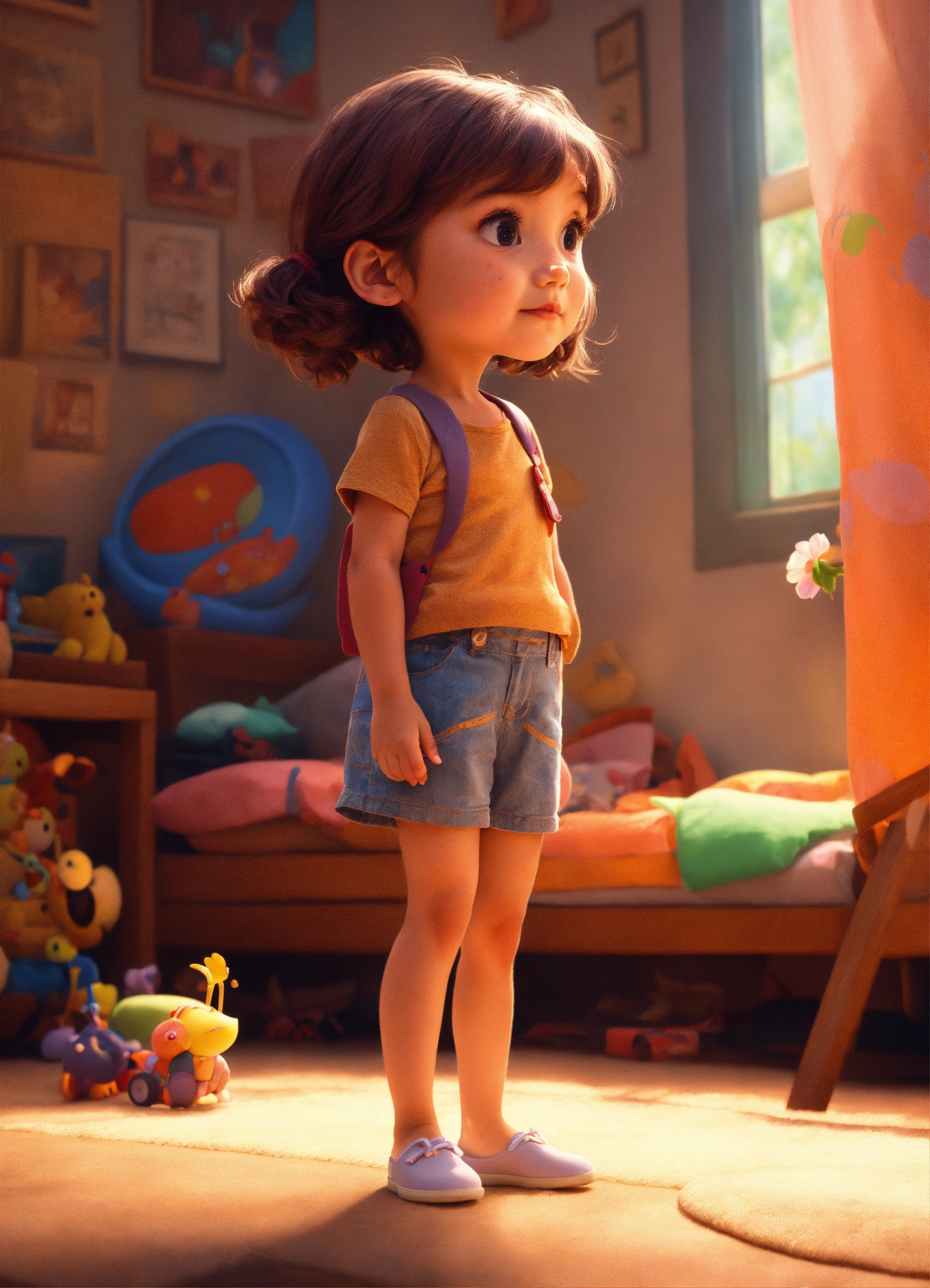 Une petite fille de 4 ans enrhumée qui éternue, elle est métisse, style art animé, conception du personnage par pixar