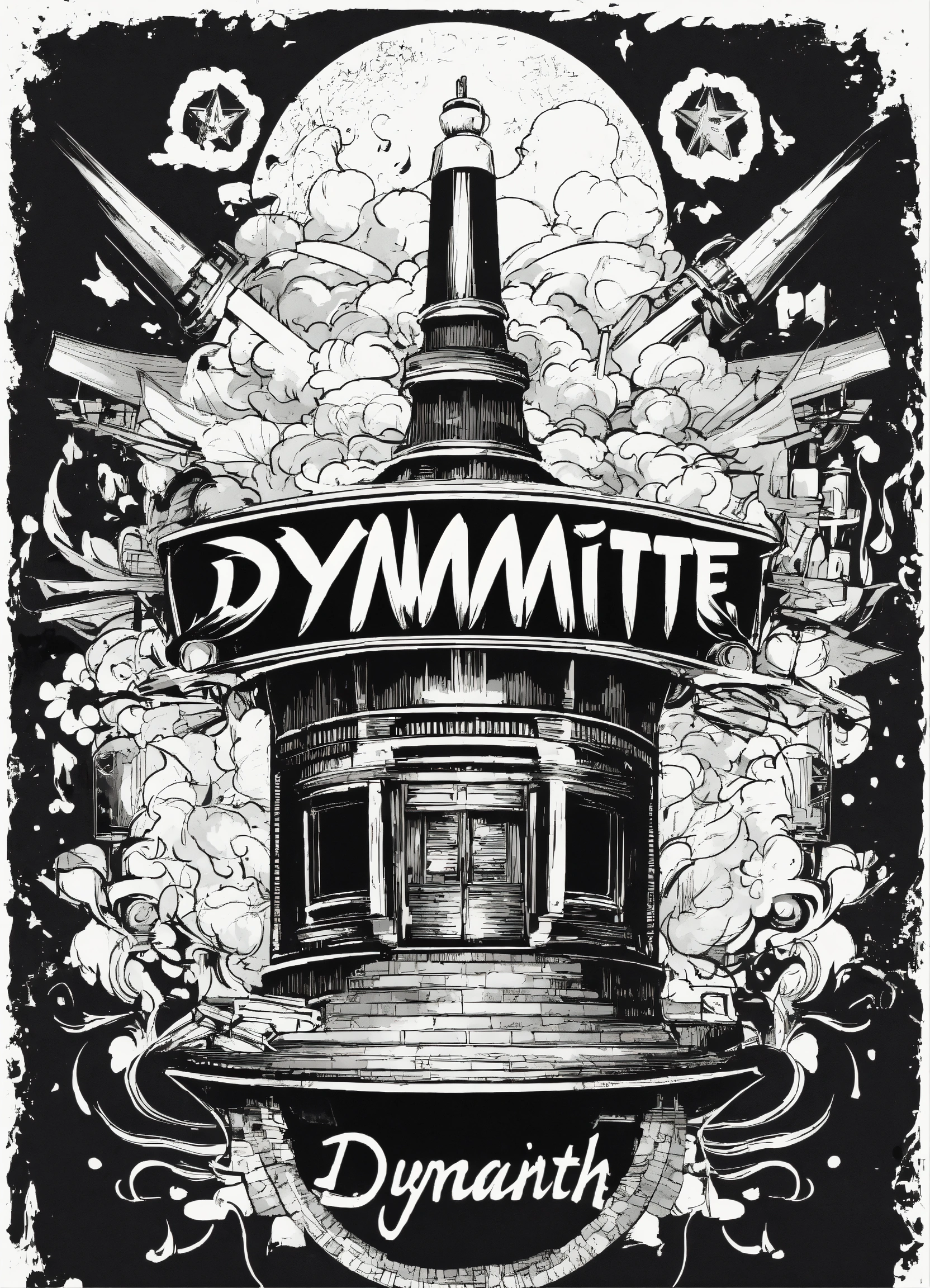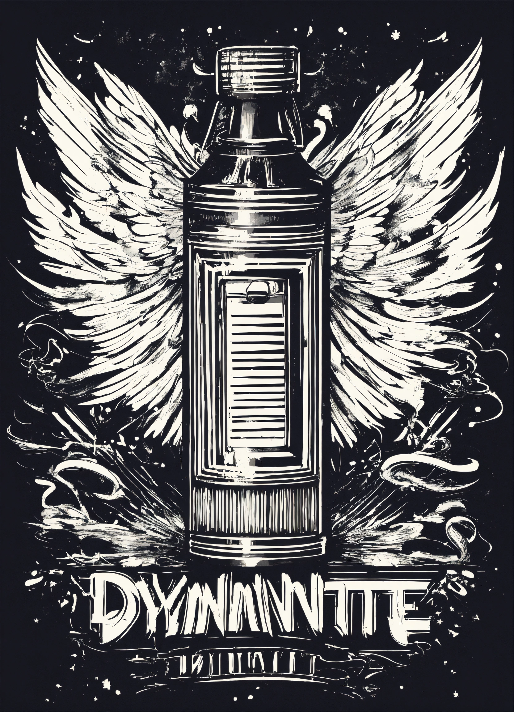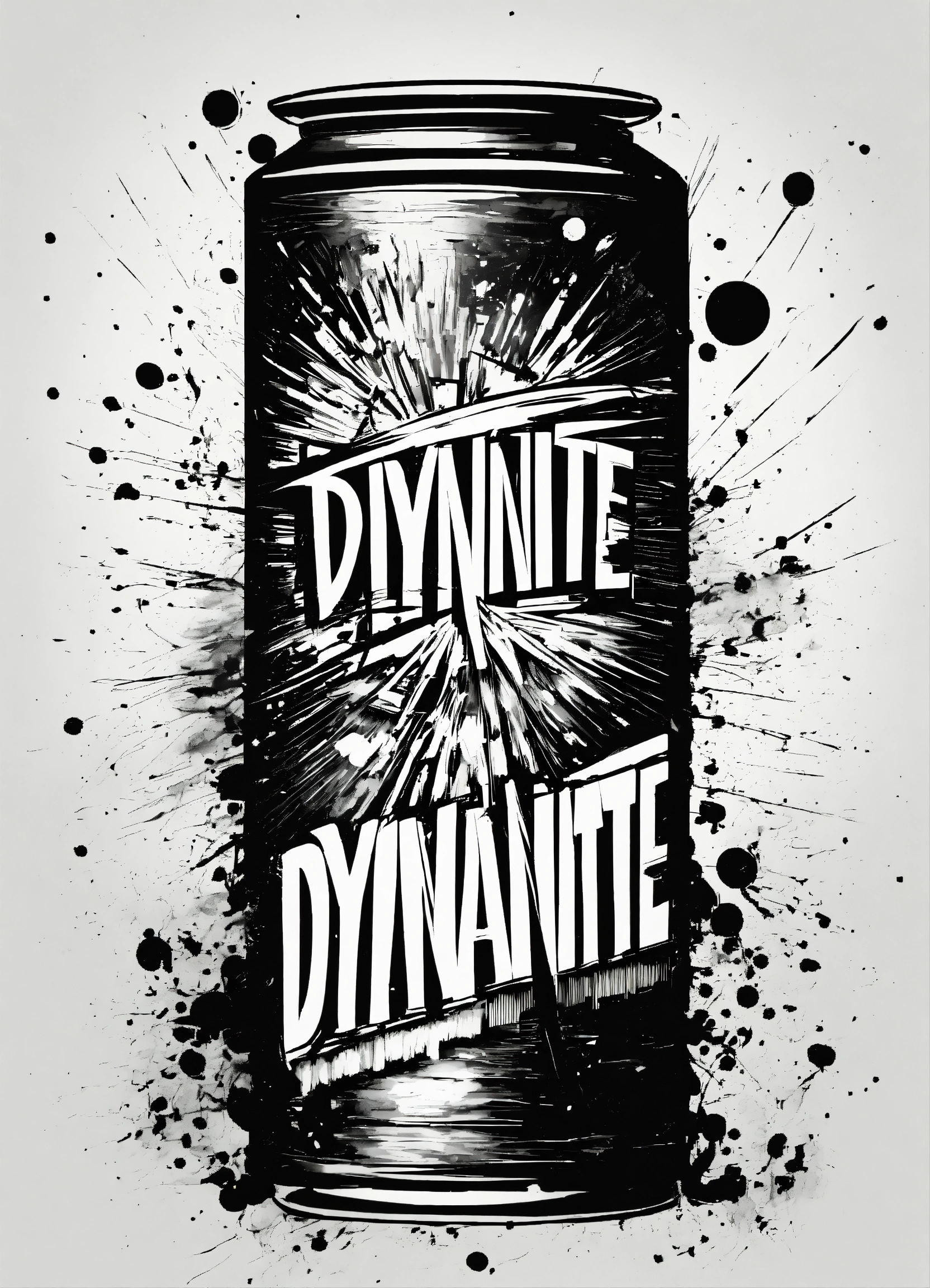 Dynamite, grunge style, black and white, white background, no background, ink fine line art stylized, vector, design for tattoo.
