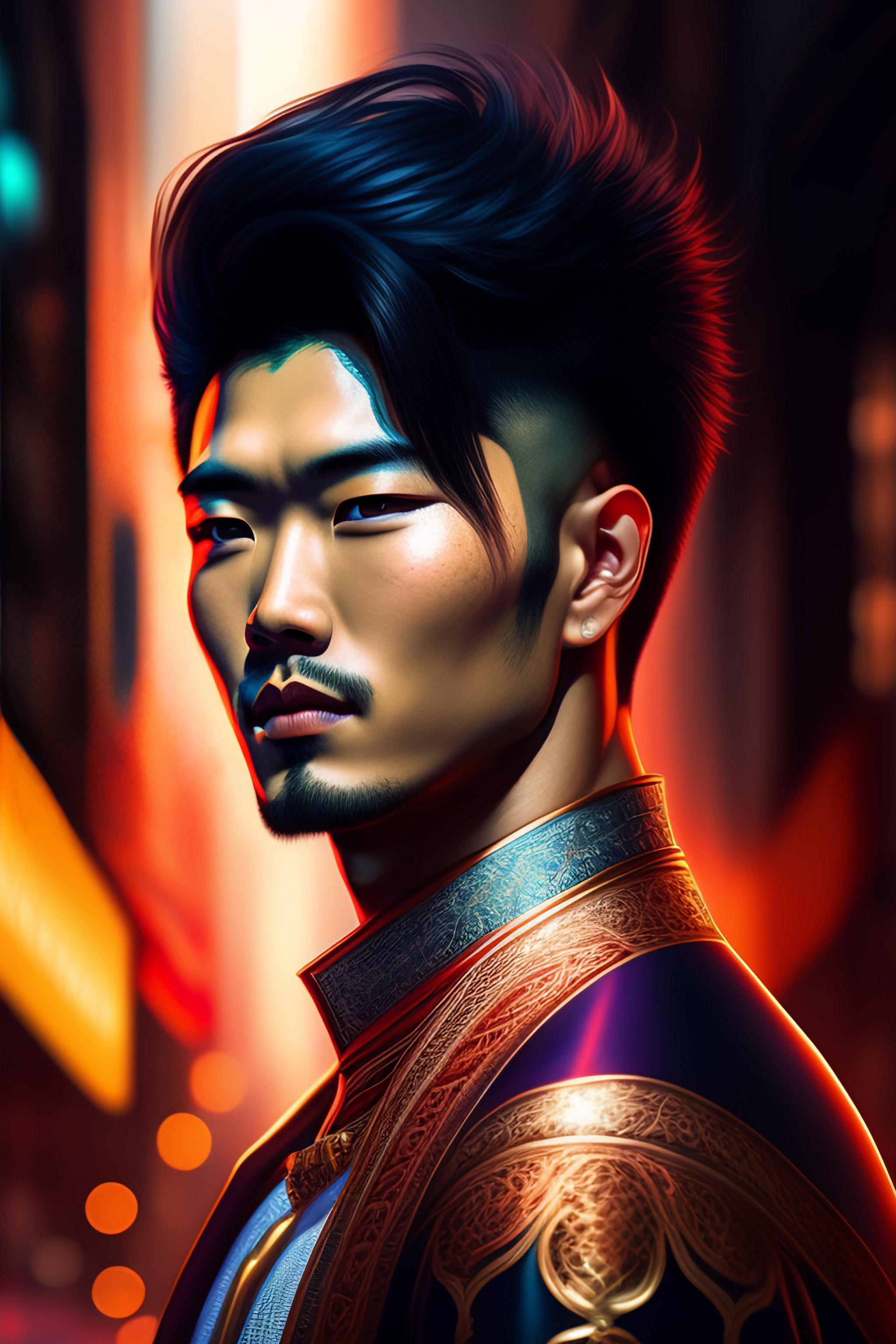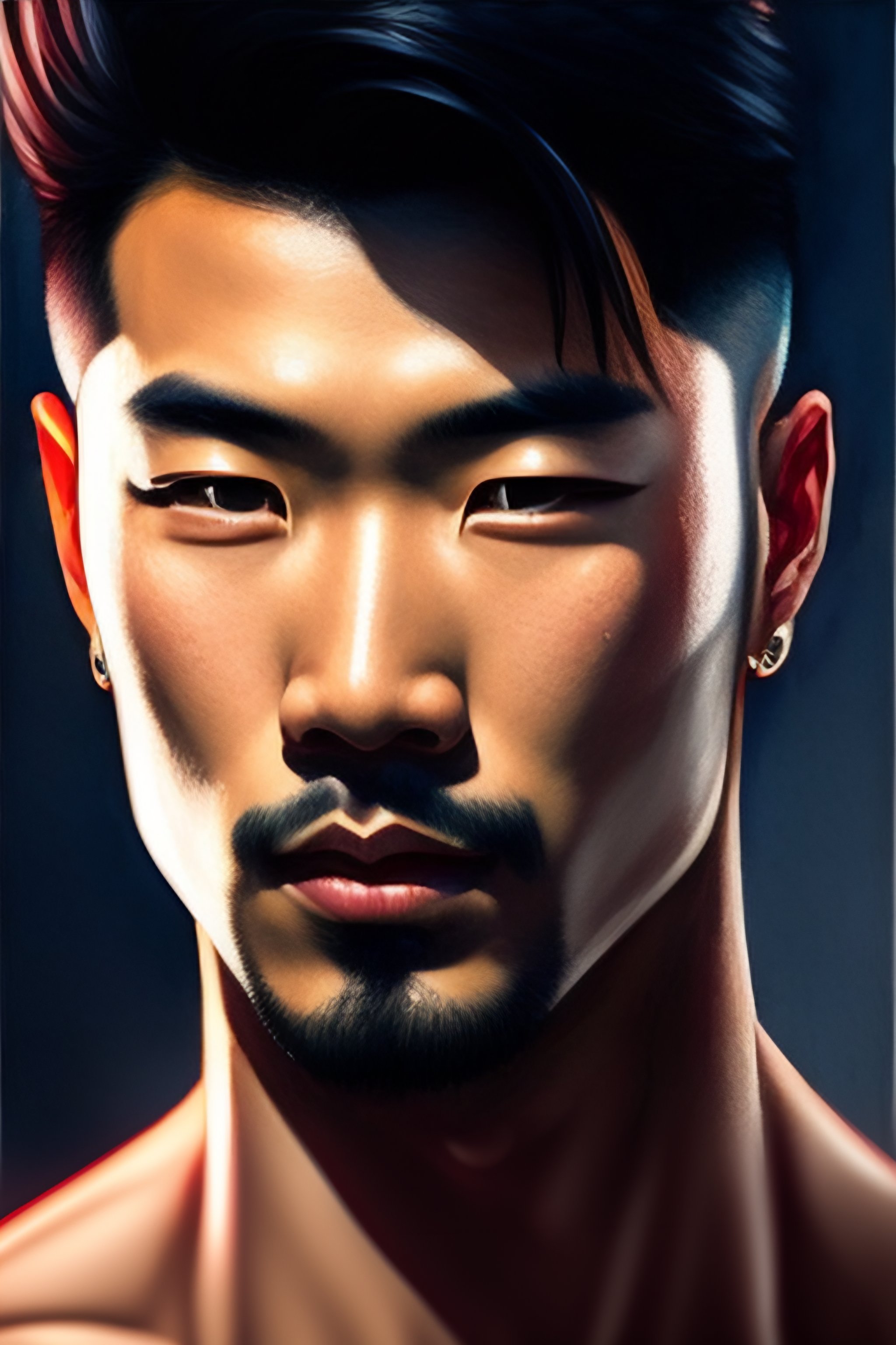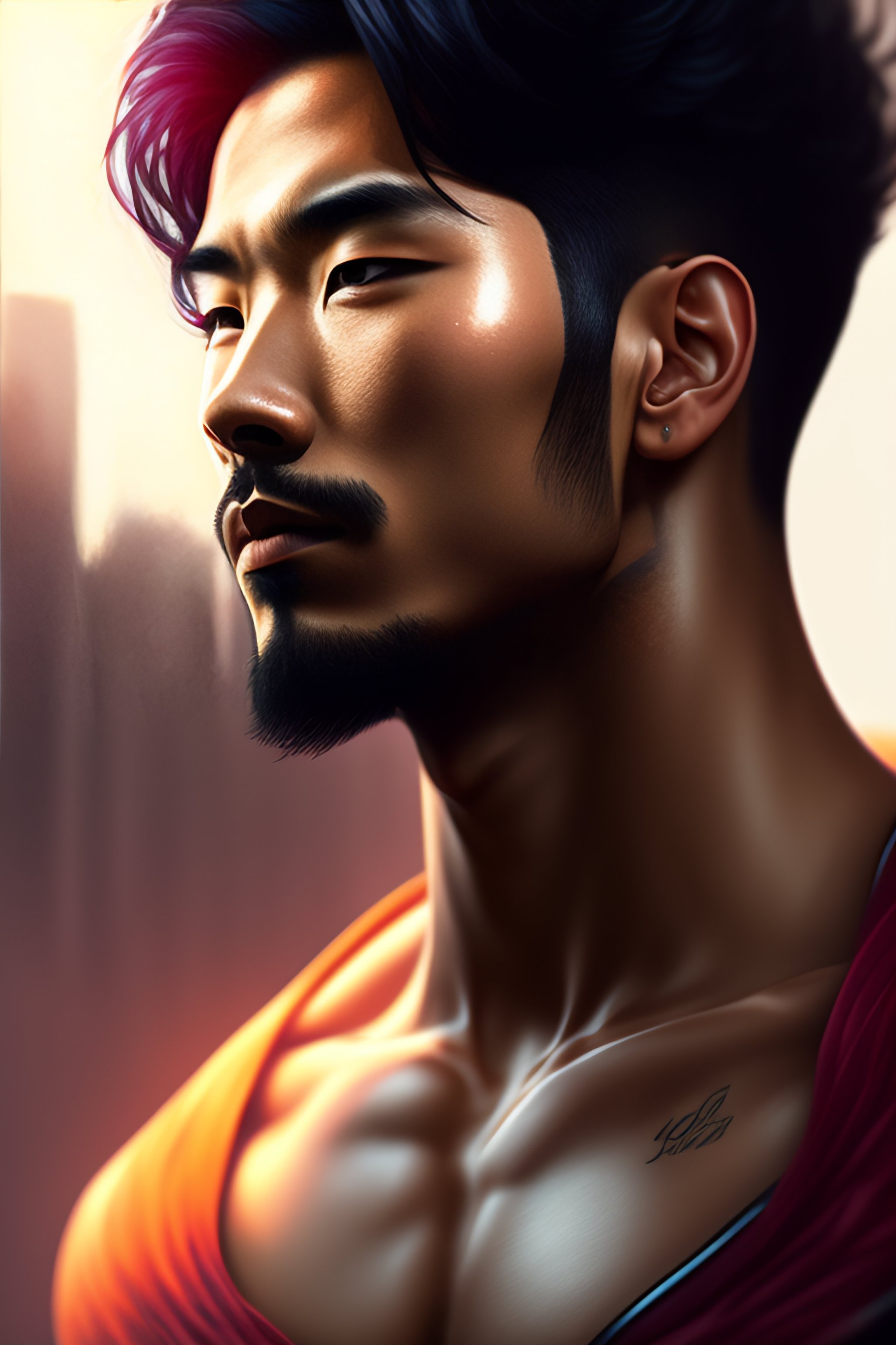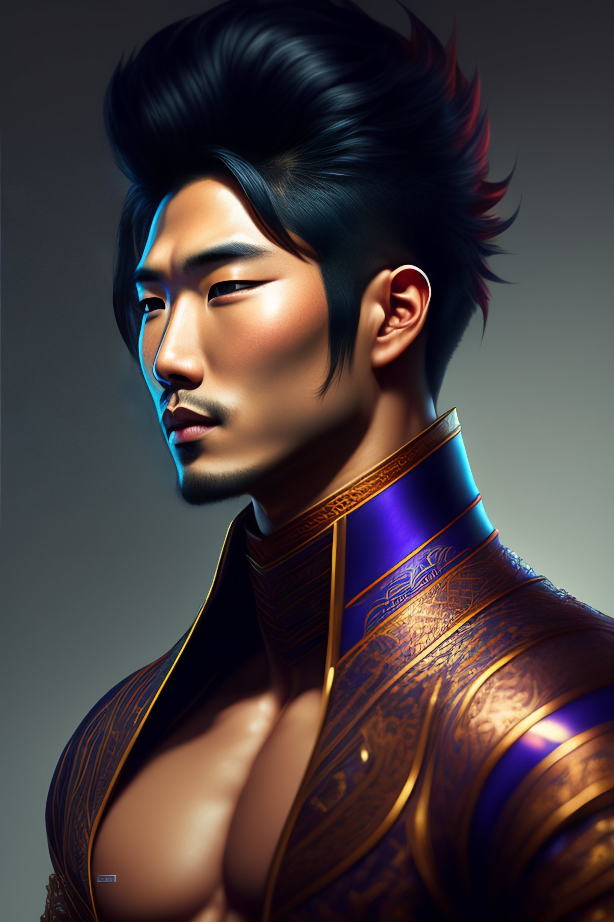 Hyper detailed ultra sharp, vibrant, intricate, digital painting, concept art, smooth, sharp focus, illustration, handsome man, dark hair, asian, hot, modelesque, front shot, low angle
