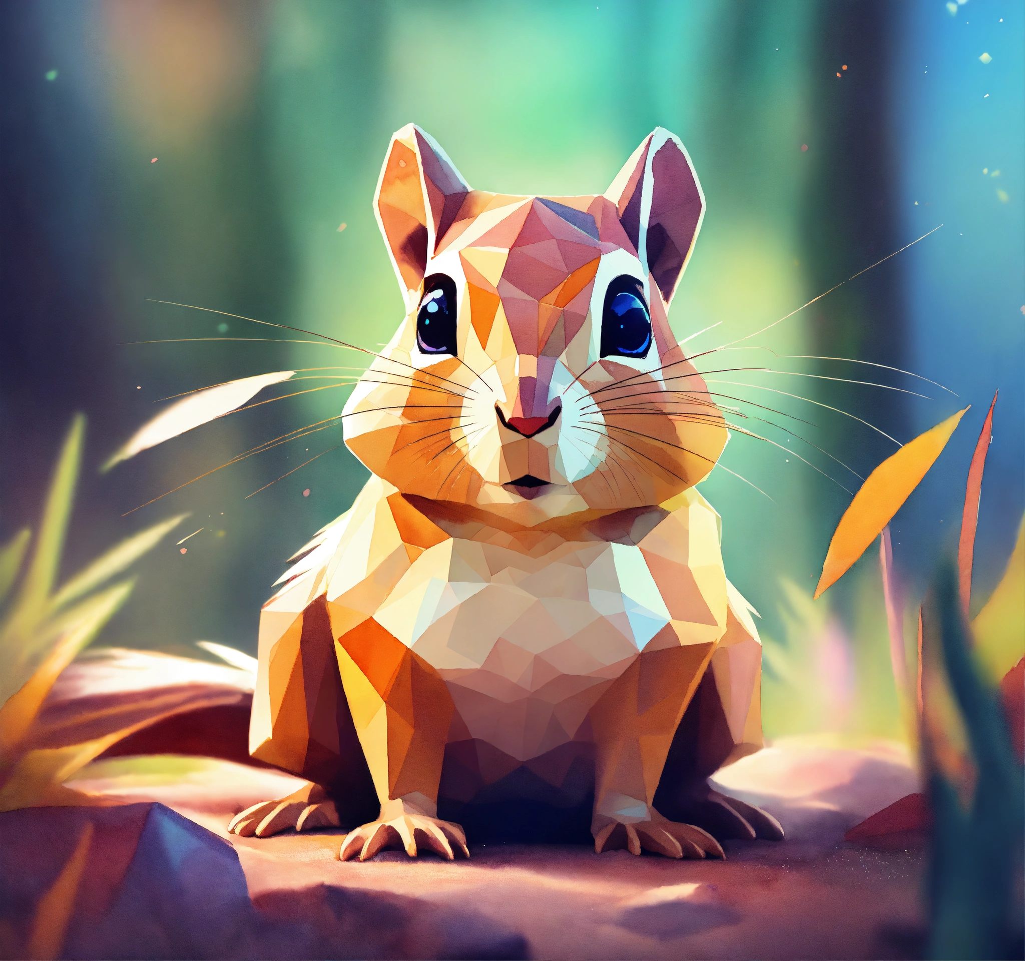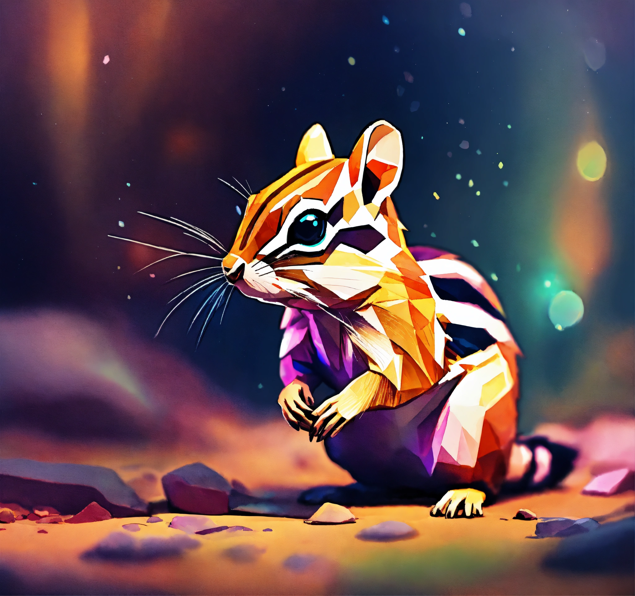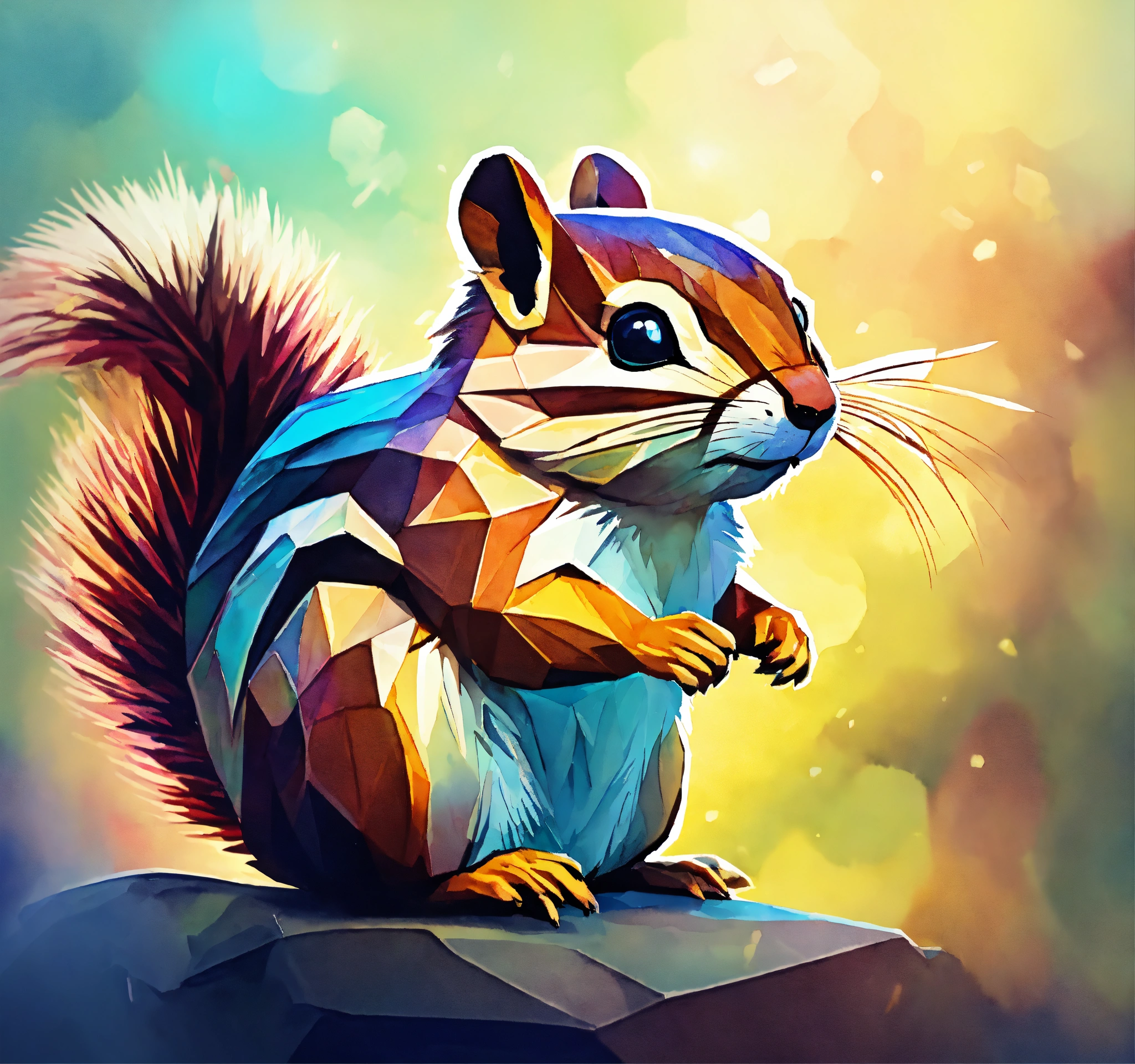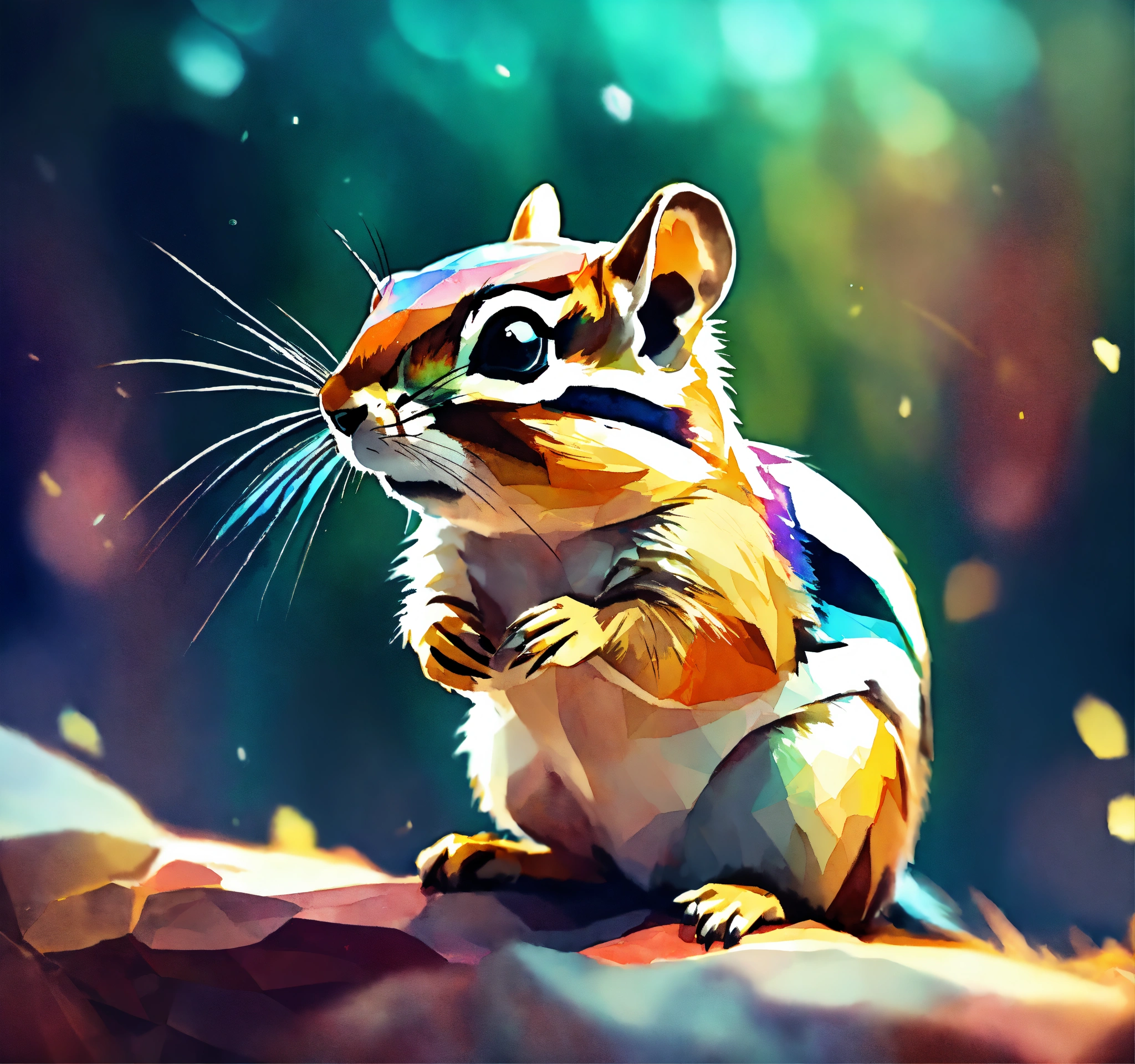 Stylized chipmunk, vignette cinematic lighting, iridescent strobe lighting effects, low poly style, hyper abstract watercolor, storybook, illustration, v3, 5