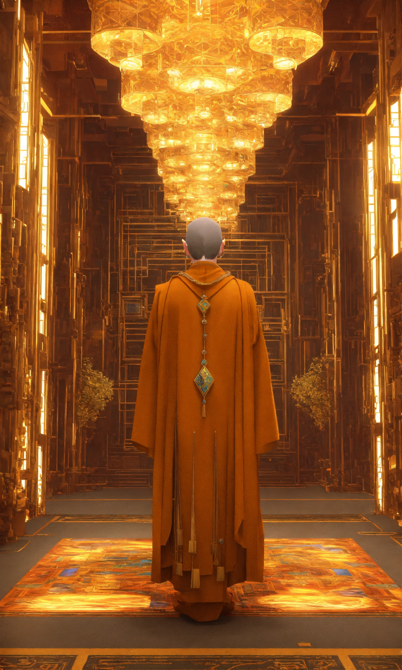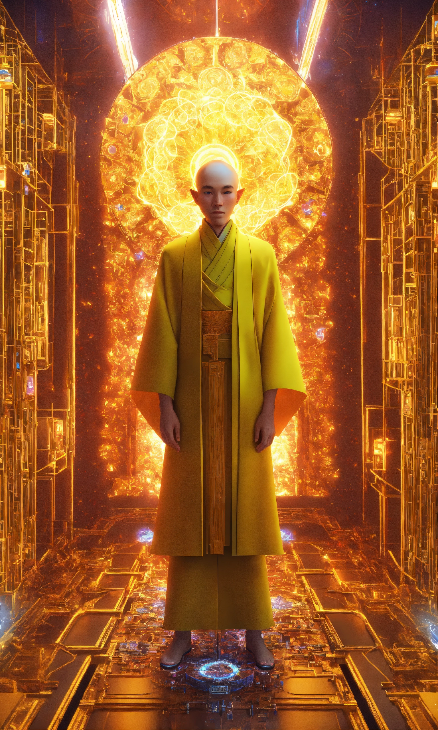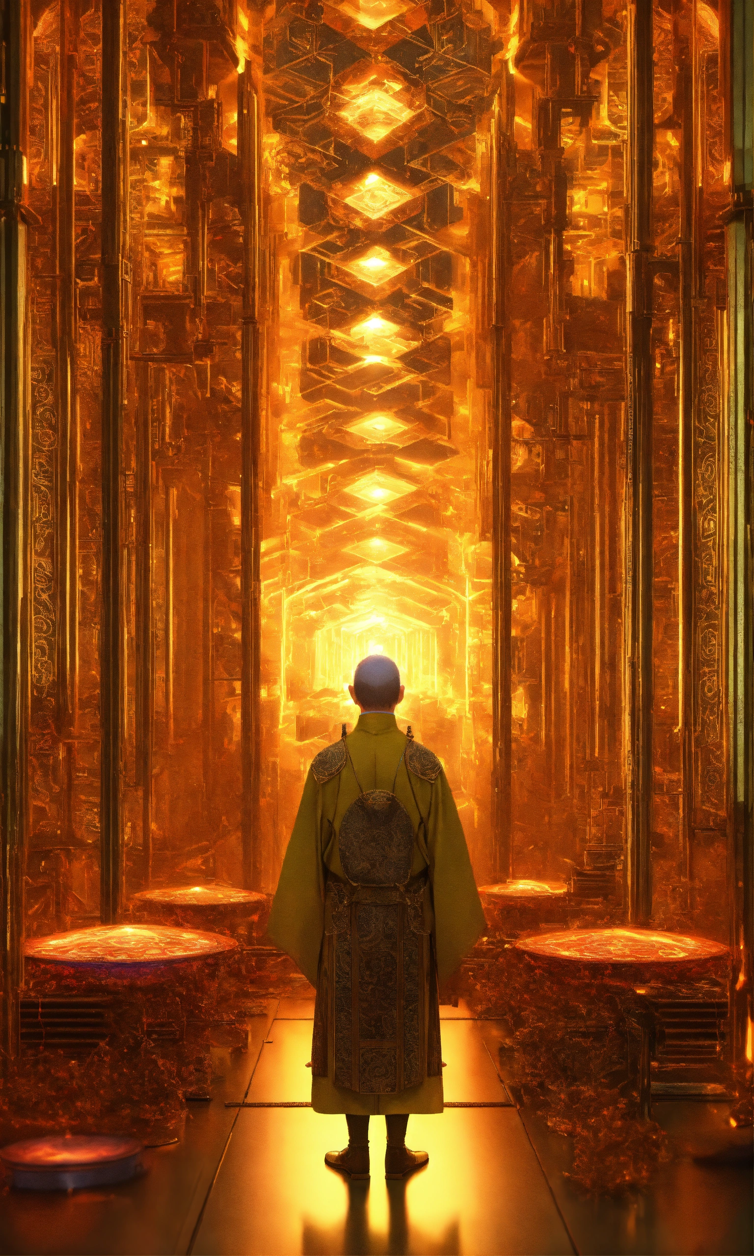 4th dimension complex fractal geometry tesseracts life daoist monk self-transforming elf machines 3d render