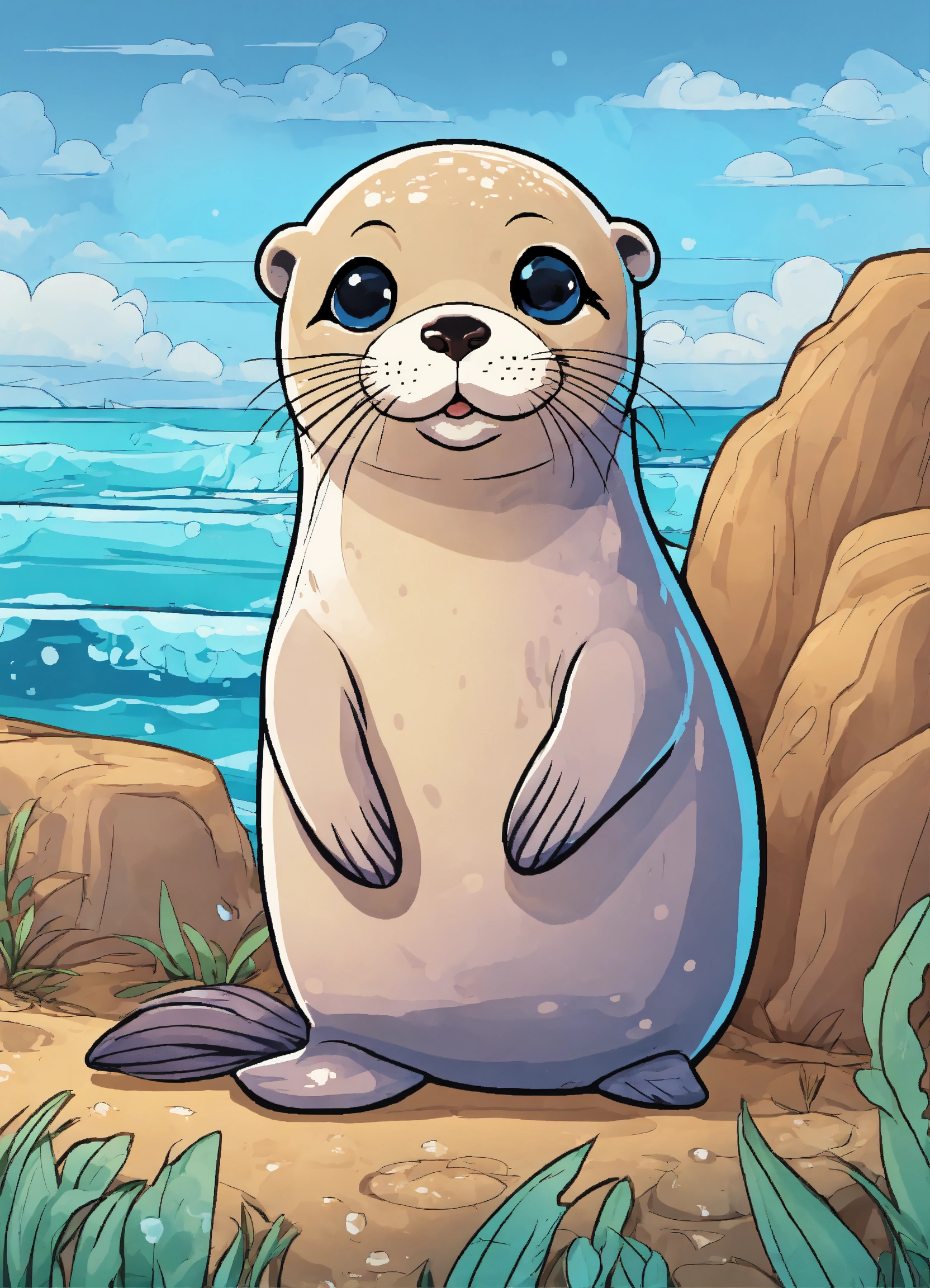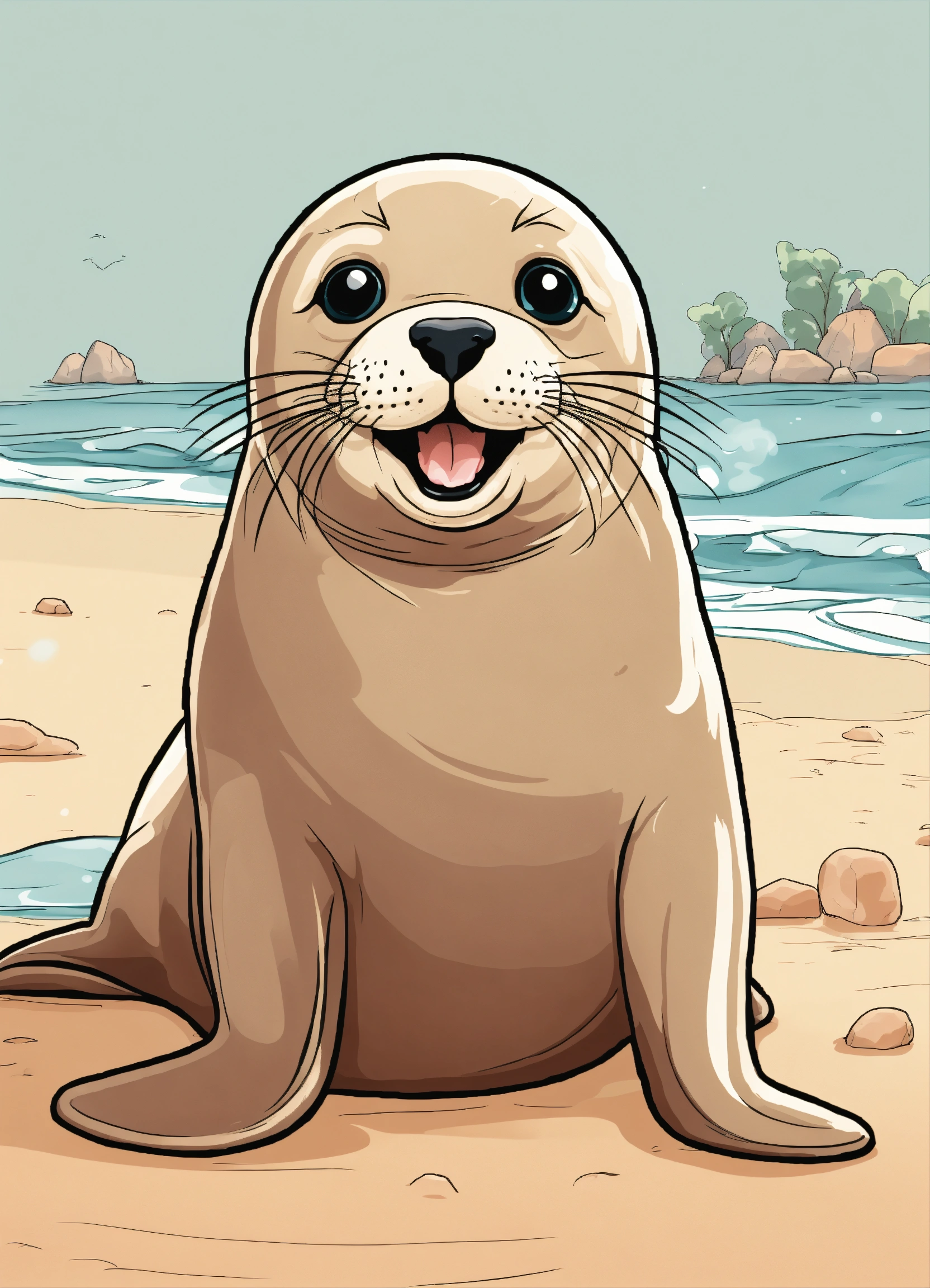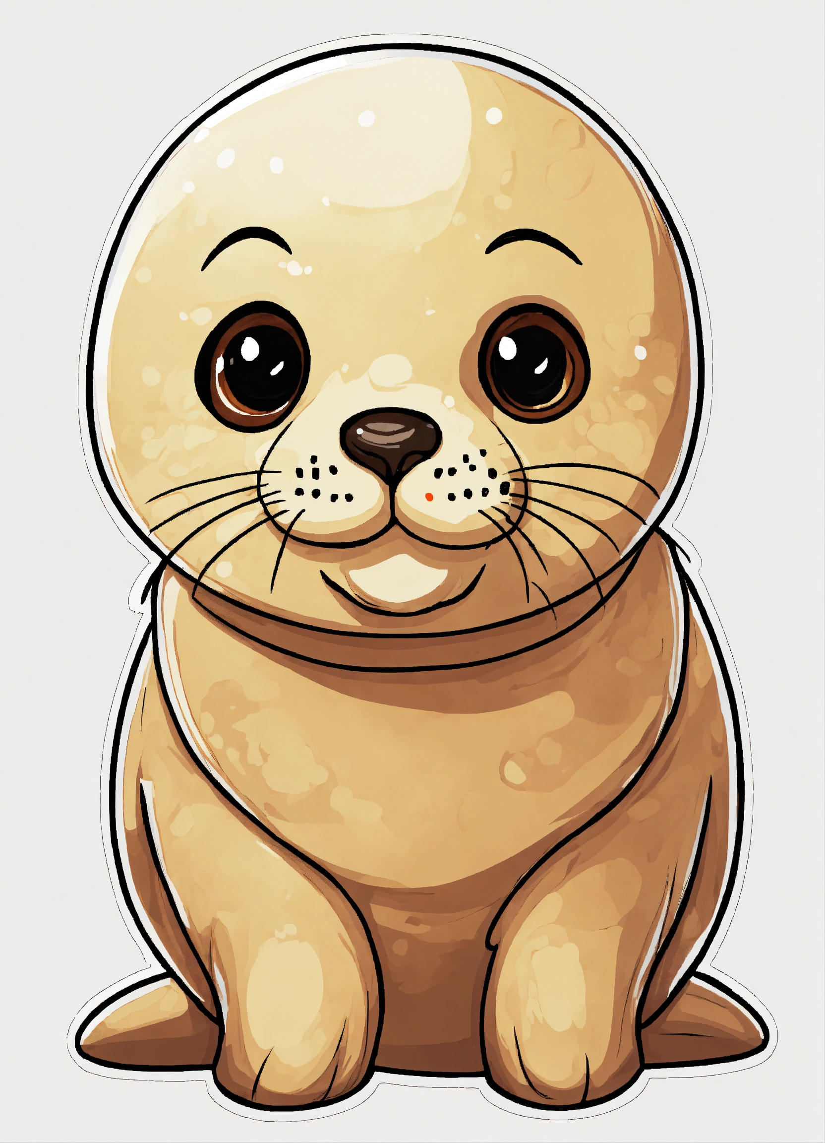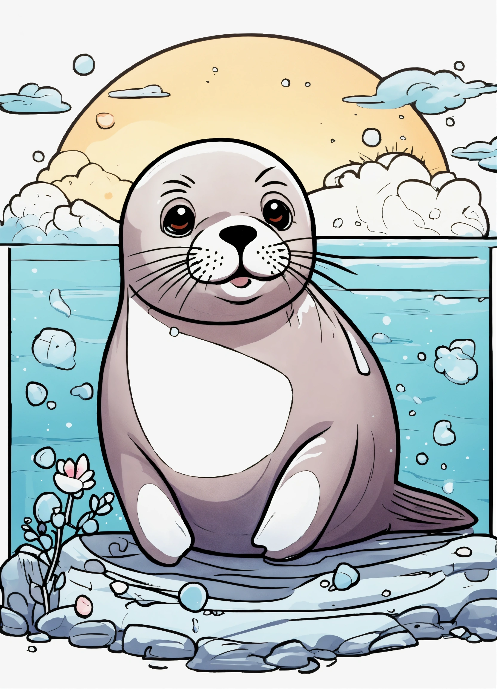 Generate a cute seal, 4k resolution, cartoon-sticker style with clear lines on a pure white background suitable for a children's coloring book.