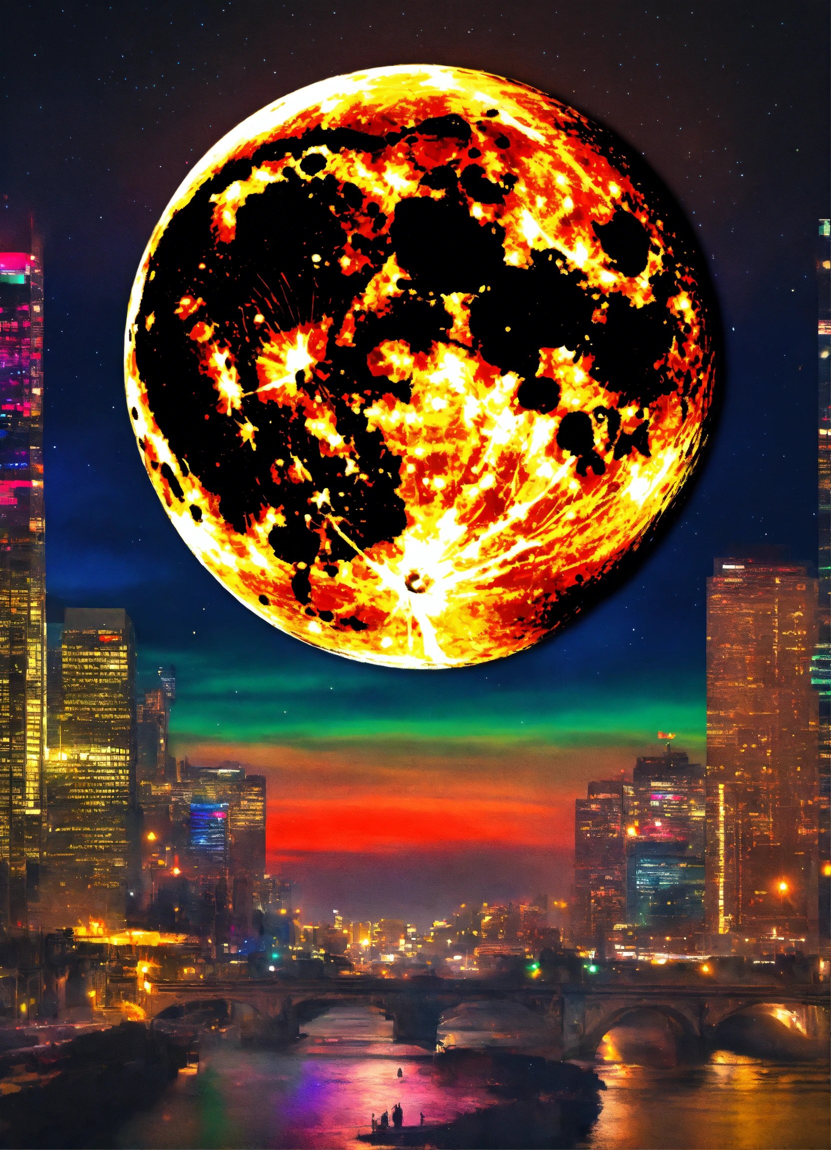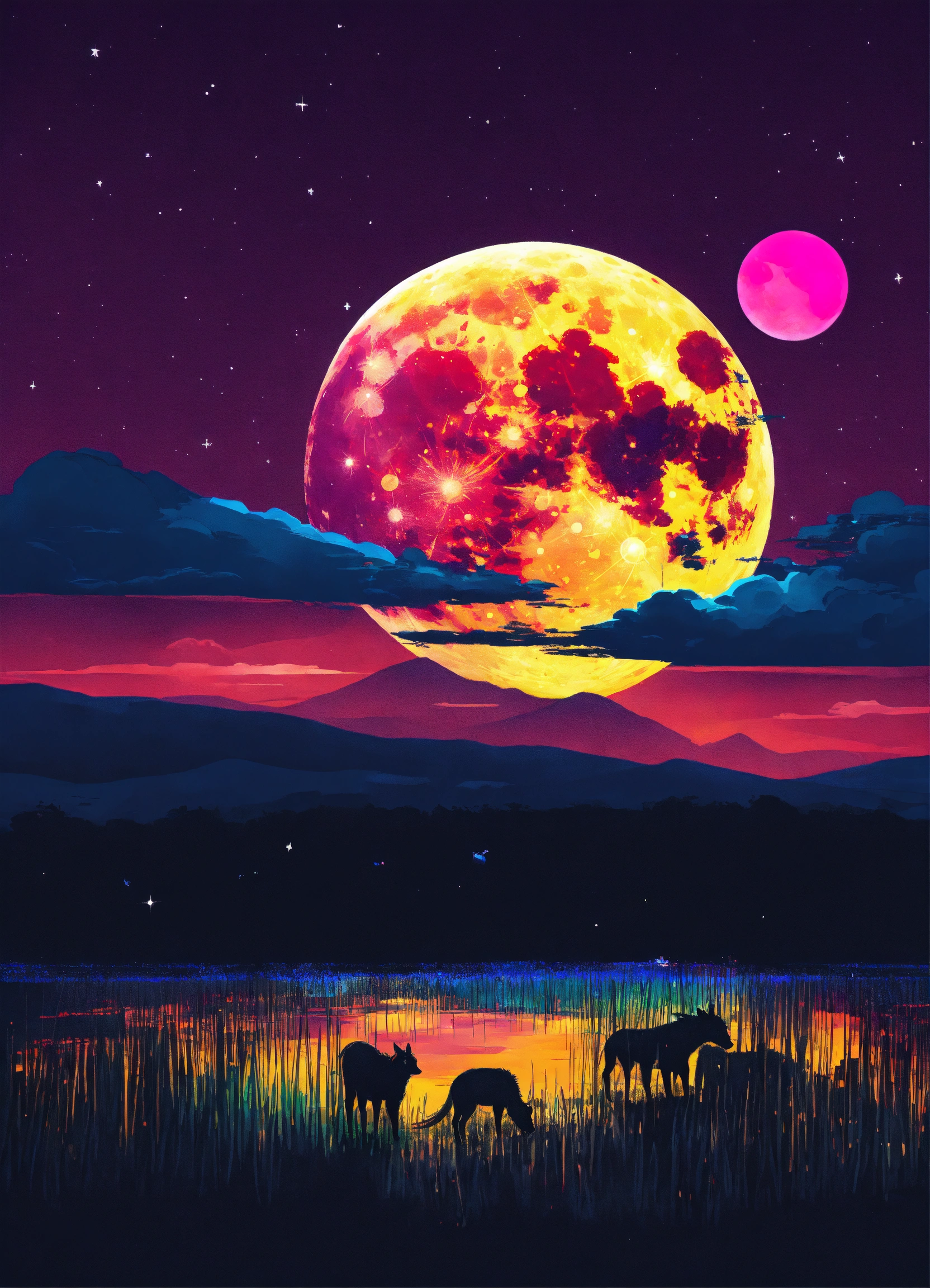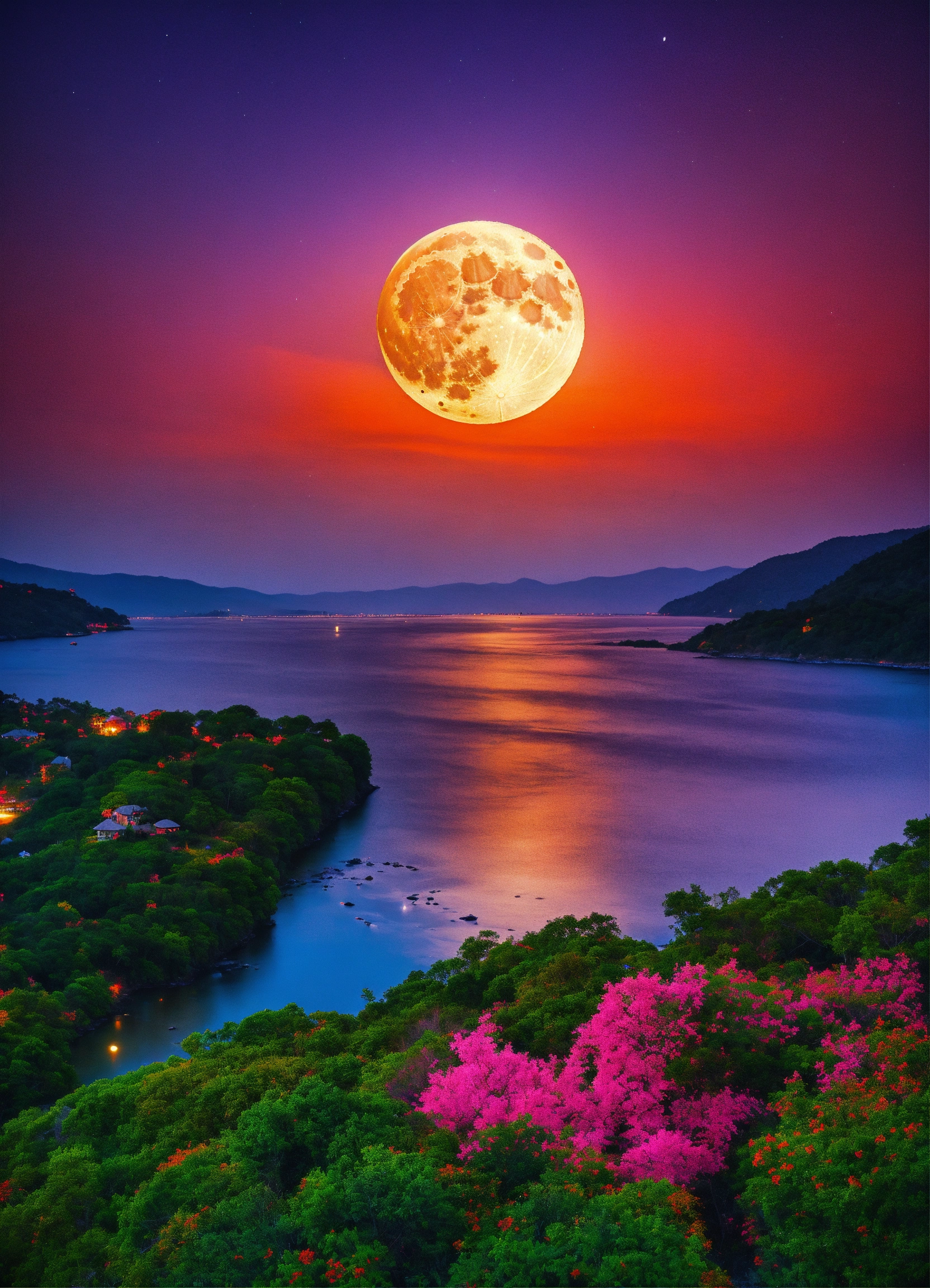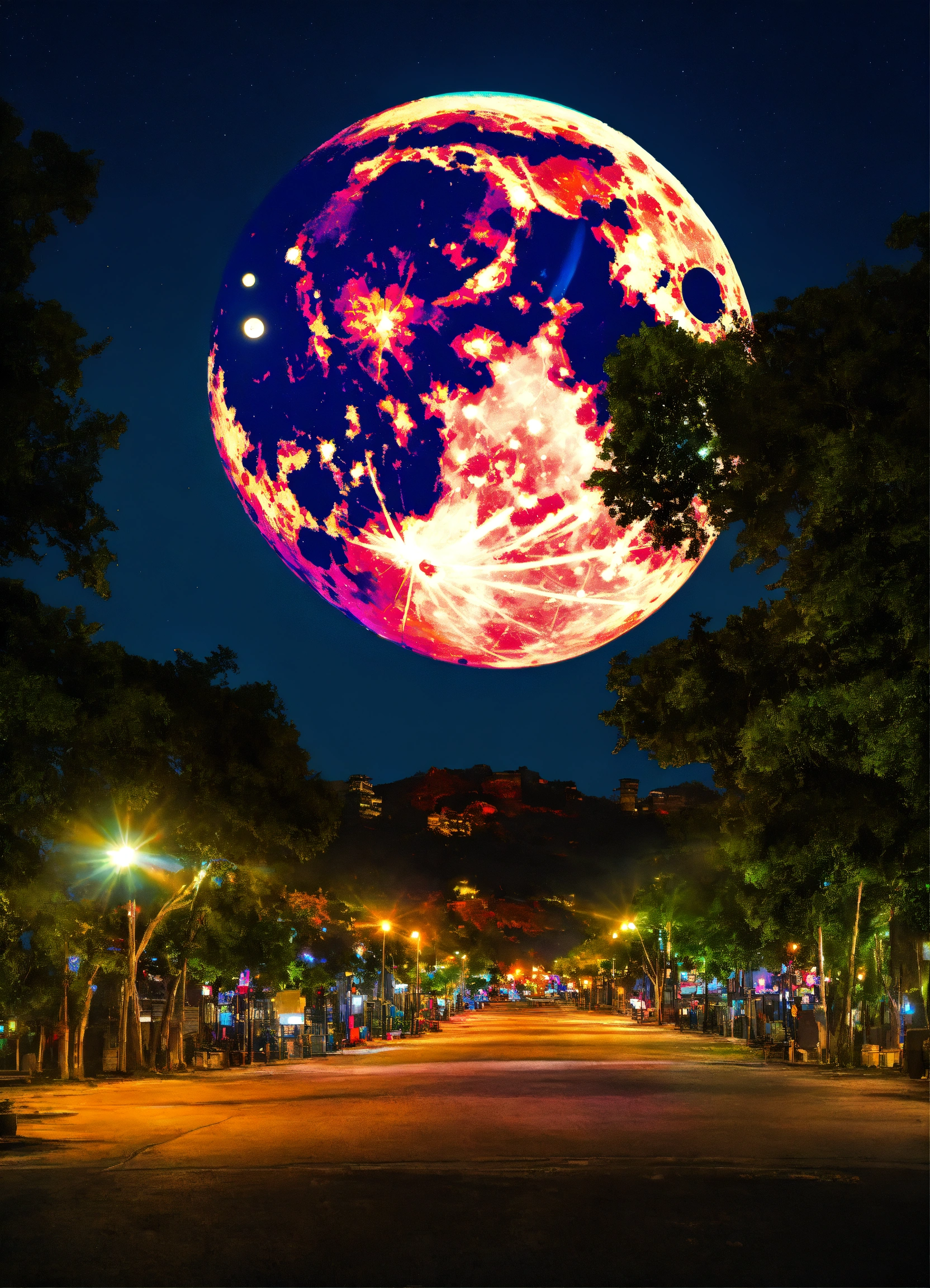 Vivid and colorful full moon