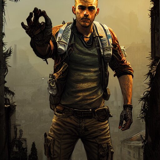 Brian frost as aiden caldwell character from dying light 2 stay human, western, d&d, fantasy, intricate, elegant, highly detailed, digital painting, artstation, concept art, matte, sharp focus, illustration, art by artgerm and greg rutkowski and alphonse mucha