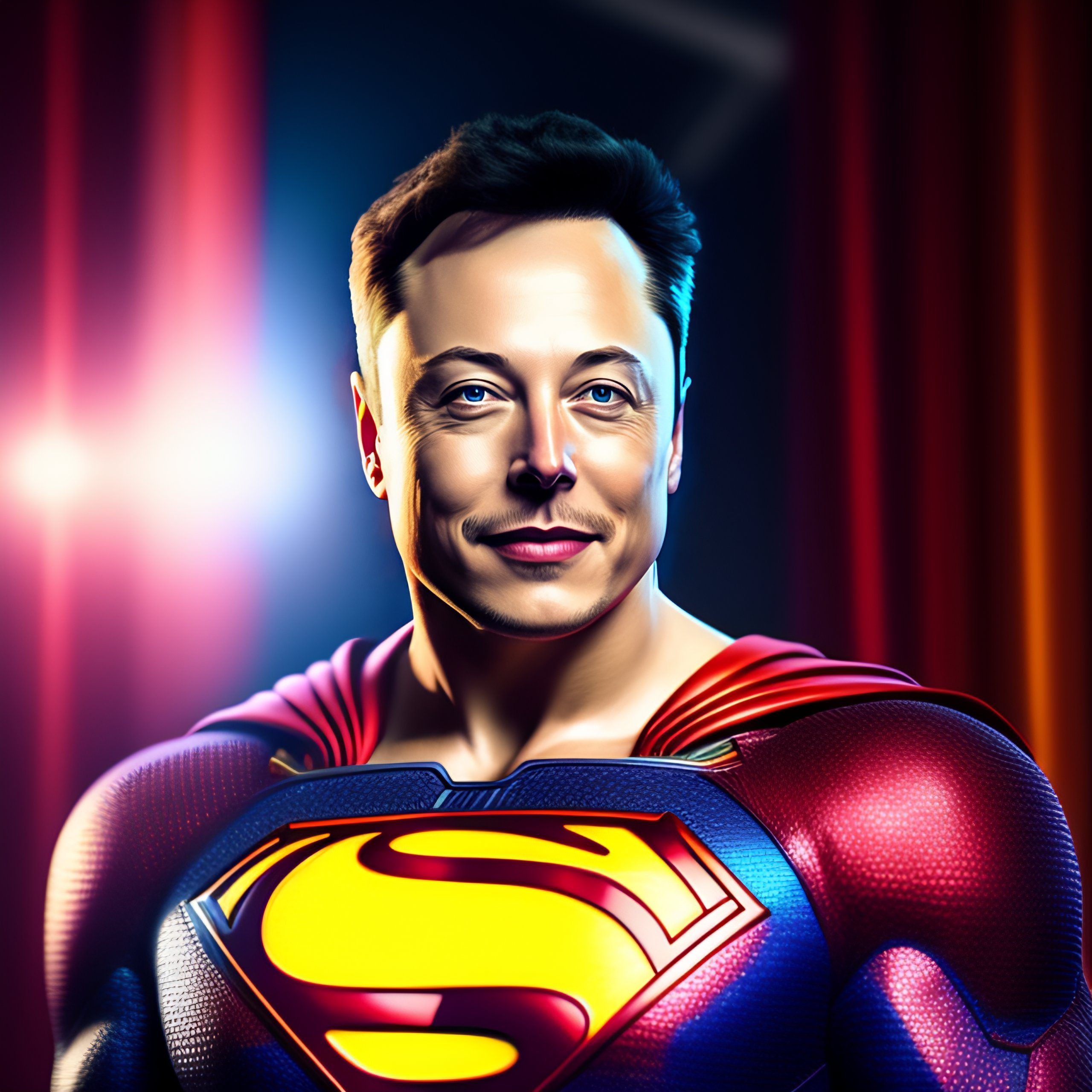 Highly detailed portrait of elon musk, dressed as superman, global illumination, radiant light, detailed and intricate environment