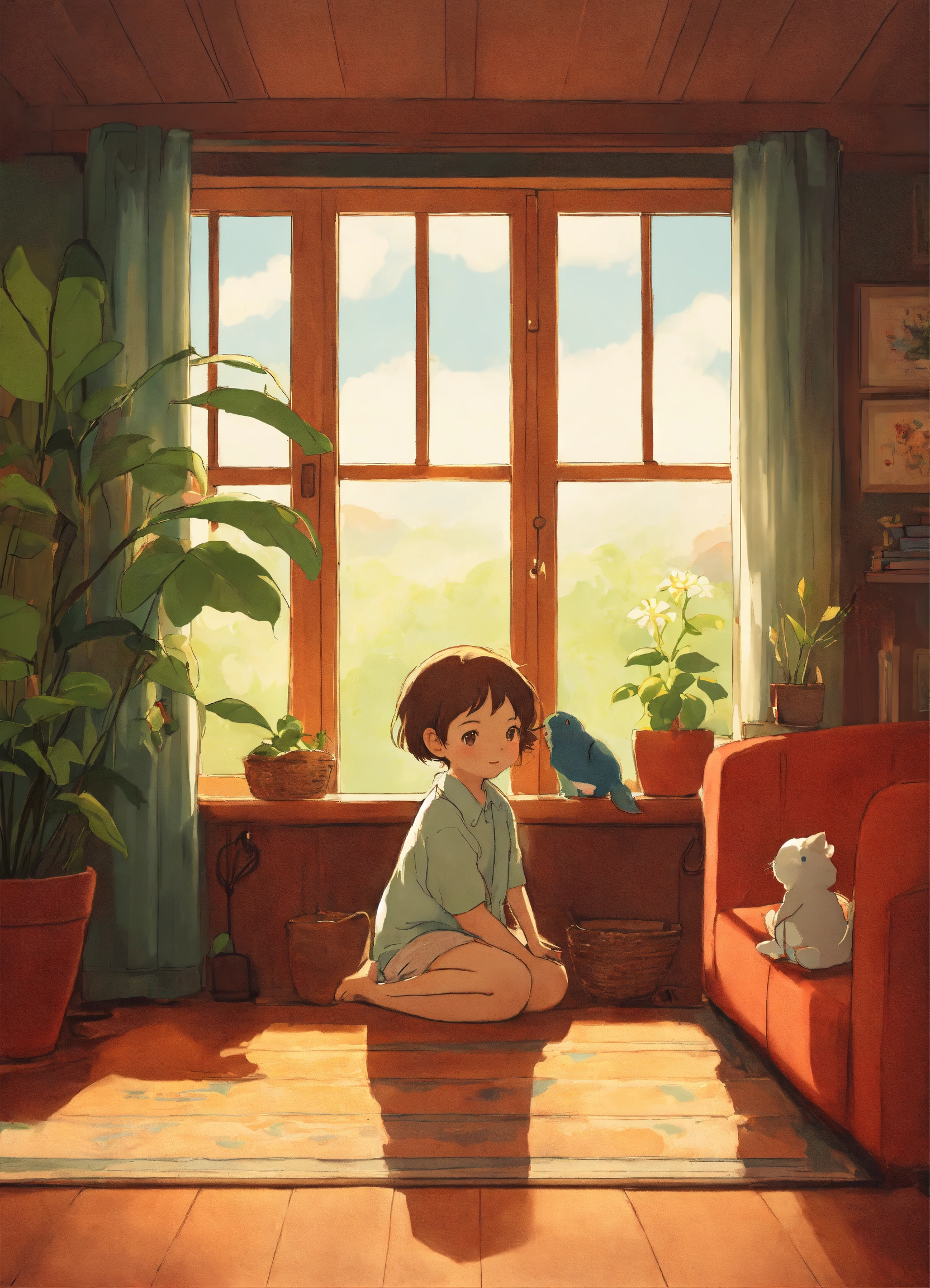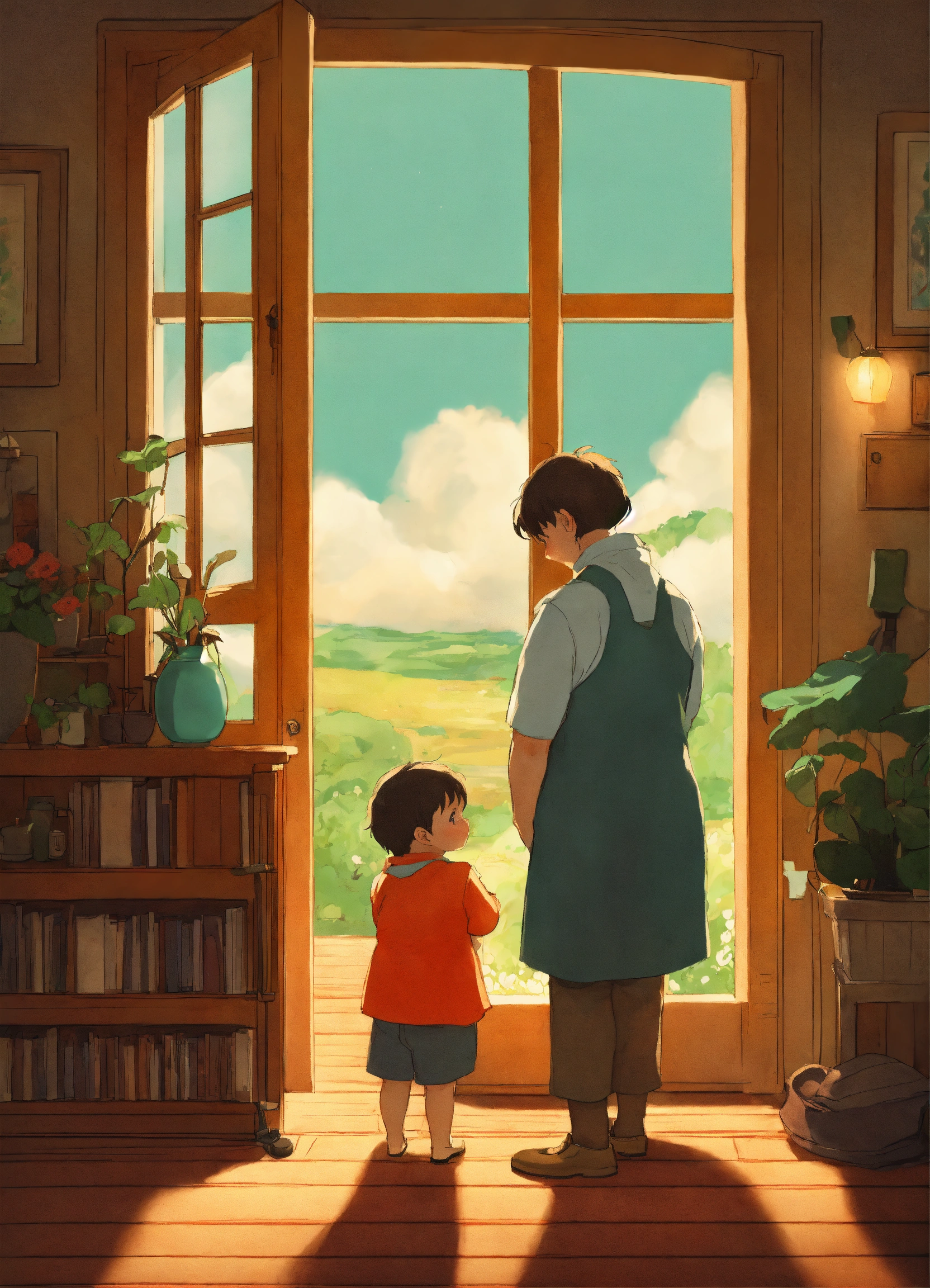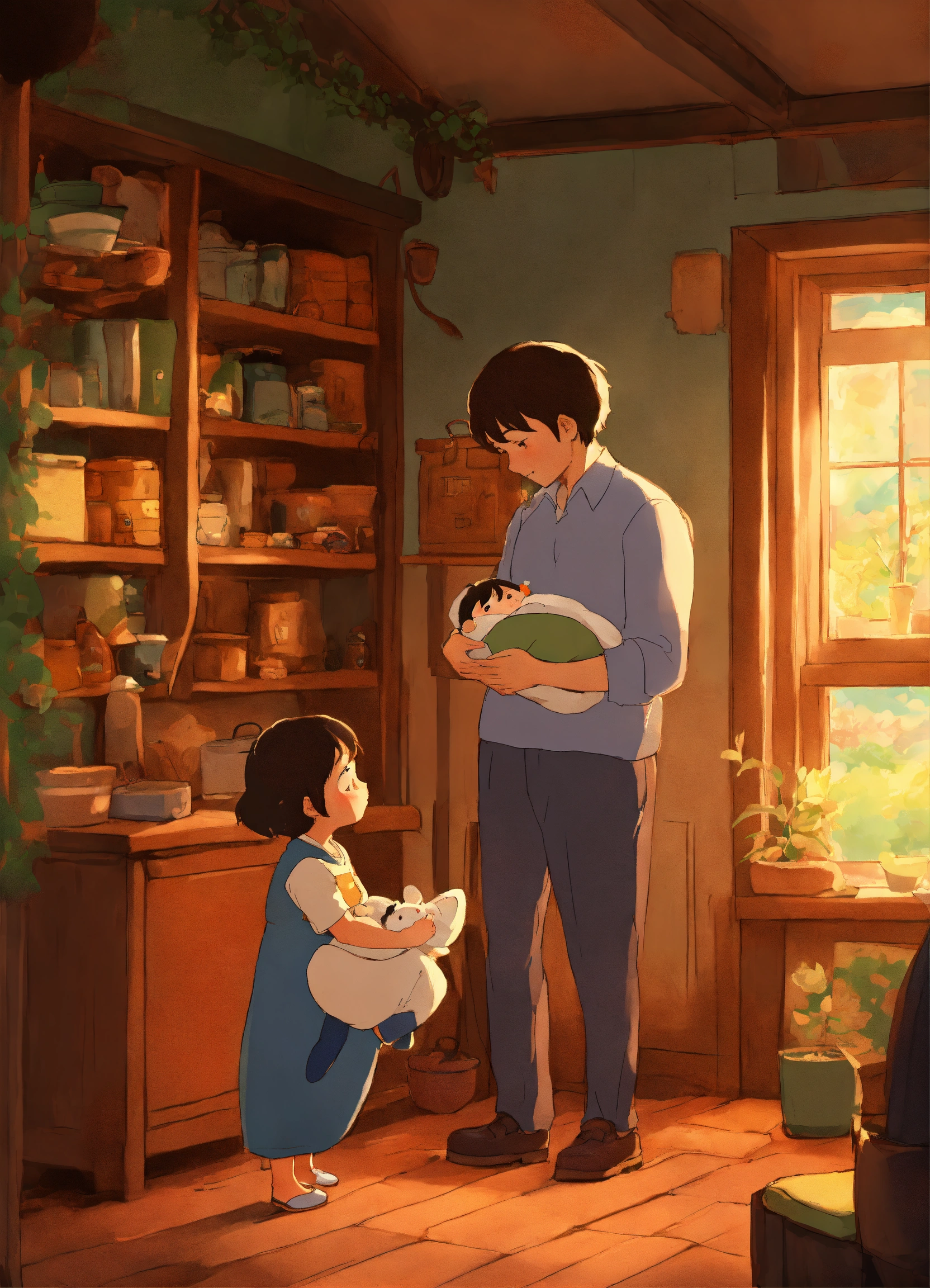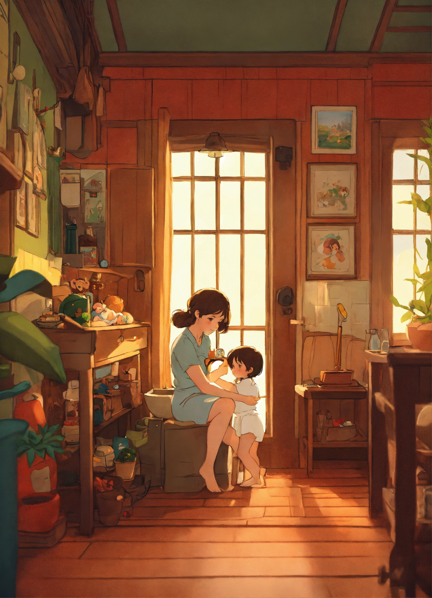 A little baby with mom and dad in the house inspired by the visual style of studio ghiblisimple art inspired by the visual style of studio ghibli