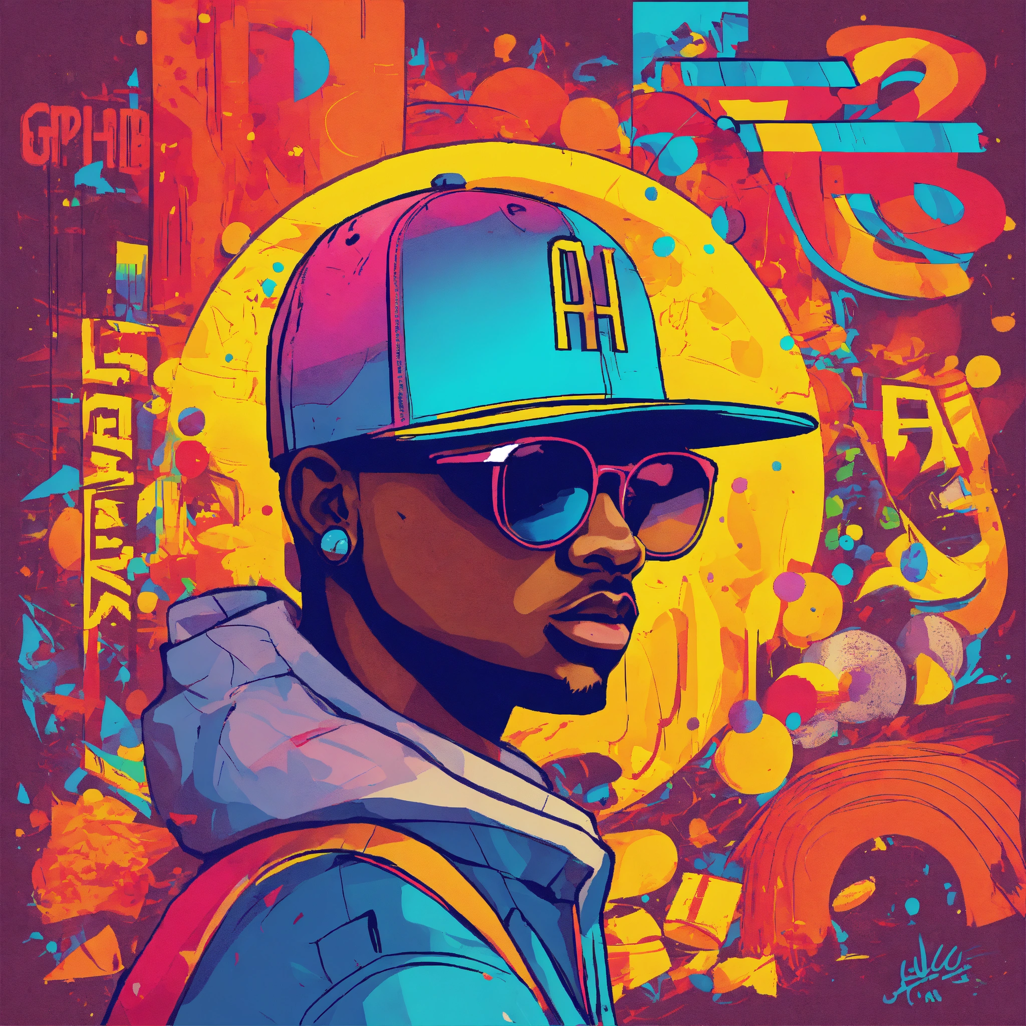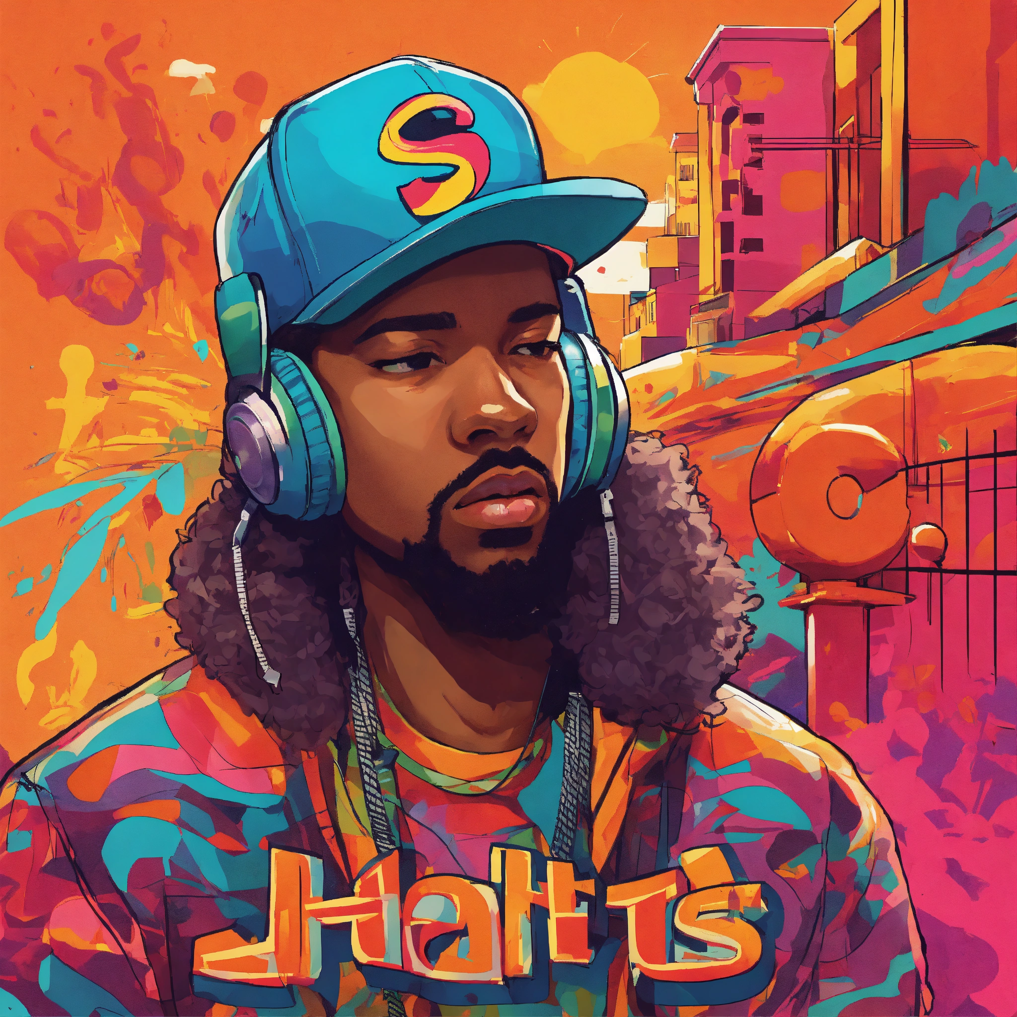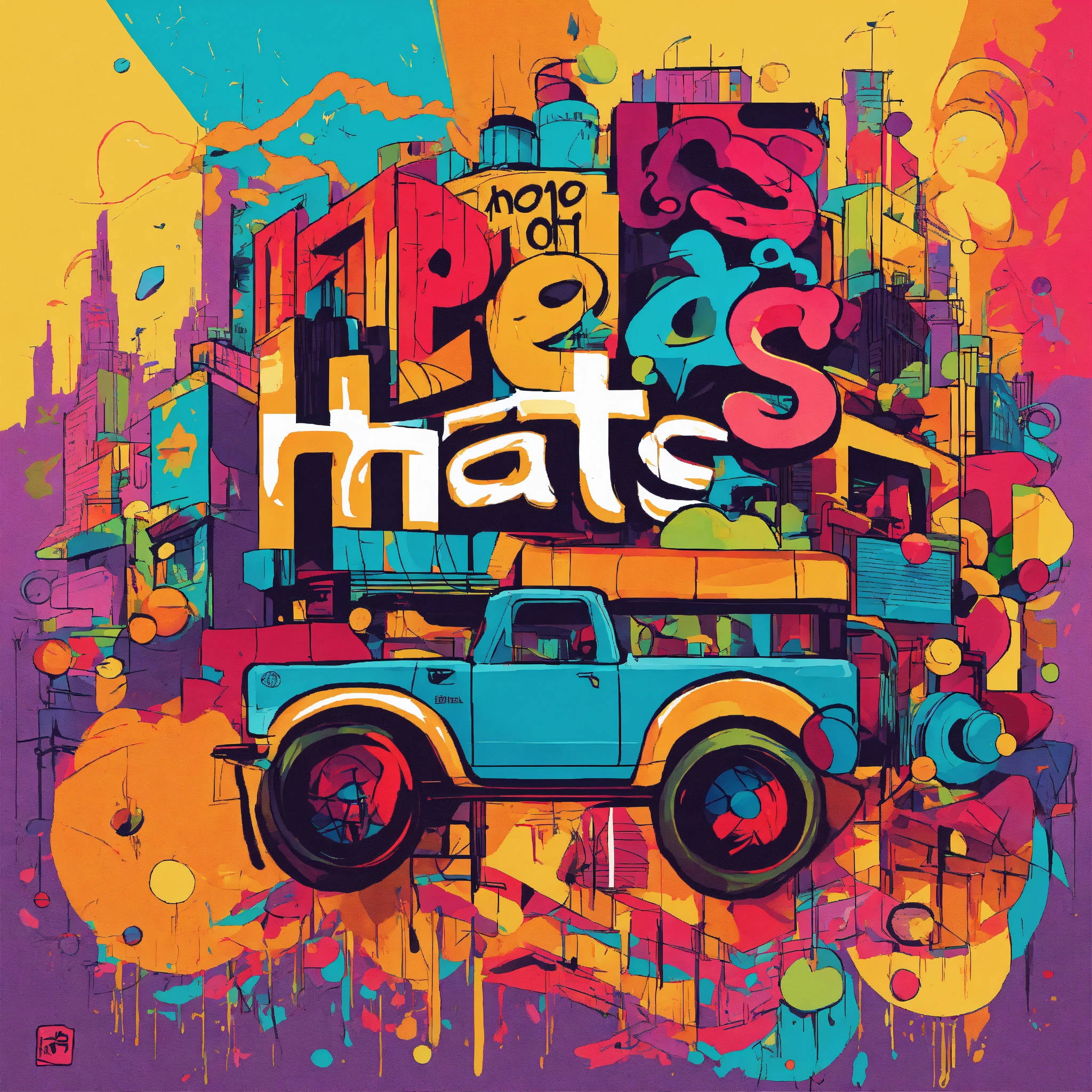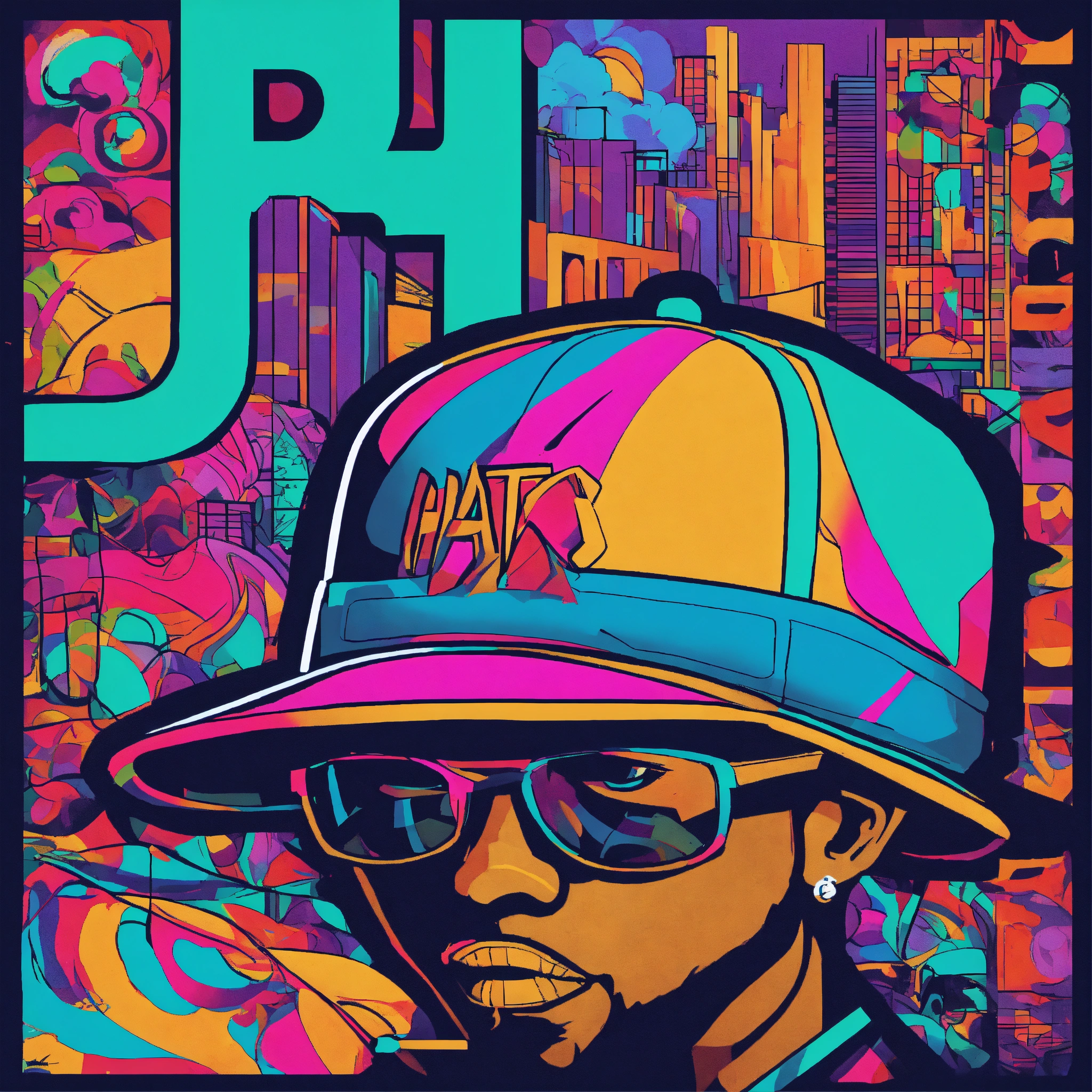 Generate a dynamic and colorful hip-hop-inspired illustration of the word 'hats.' ensure that the letter 's' stands out by incorporating a small yet stylish hat directly on the 's.' the hat should complement the energetic and vibrant theme, adding a touch of urban flair. use lively colors, bold patterns, and consider elements such as graffiti-inspired details or street art to enhance the overall hip-hop aesthetic of the composition