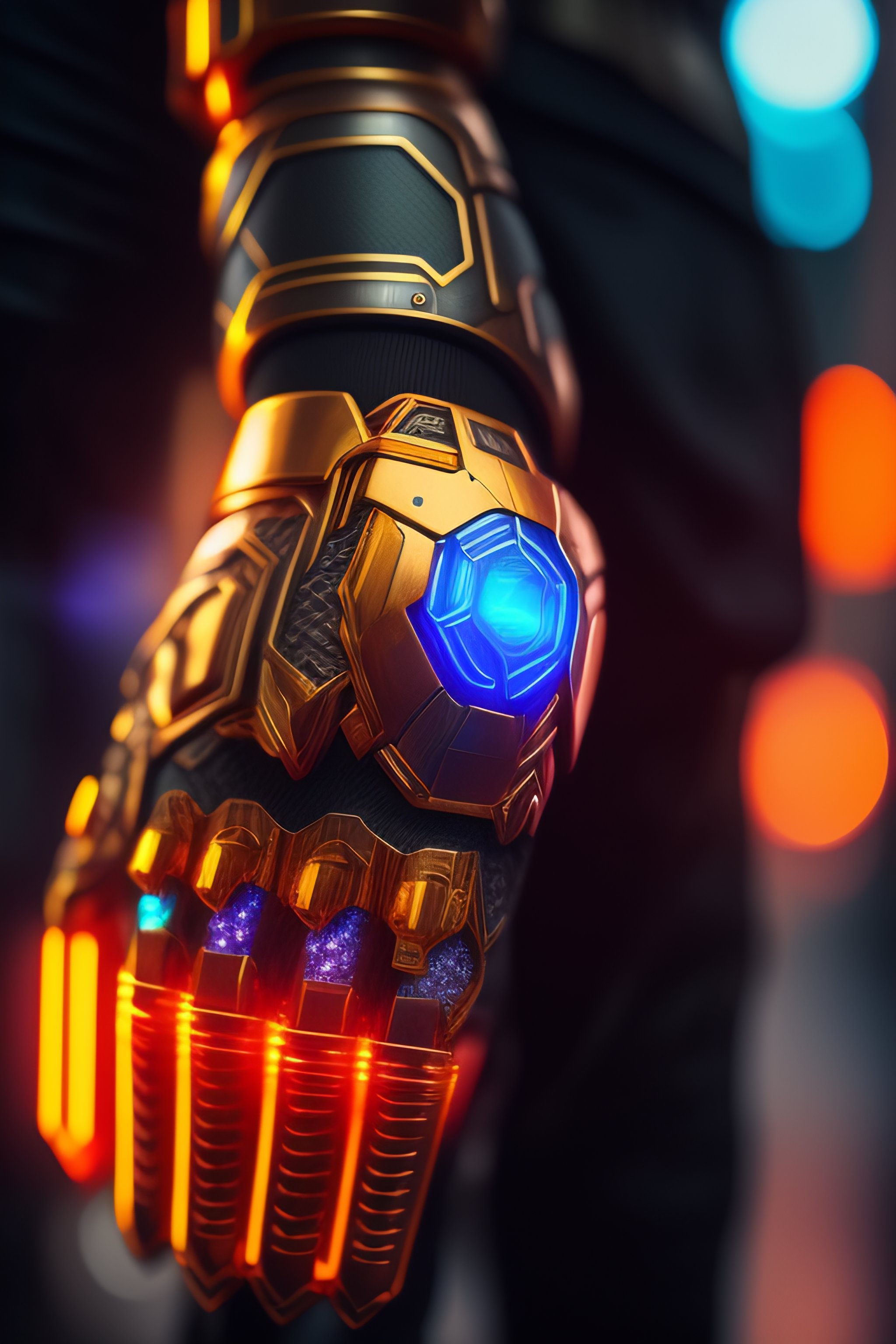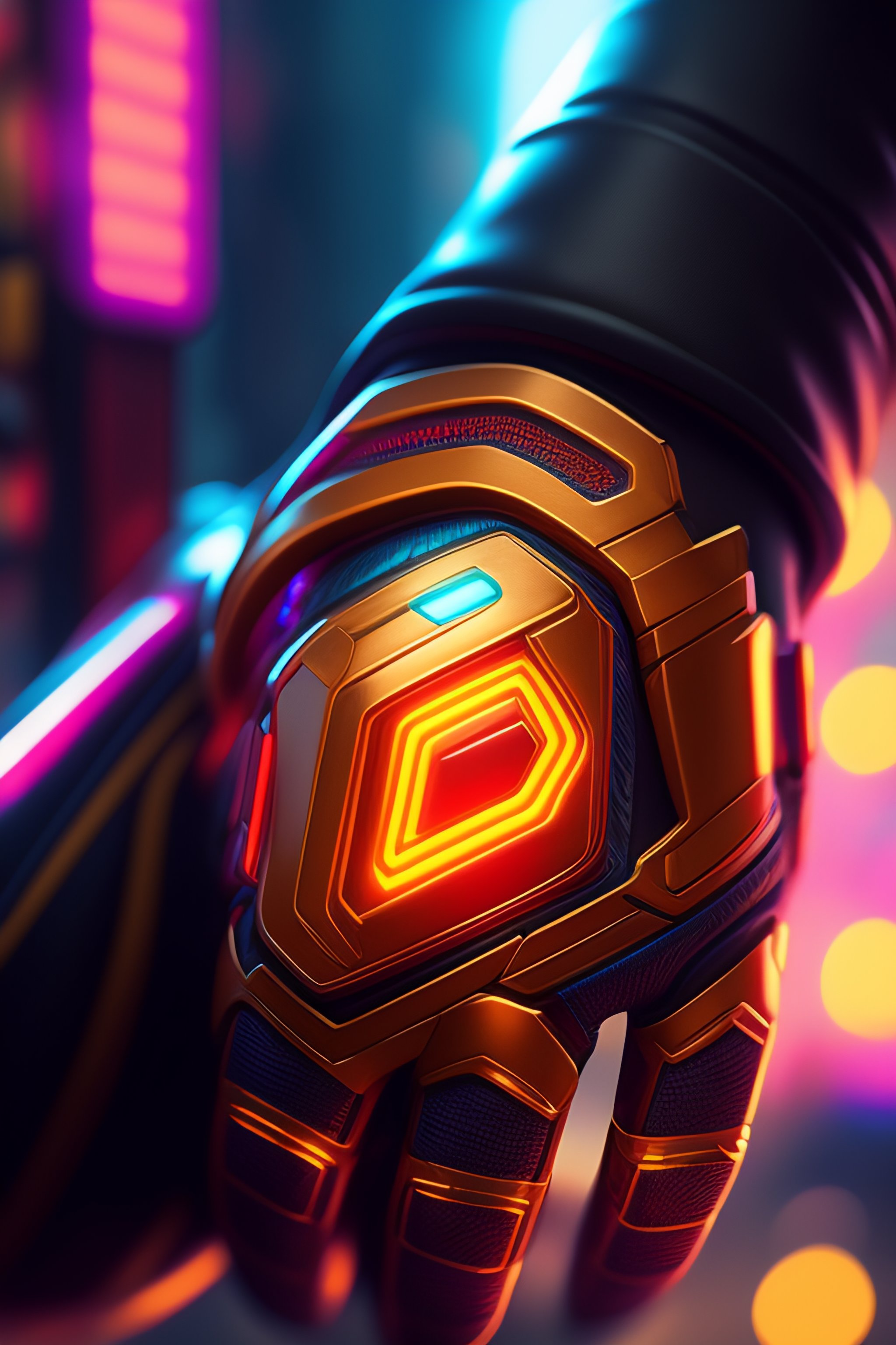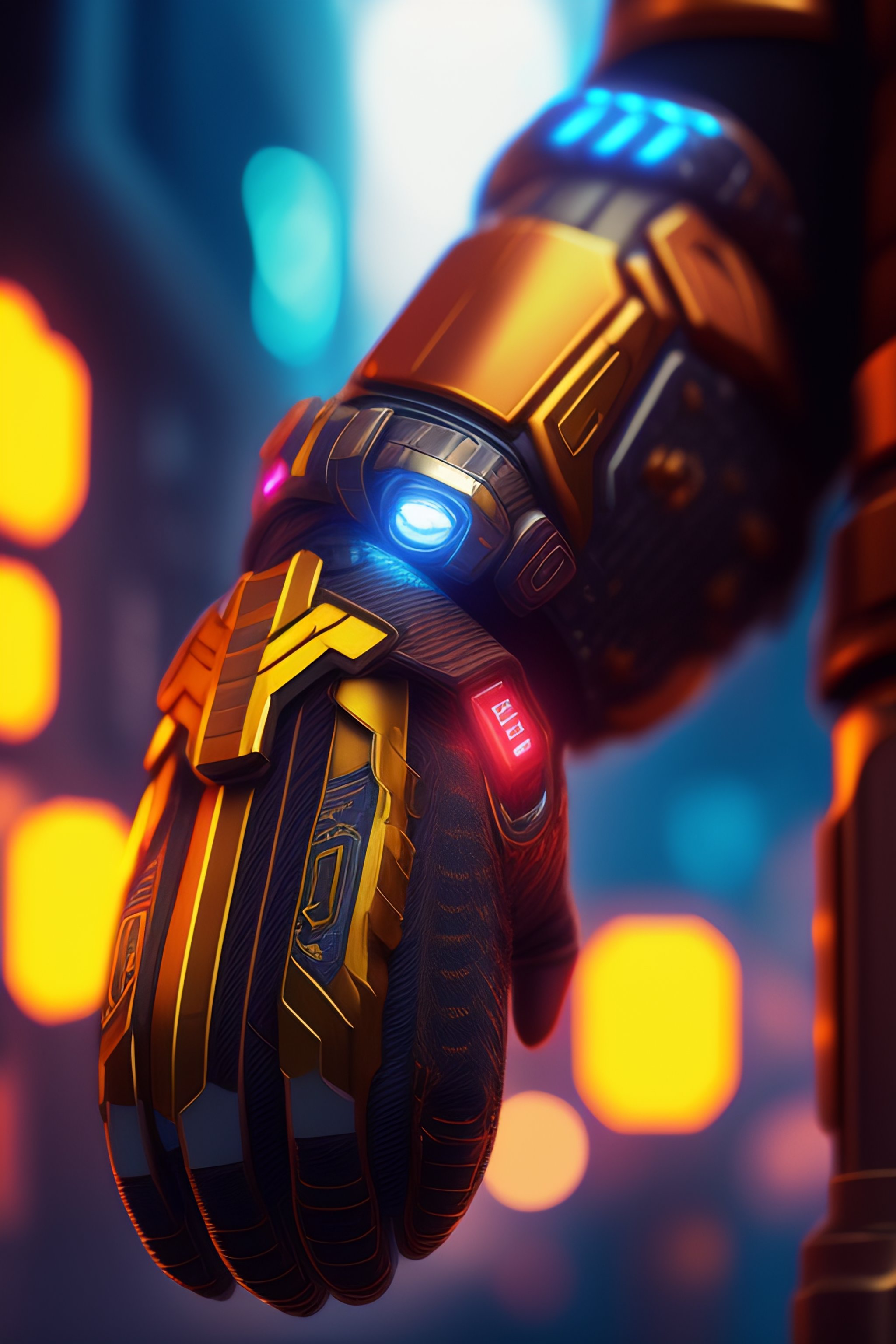 Ultradetailed illustration of a mechanic gauntlet being worn by a man, neon cyberpunk setting, cyberpunk 2 0 7 7, highly detailed, iron man gauntlet, concept art by jama jurabaev