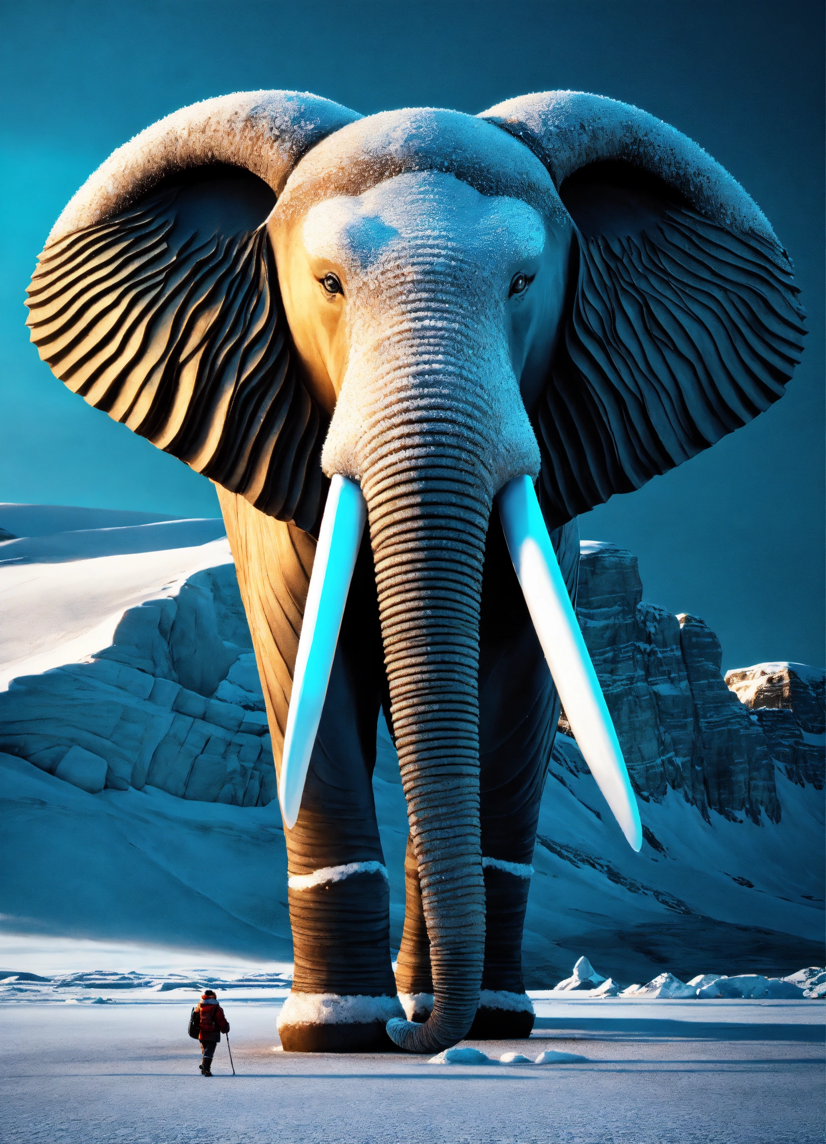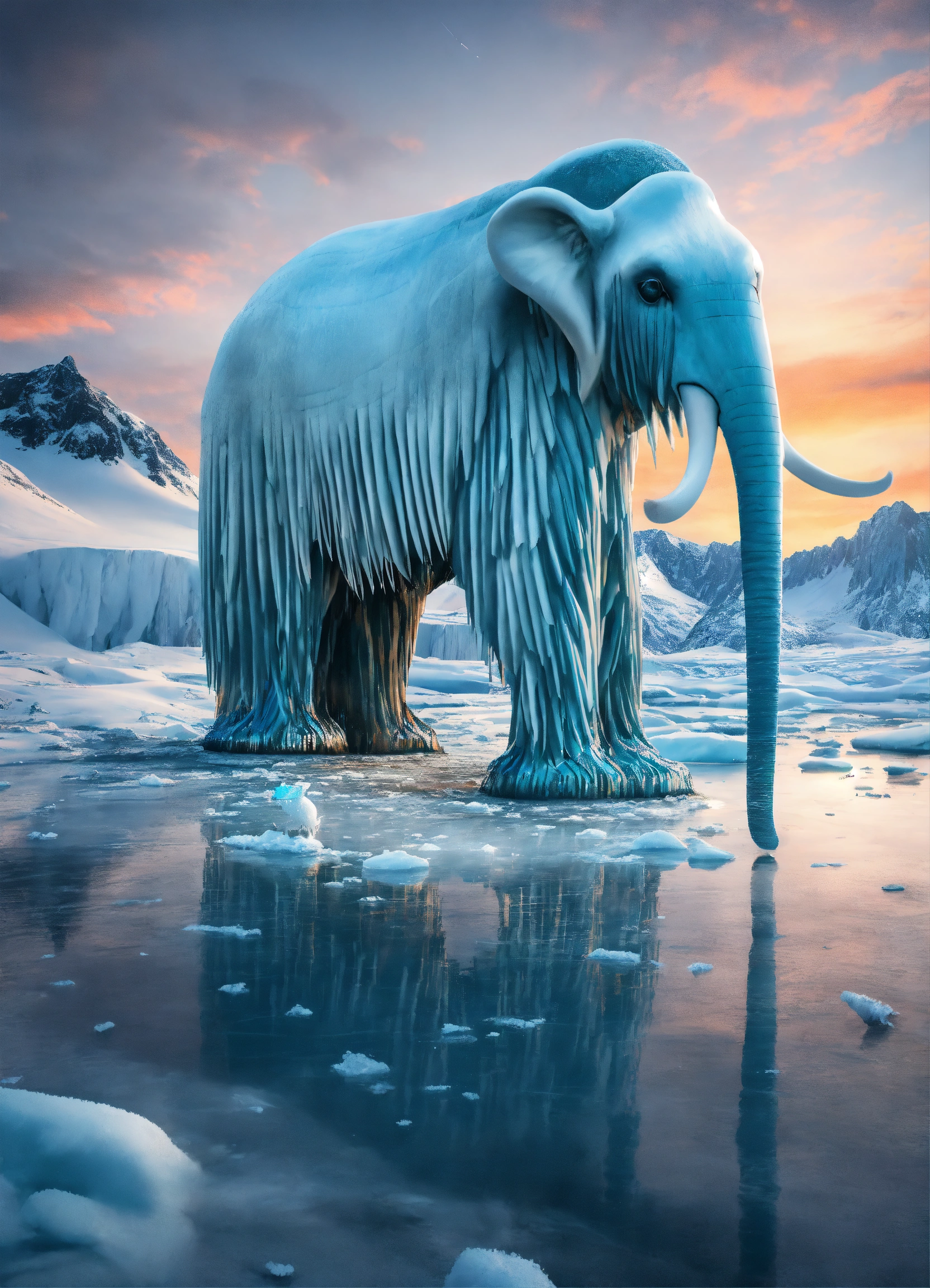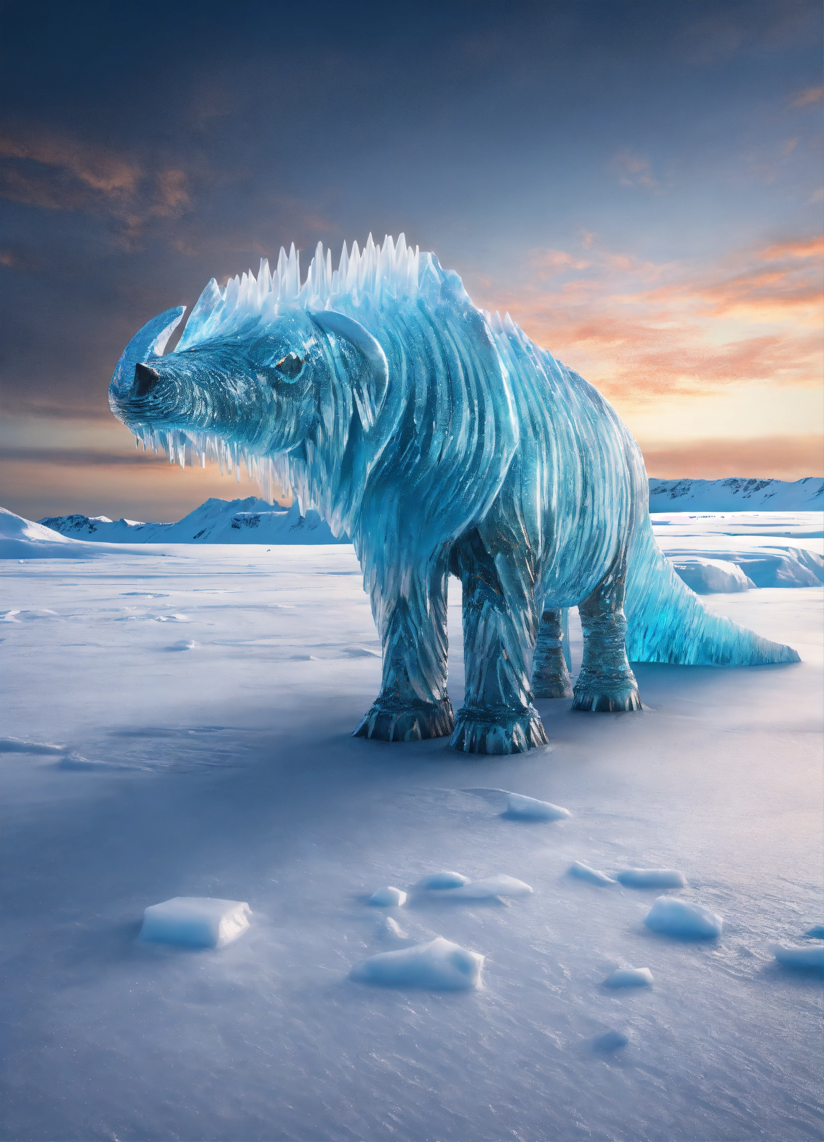 2. glacial glidertusk portrayed in 8k ultra 3d, this critter navigates the frigid arctic landscapes with tusks that appear as ice sculptures, glistening with an otherworldly frost, embodying the chill of the polar regions.