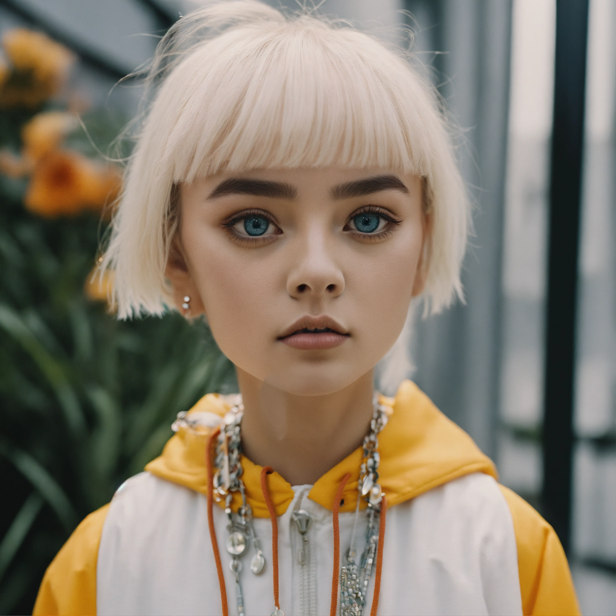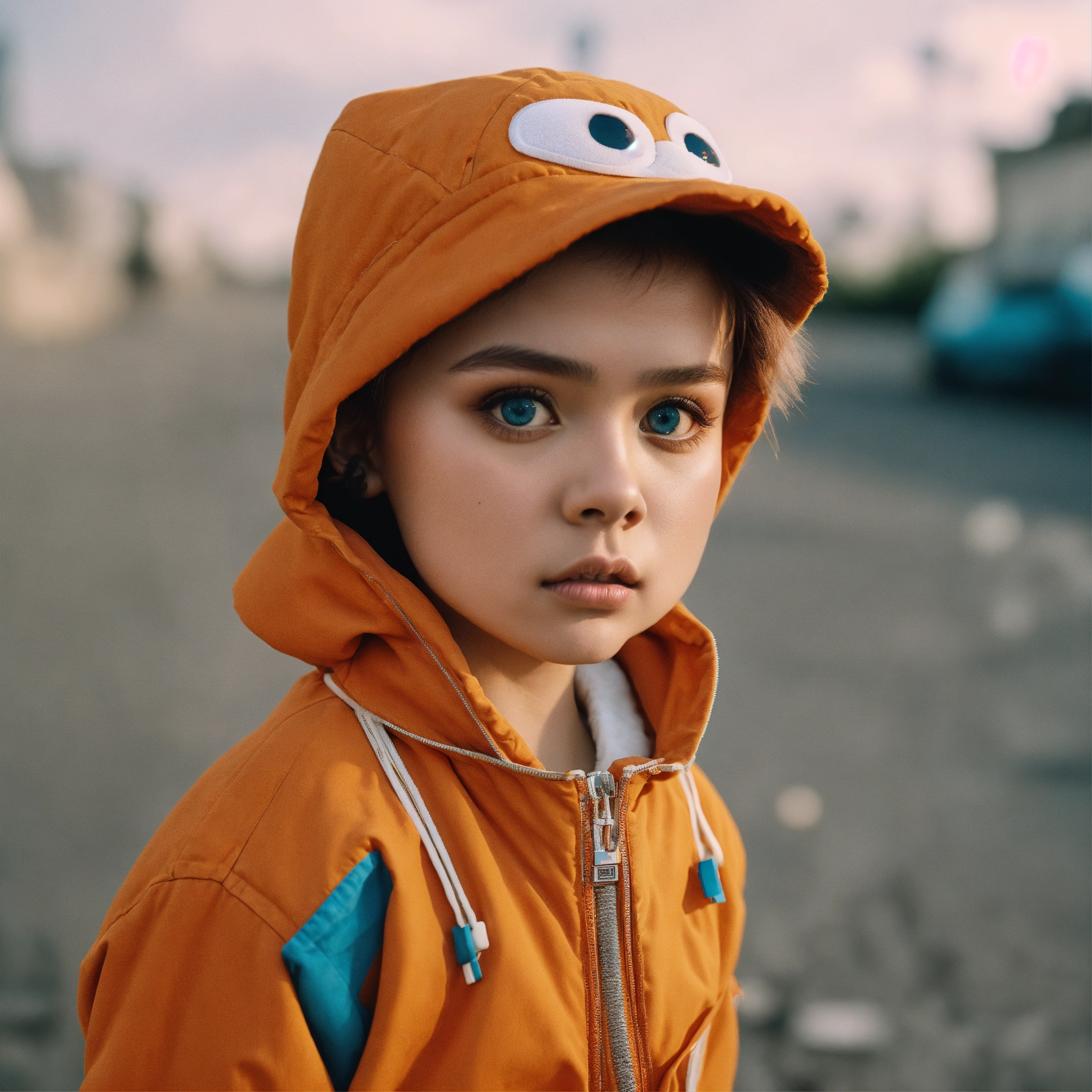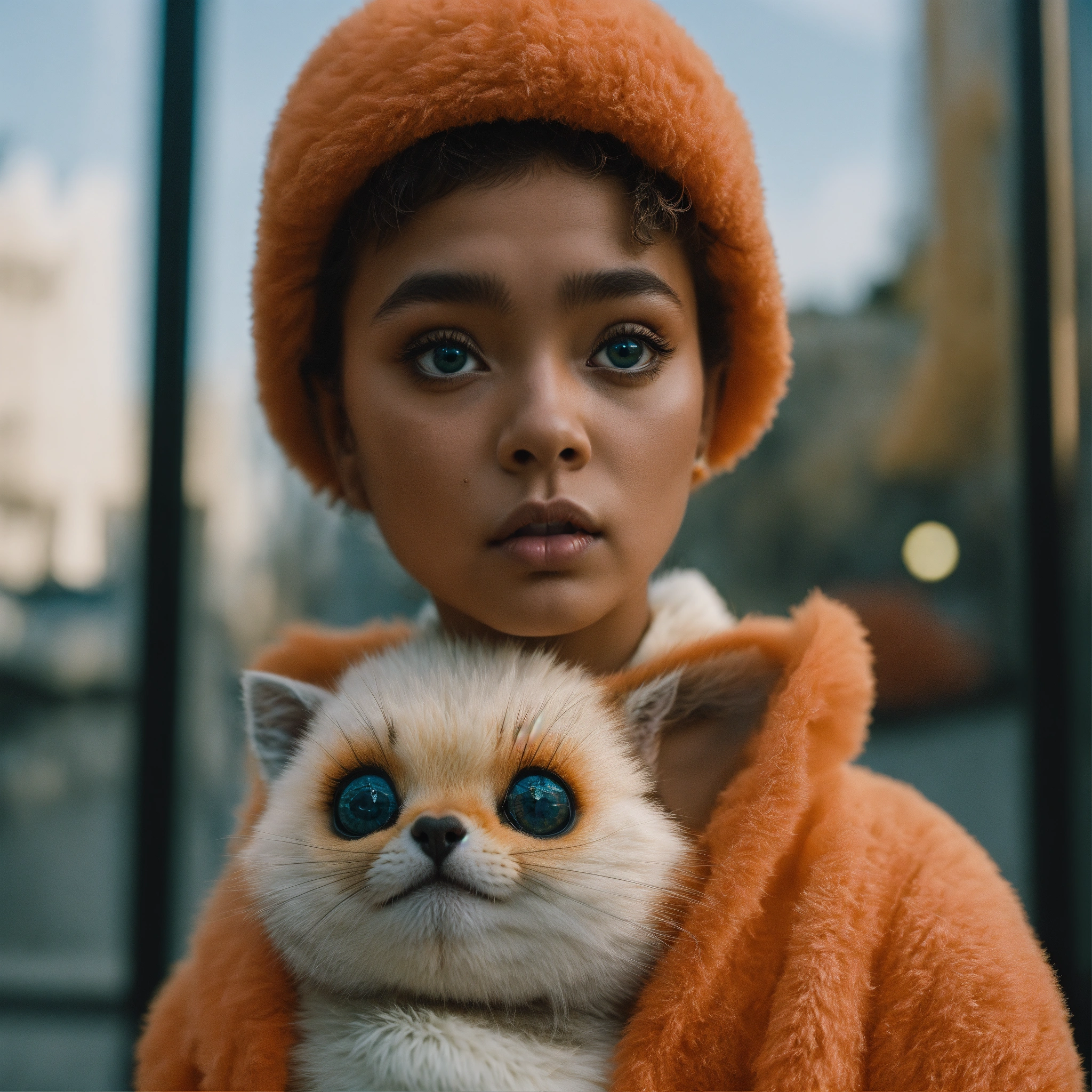 Adorable creature with big adorable creature with big reflective eyes, 8k resolution, hyper realistic, day, 35mm film, editorial, high fashion, 2023, off white by virgil abloh