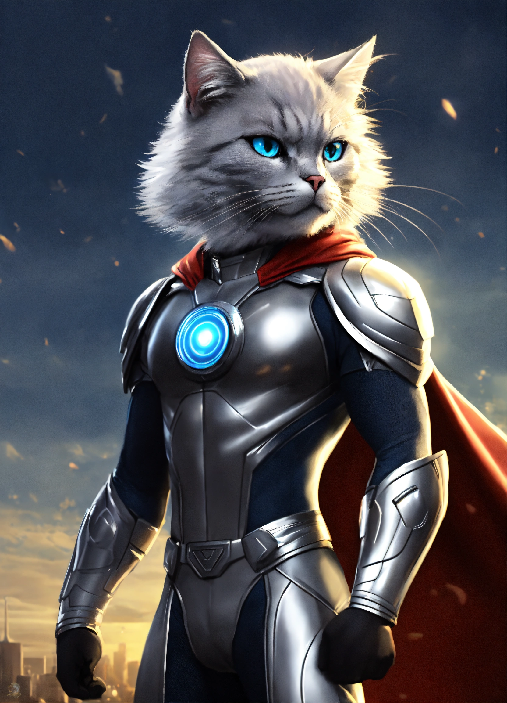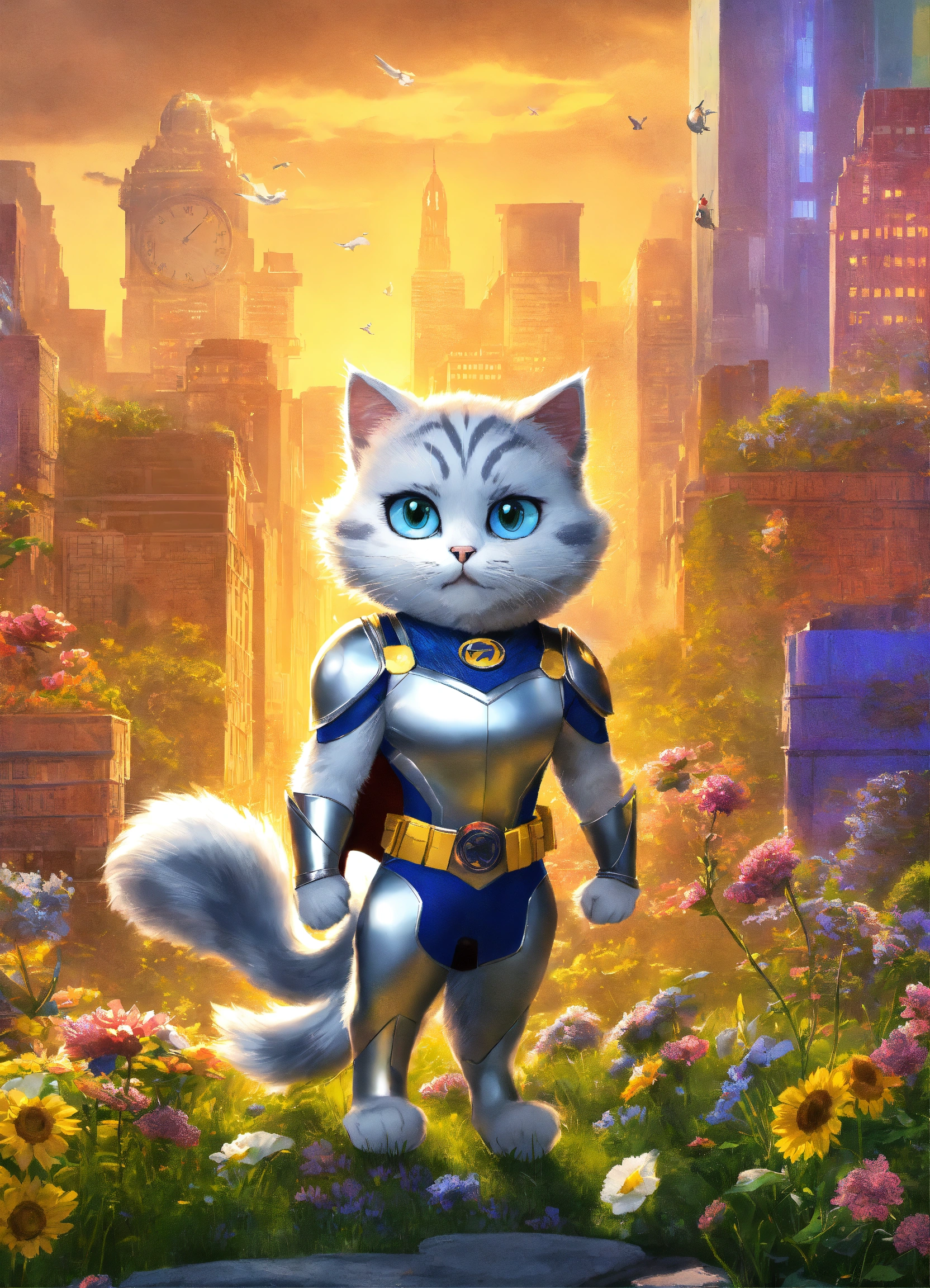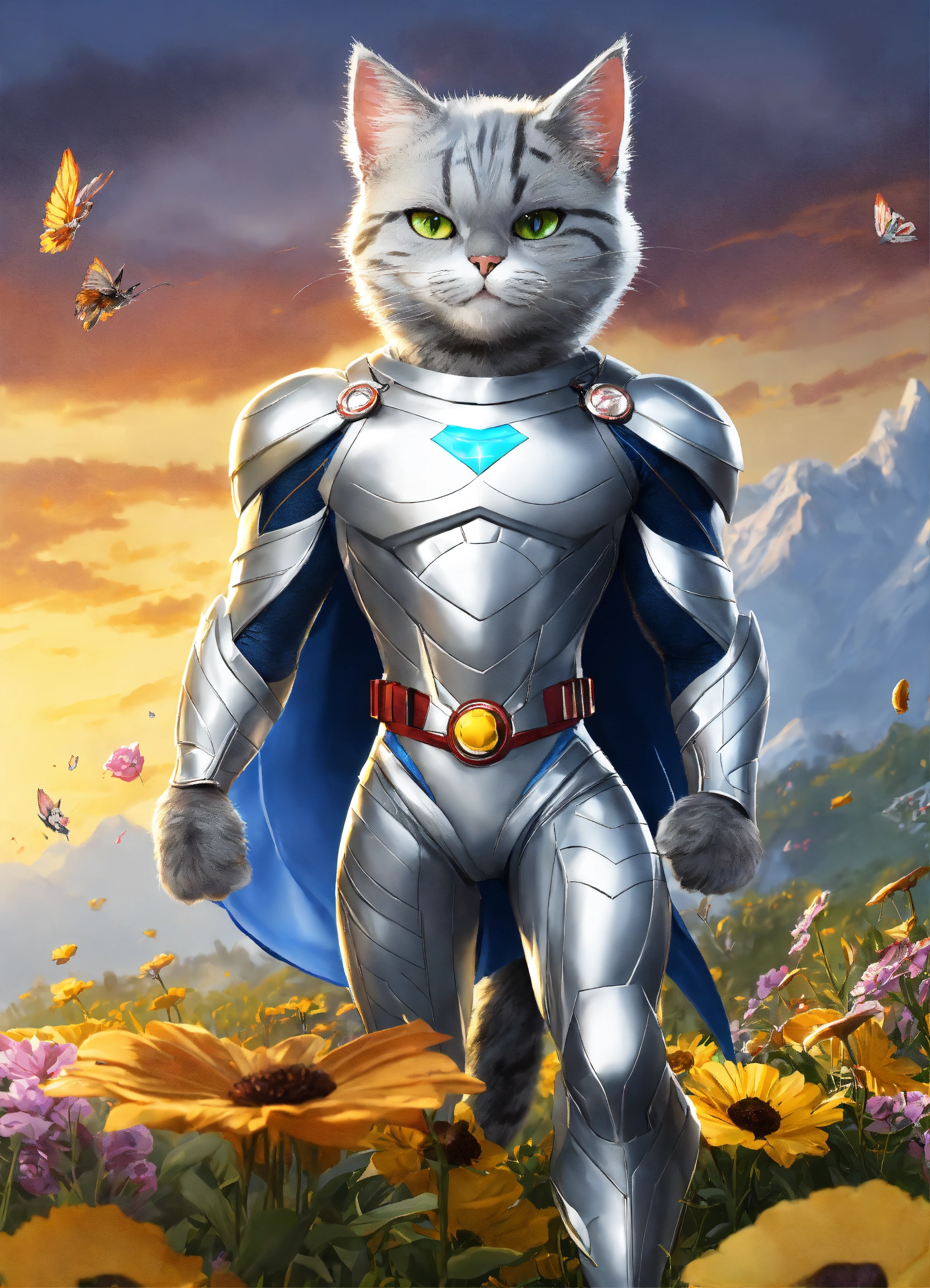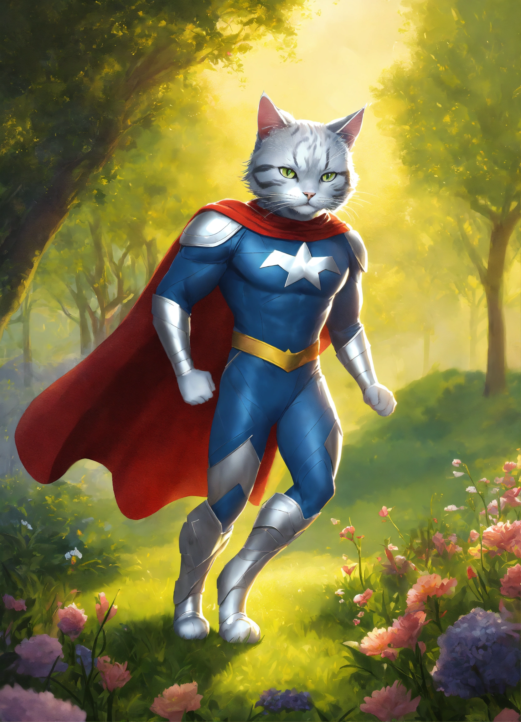 Silver (the cat) adjectives agile, mysterious, heroic verbs silver moves gracefully through the meadow, smiley and funny, exuding the agility and charm of a dc hero. his animated movements are captivating, evoking a unique style. silver has a sleek, superhero-like costume with a hint of mystique that adds to his aura of intrigue and adventure.