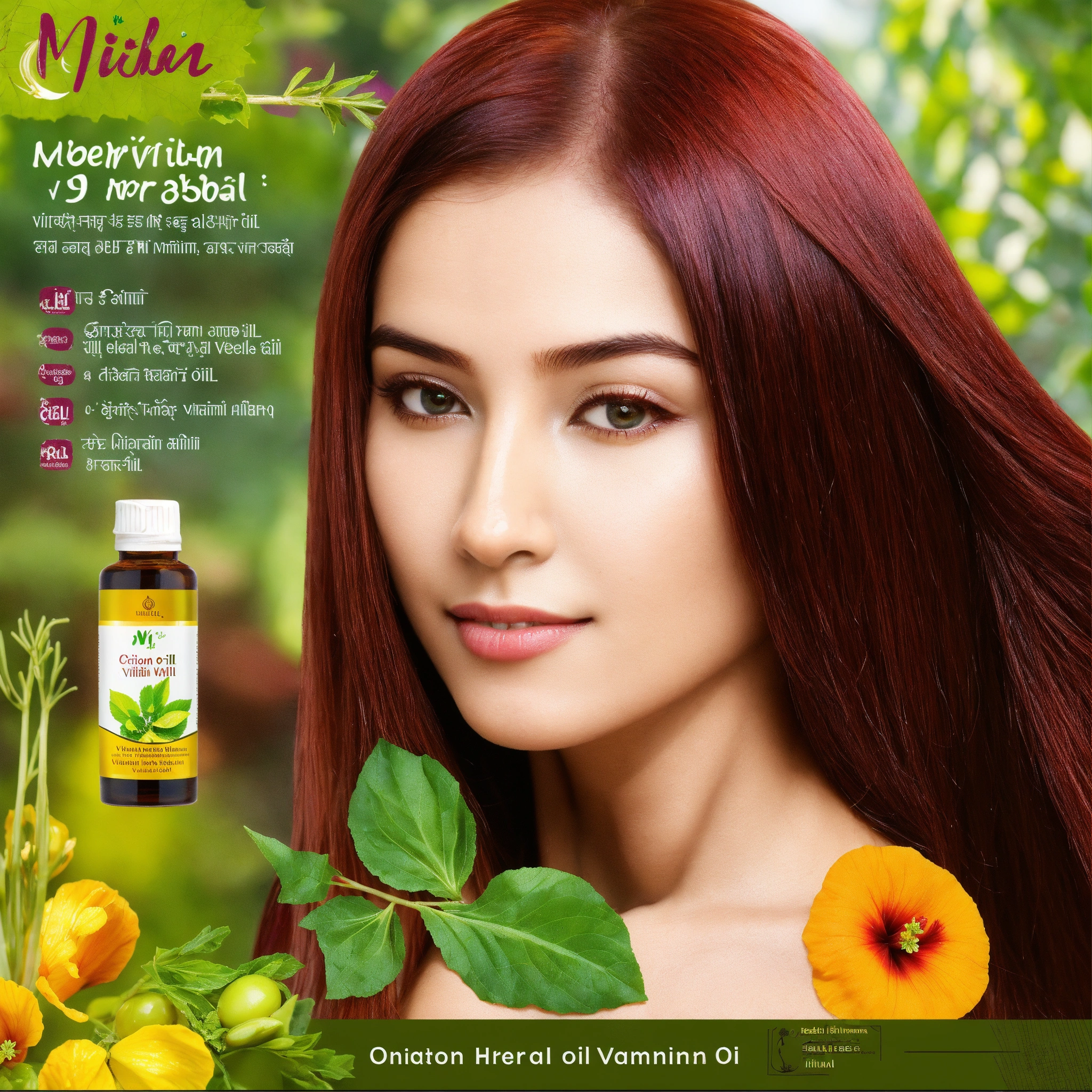 Create a template with m³herbal onion hair vitamin-e oil vitamin e is a crucial component for hair health, providing strength and preventing hair fall. onion hibiscus flower curry leaves cucuta (amar bel) henna grocery indian food sesame oil olive oil tea tree oil