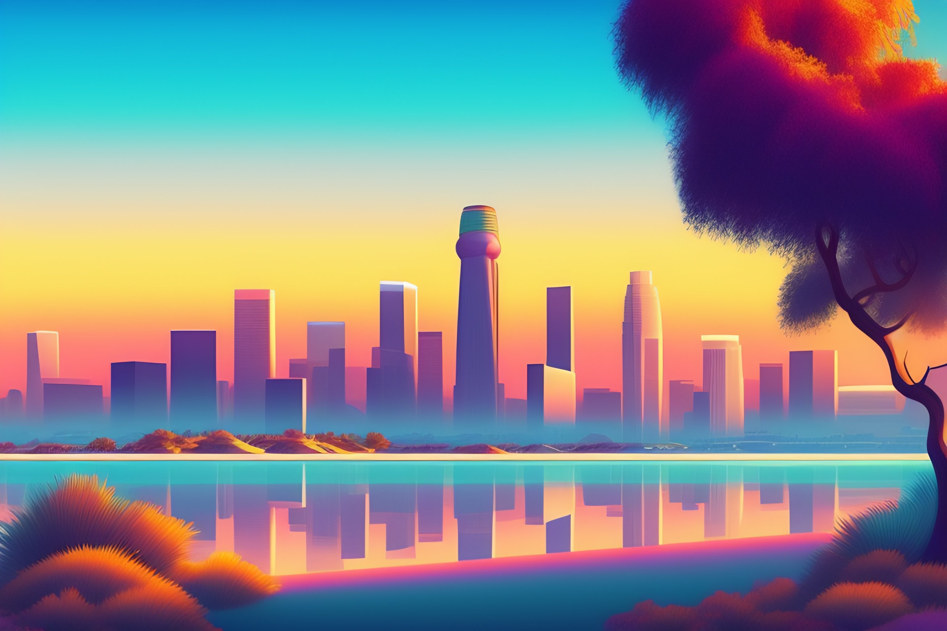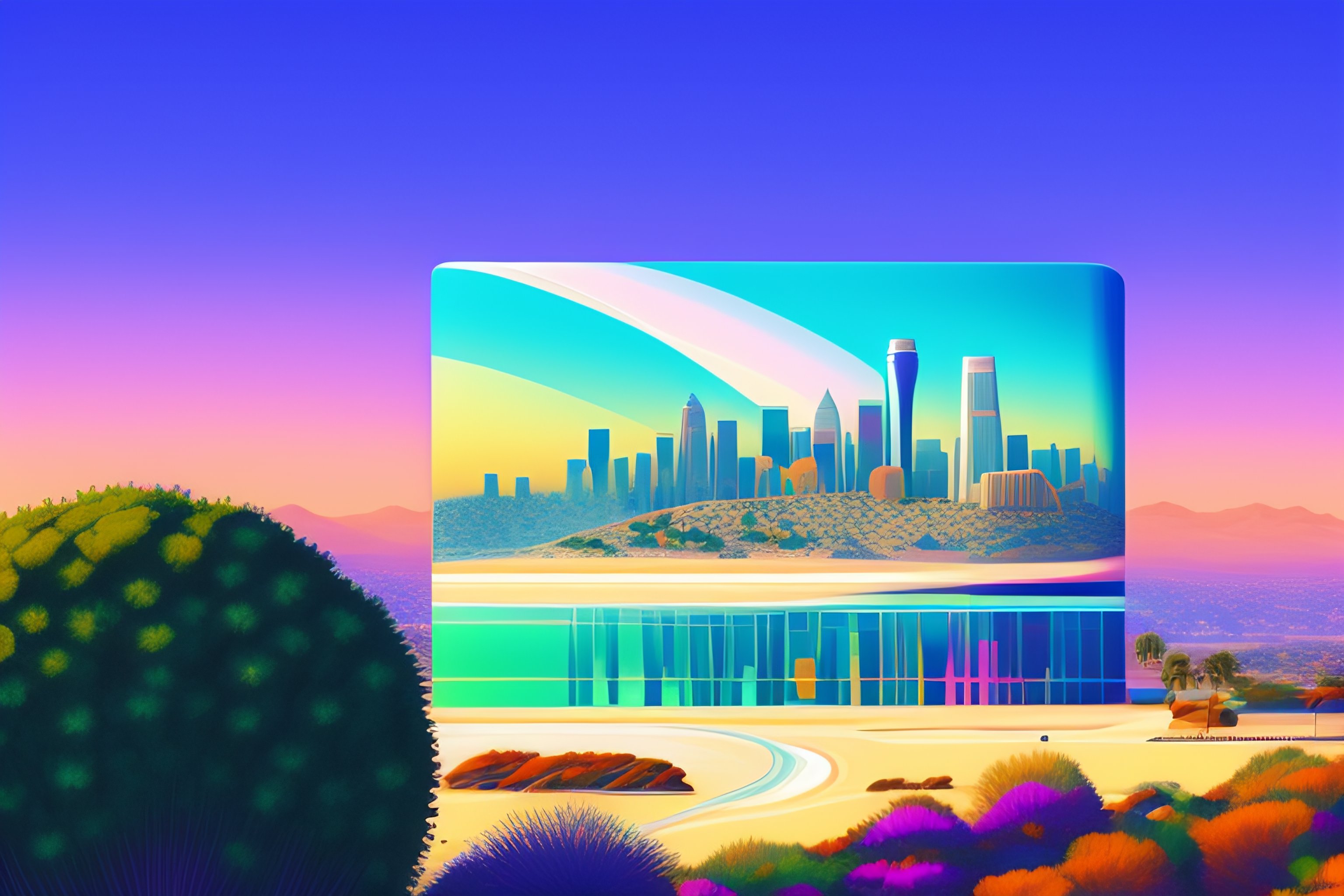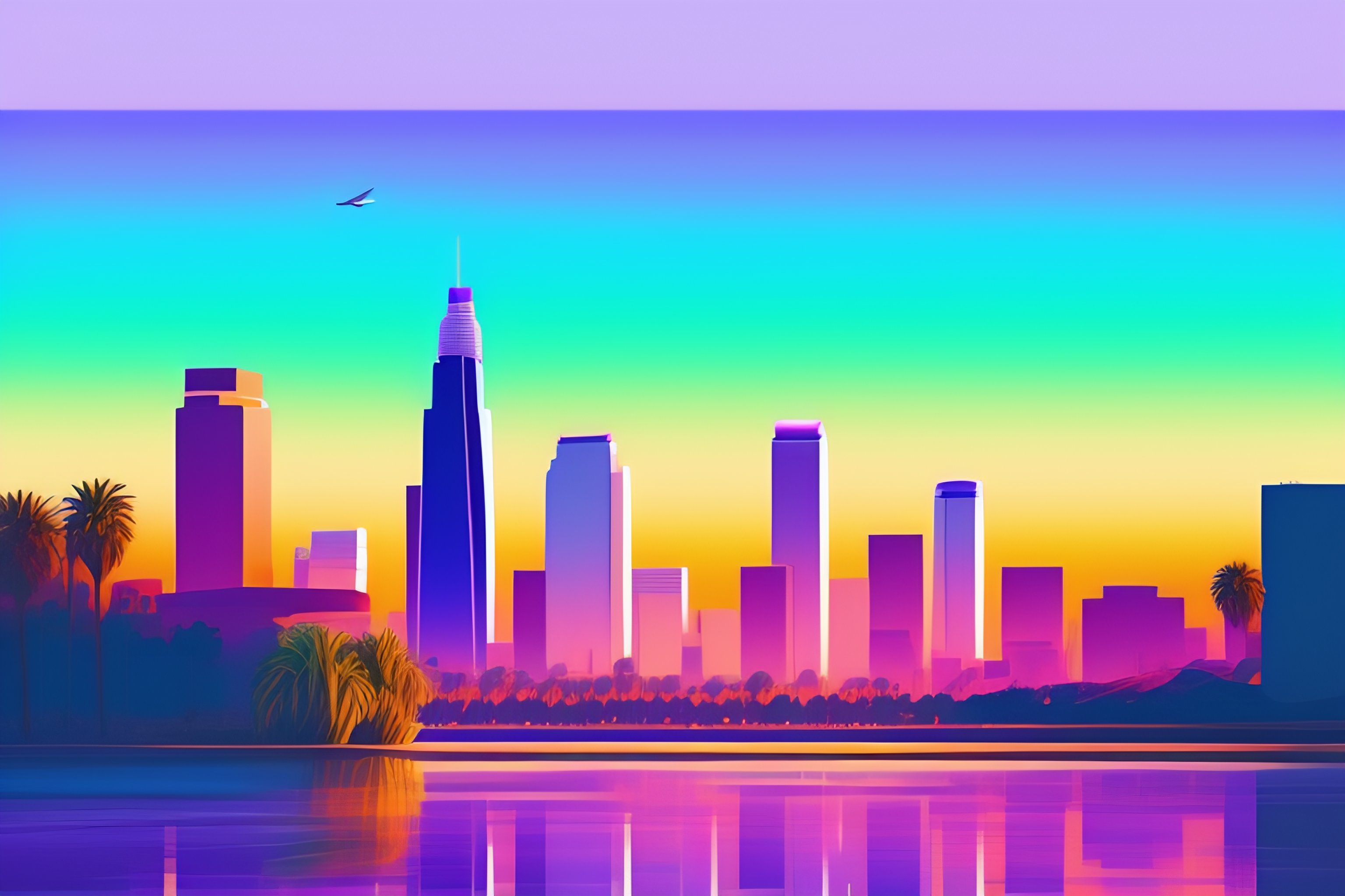 Los angeles landmark illustration in pastel colors