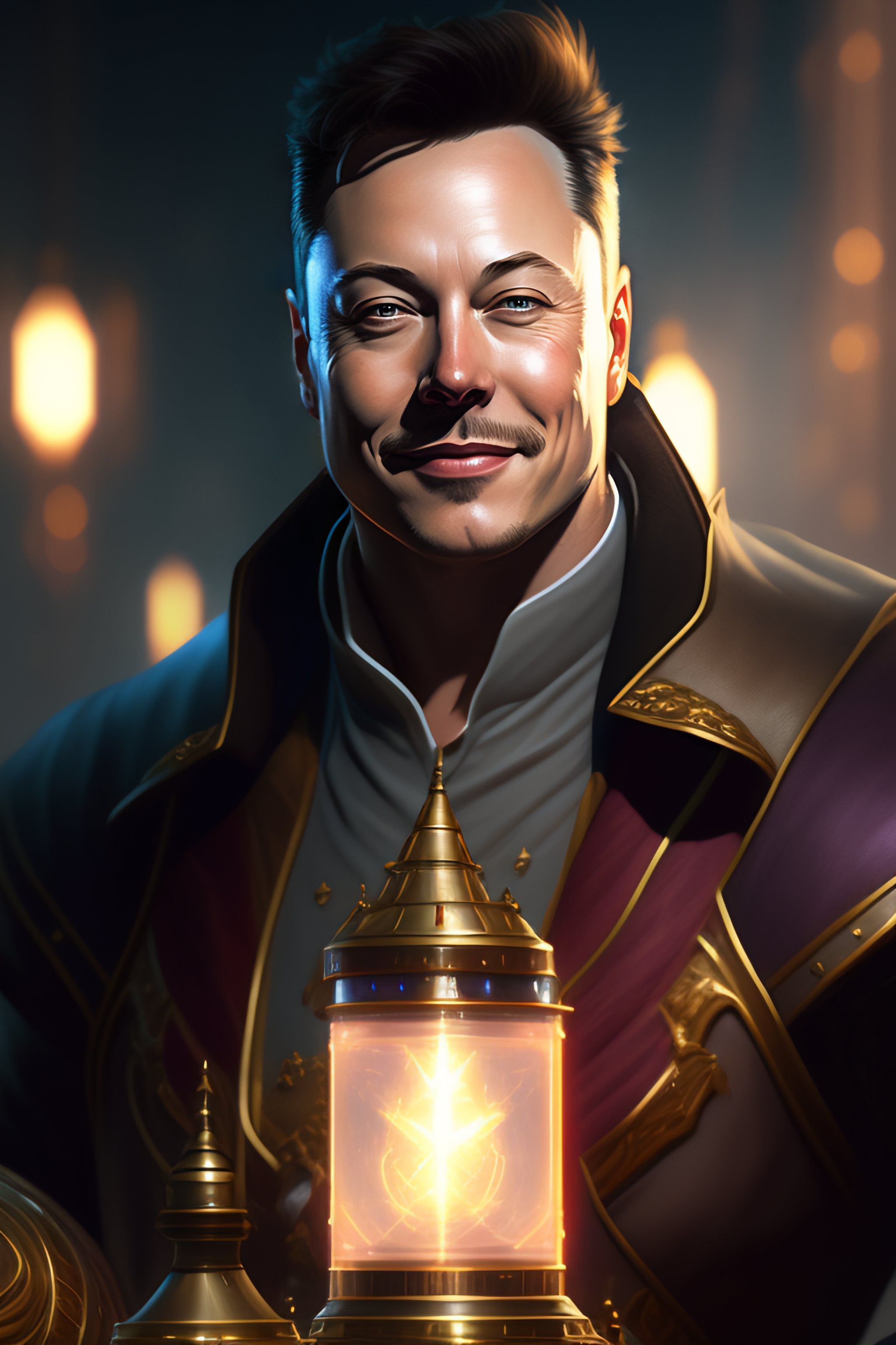 Elon musk staring at the camera smirking and laughing, magic the gathering artwork, d & d, fantasy, cinematic lighting, centered, symmetrical, highly detailed, digital painting, artstation, concept art, smooth, sharp focus, illustration, volumetric lighting, epic composition, 8 k, art by akihiko yoshida and greg rutkowski and craig mullins, heroic pose, oil painting, cgsociety, magic lab background