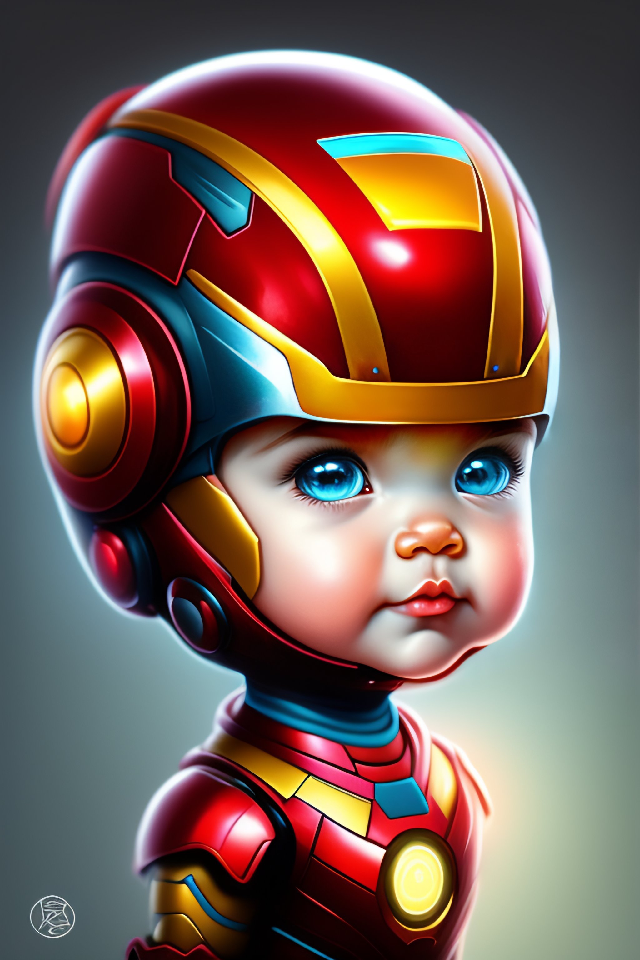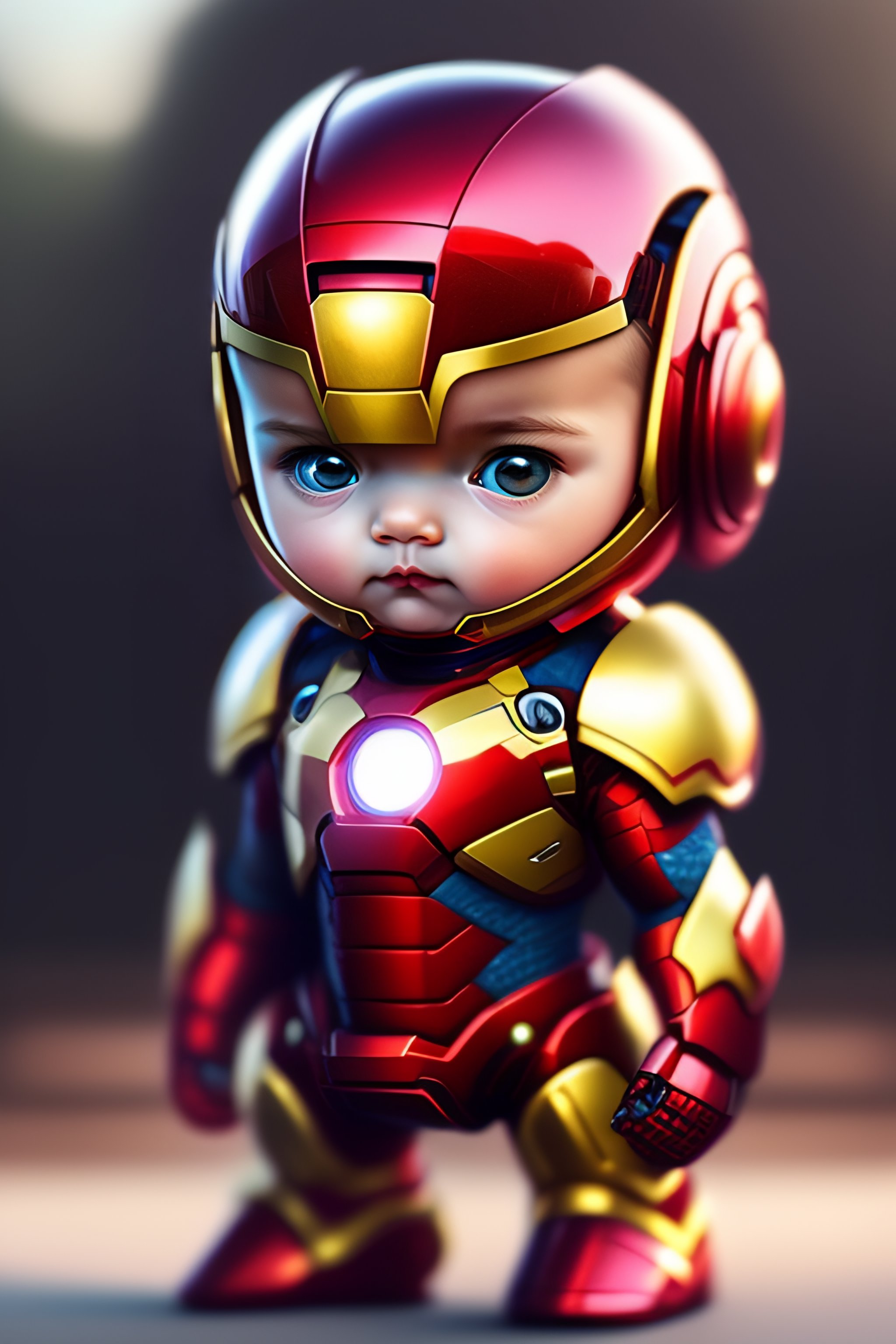Cute and adorable cartoon ironman baby, fantasy, dreamlike, surrealism, super cute, trending on artstation
