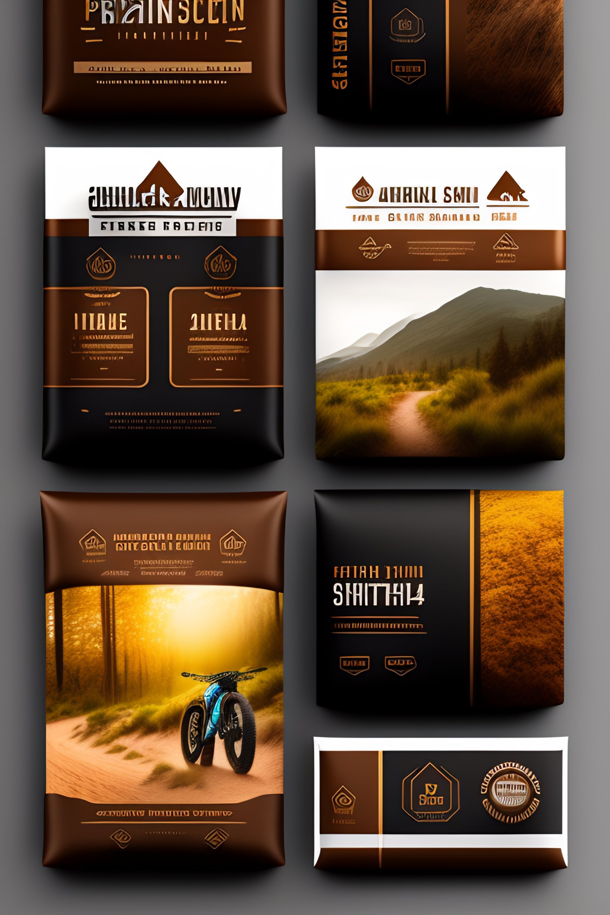 Package design concept for an offroad bike company, outdoors themed, earth tone colors, high definition