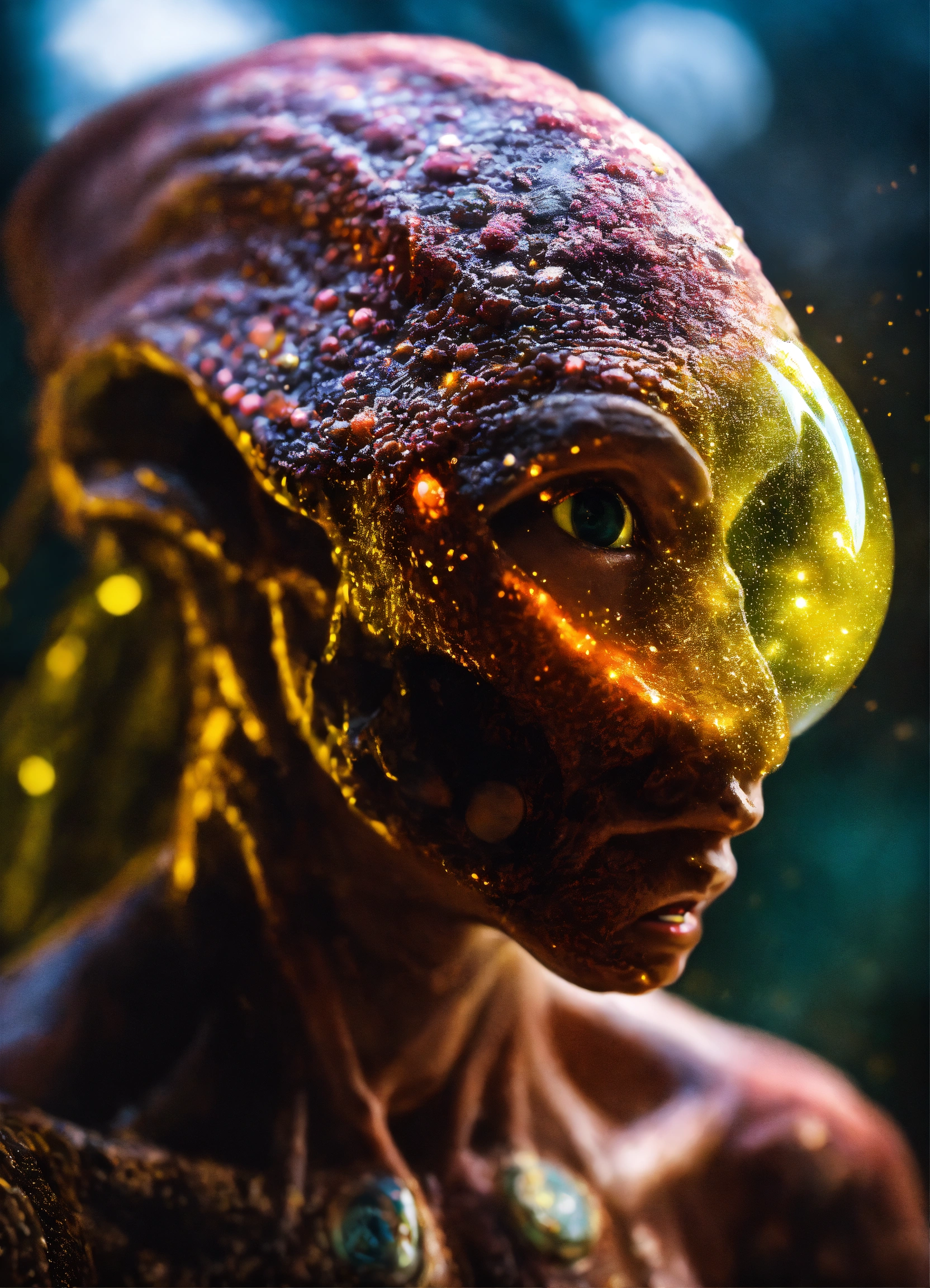&& alien creatures close-up portrait professional portrait photography richard avadon martin schoeller mark mann steve mccurry bokeh studio lighting nikon lens dslr 64 megapixels sharp focus striking hyper real painting magical particles particle system is 2 light dust god rays celestial complex background strongly lit mist vapor fog