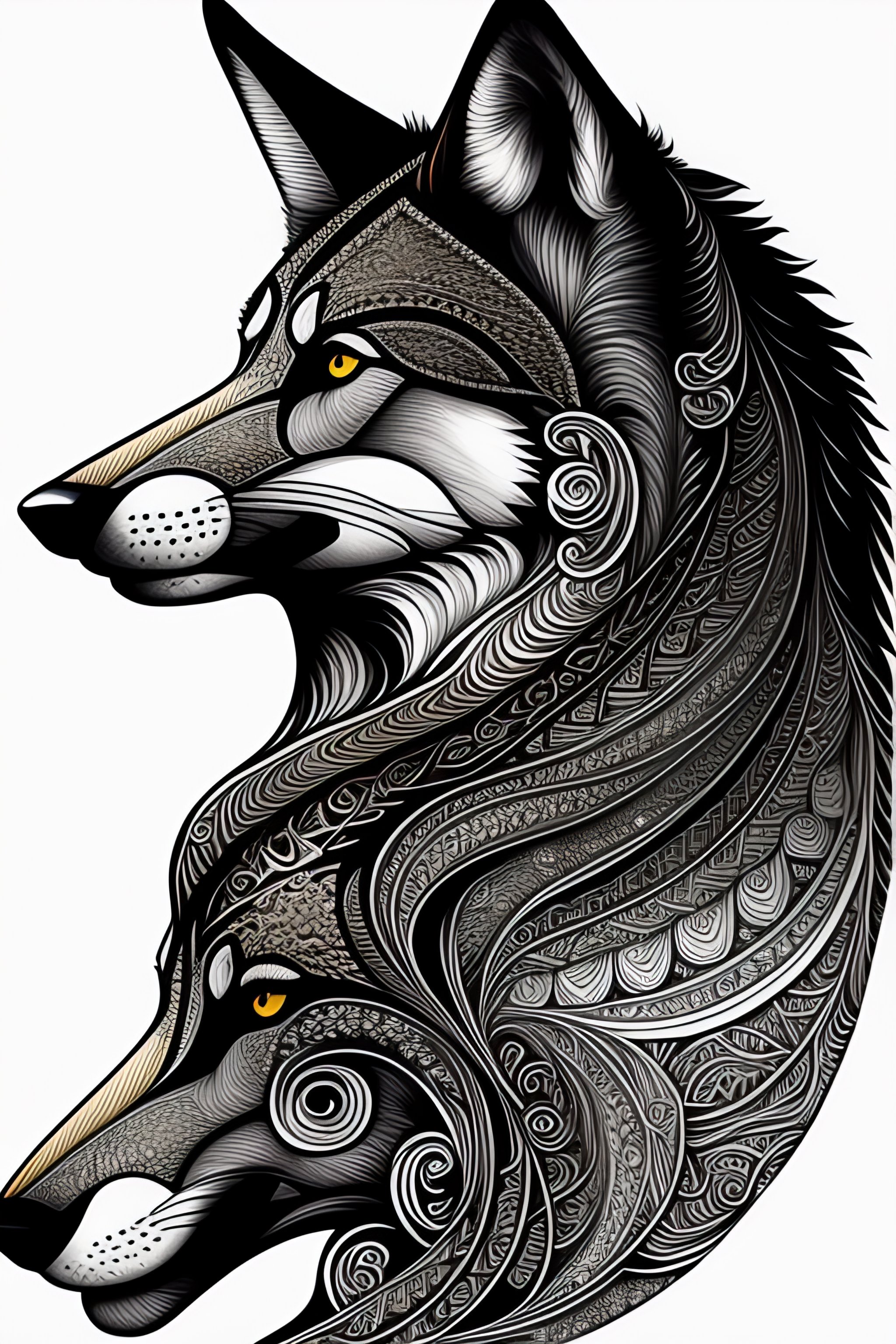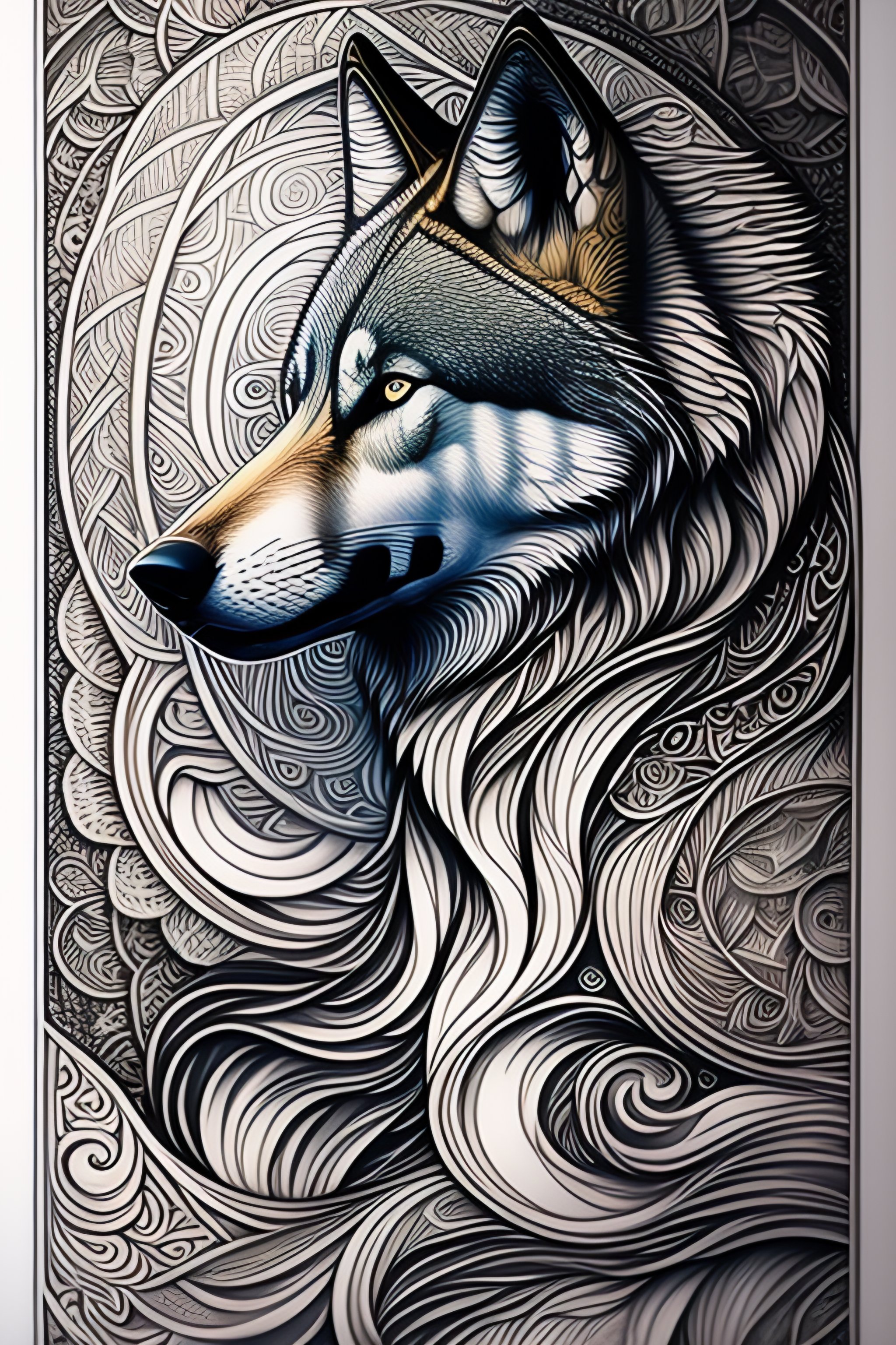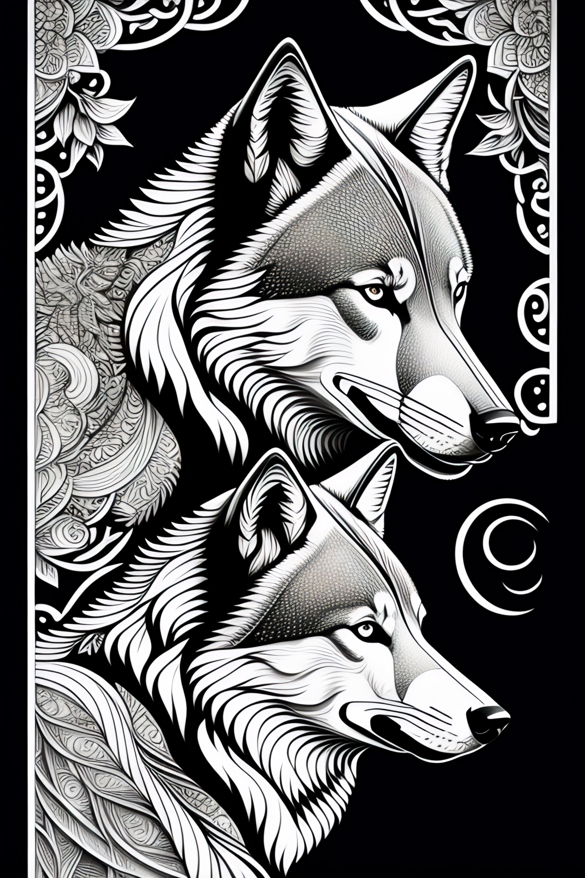 Wolf, line drawing, clean clear lines, coloring book style, matte, intricate details, asian style art