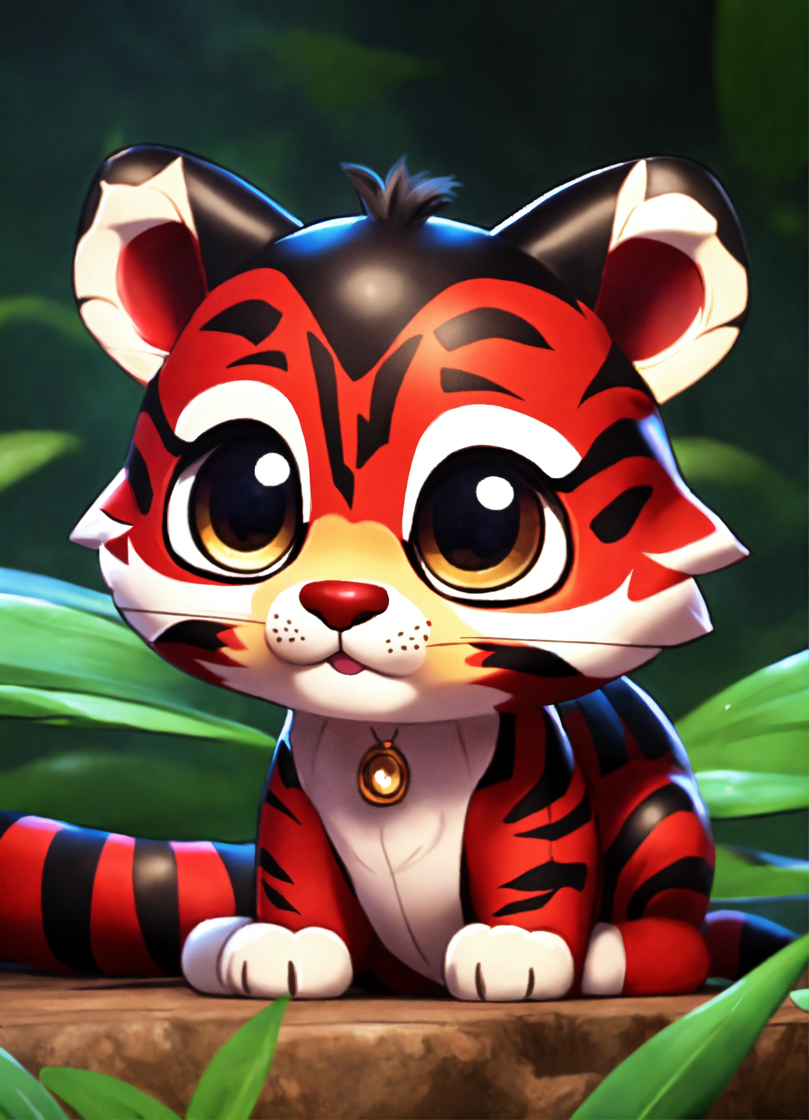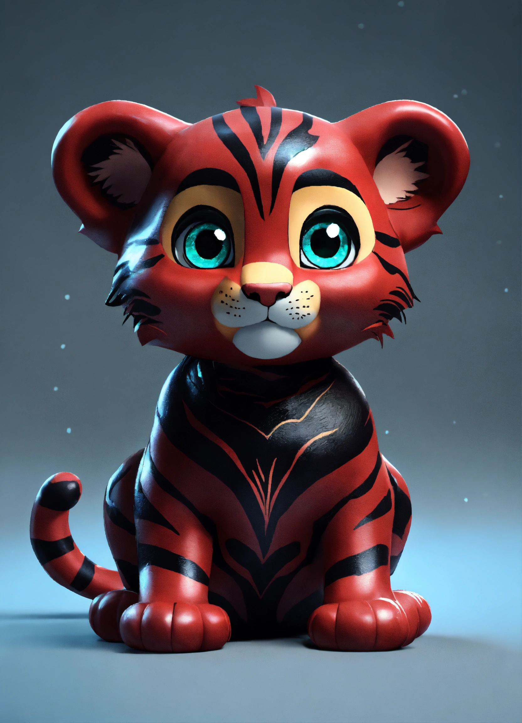 A cute dark red and black baby tiger with big eyes