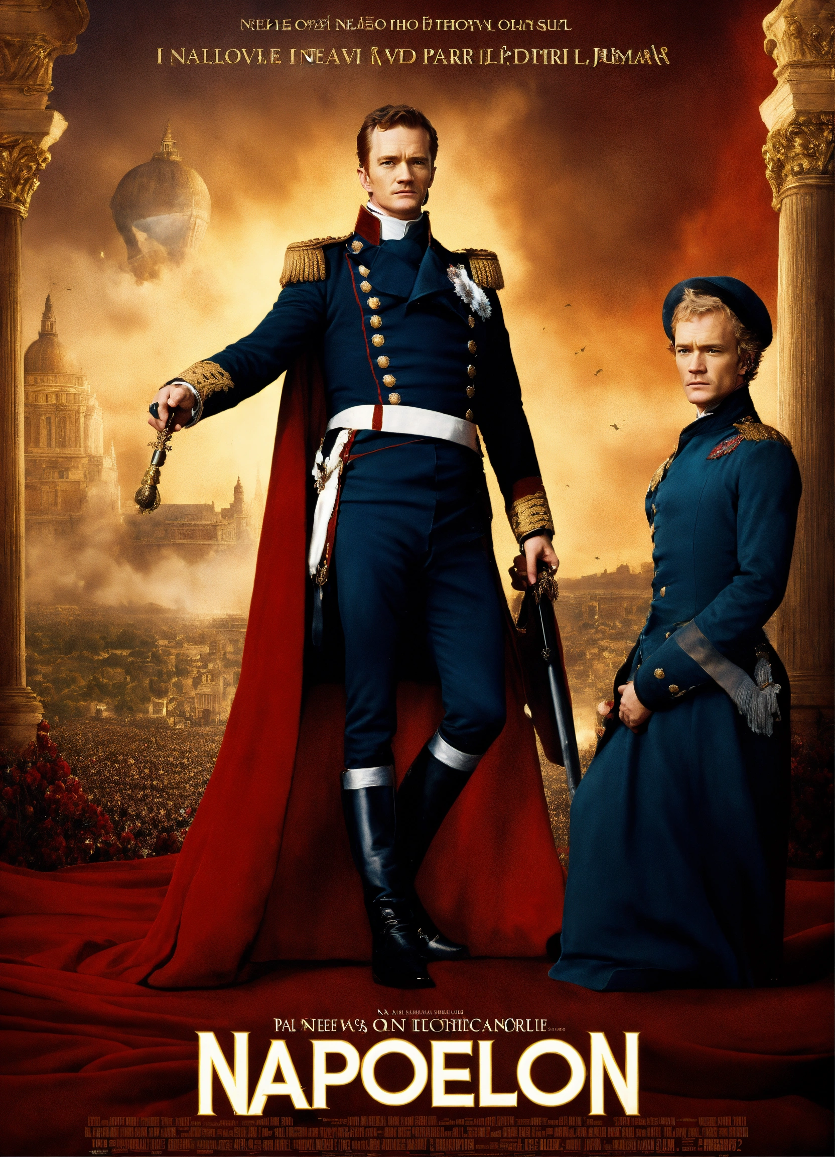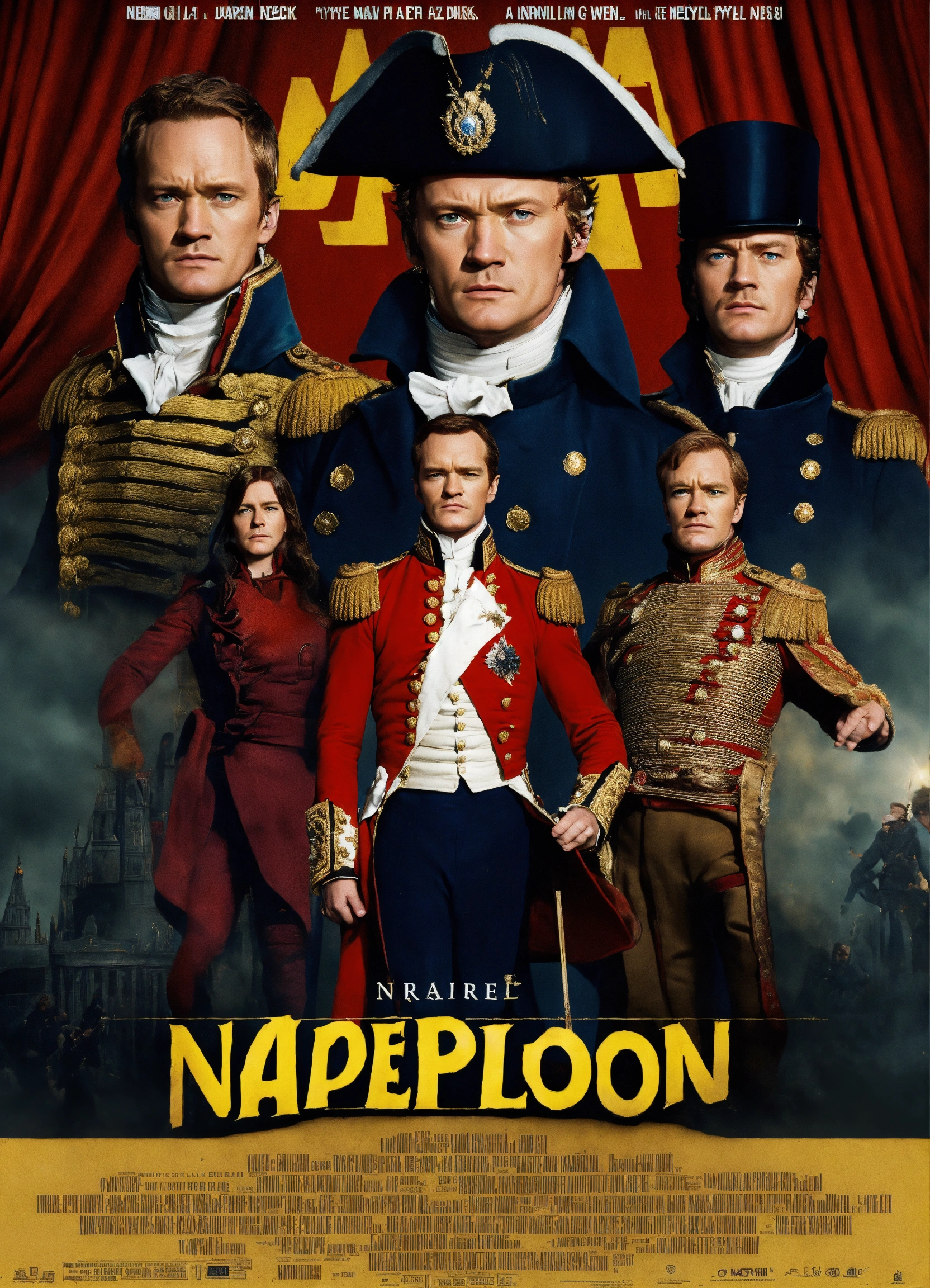 A movie poster about napoleon starring neil patrick harris and judy dench in the style of a marvel movie