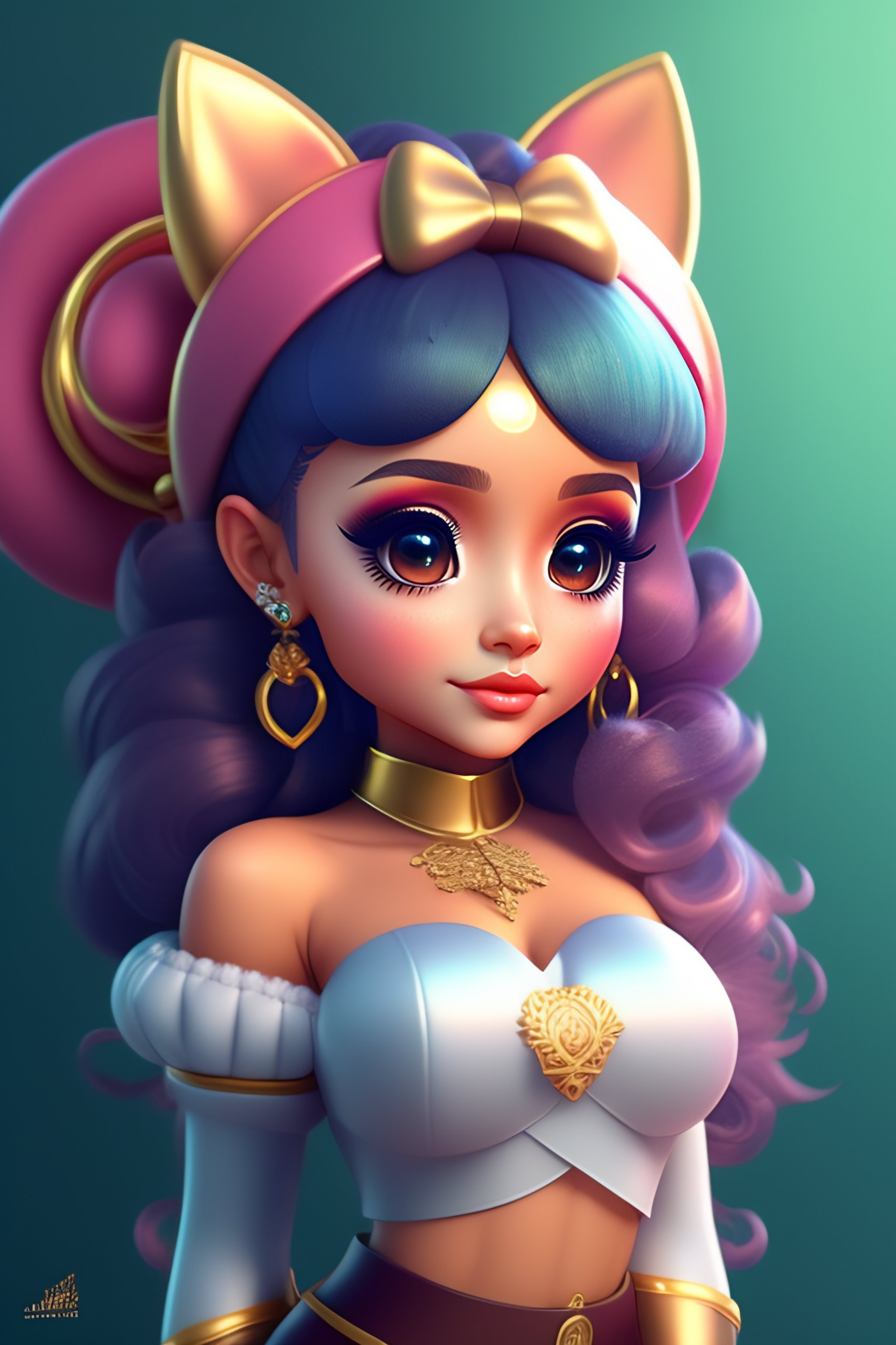 Cute and adorable cartoon ariana grande, fantasy, dreamlike, surrealism, super cute, trending on artstation