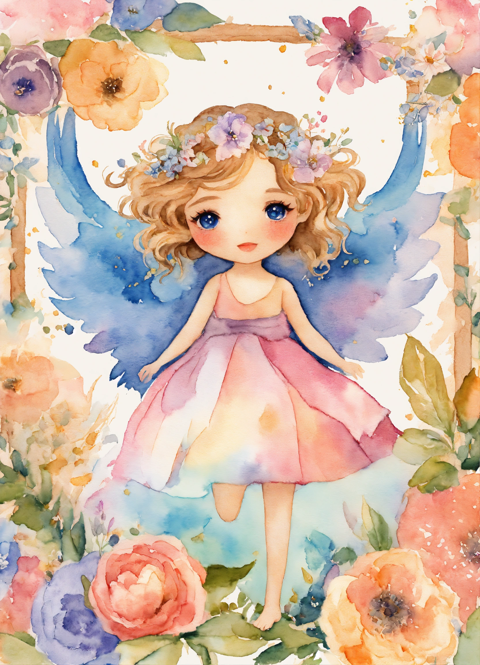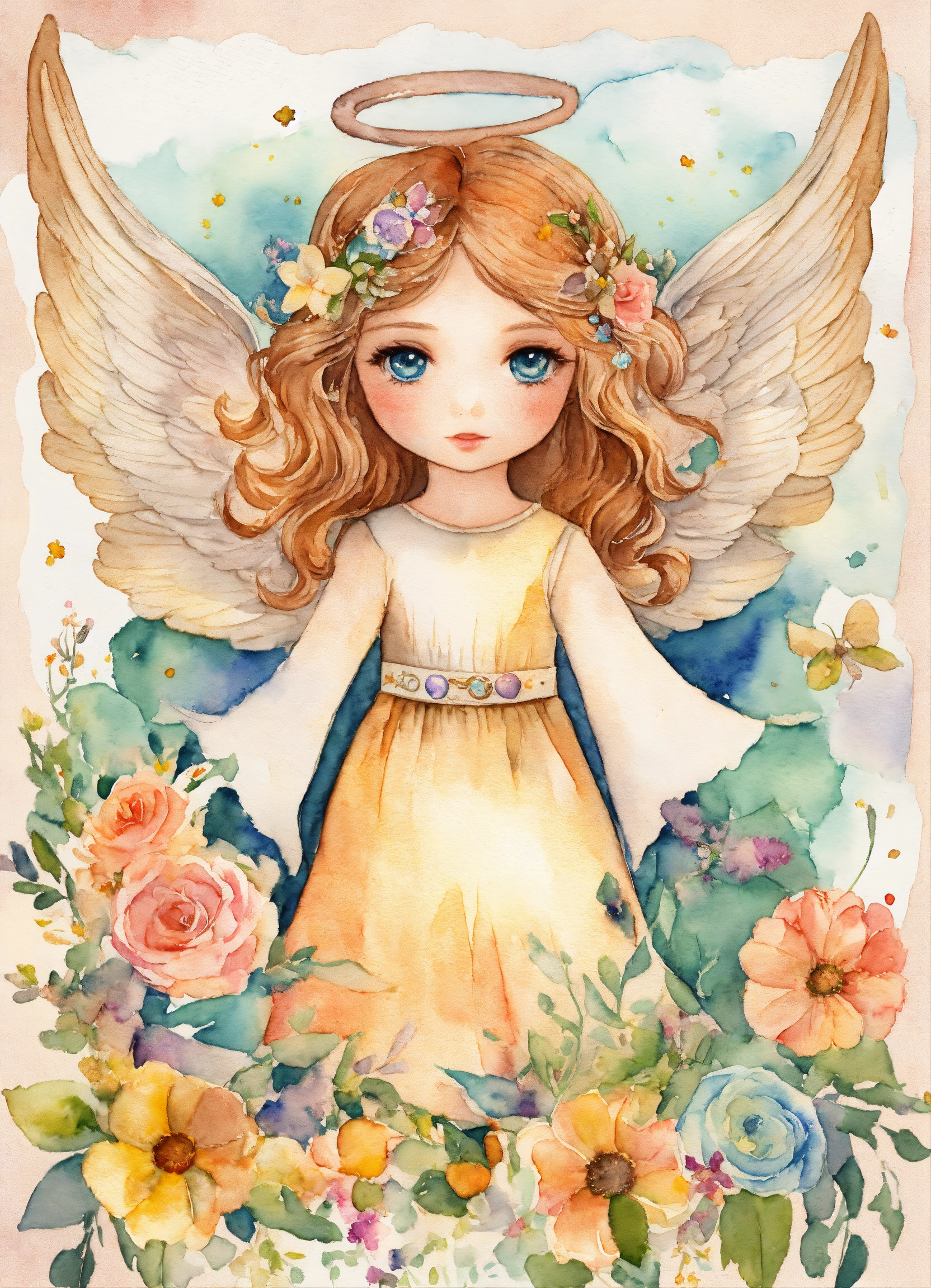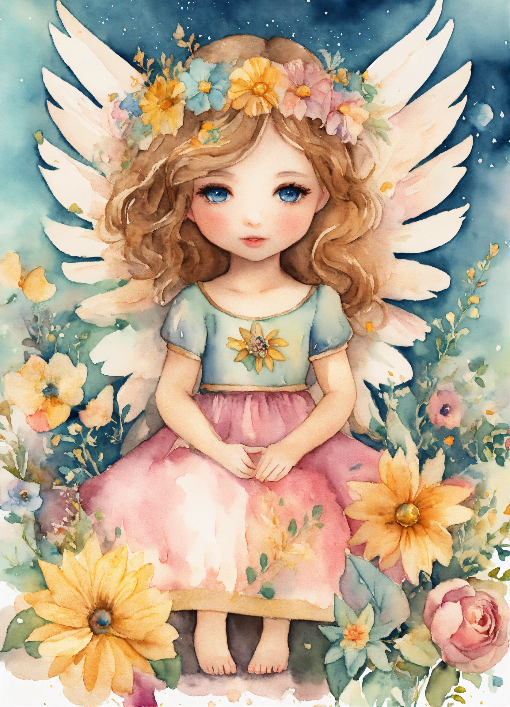 Whimsical creativ angel girl, watercolor clipart, fairytale clipart png, fantasy scrapbooking, fantasy art clipart, paper craft - junk journal, scrapbooking
