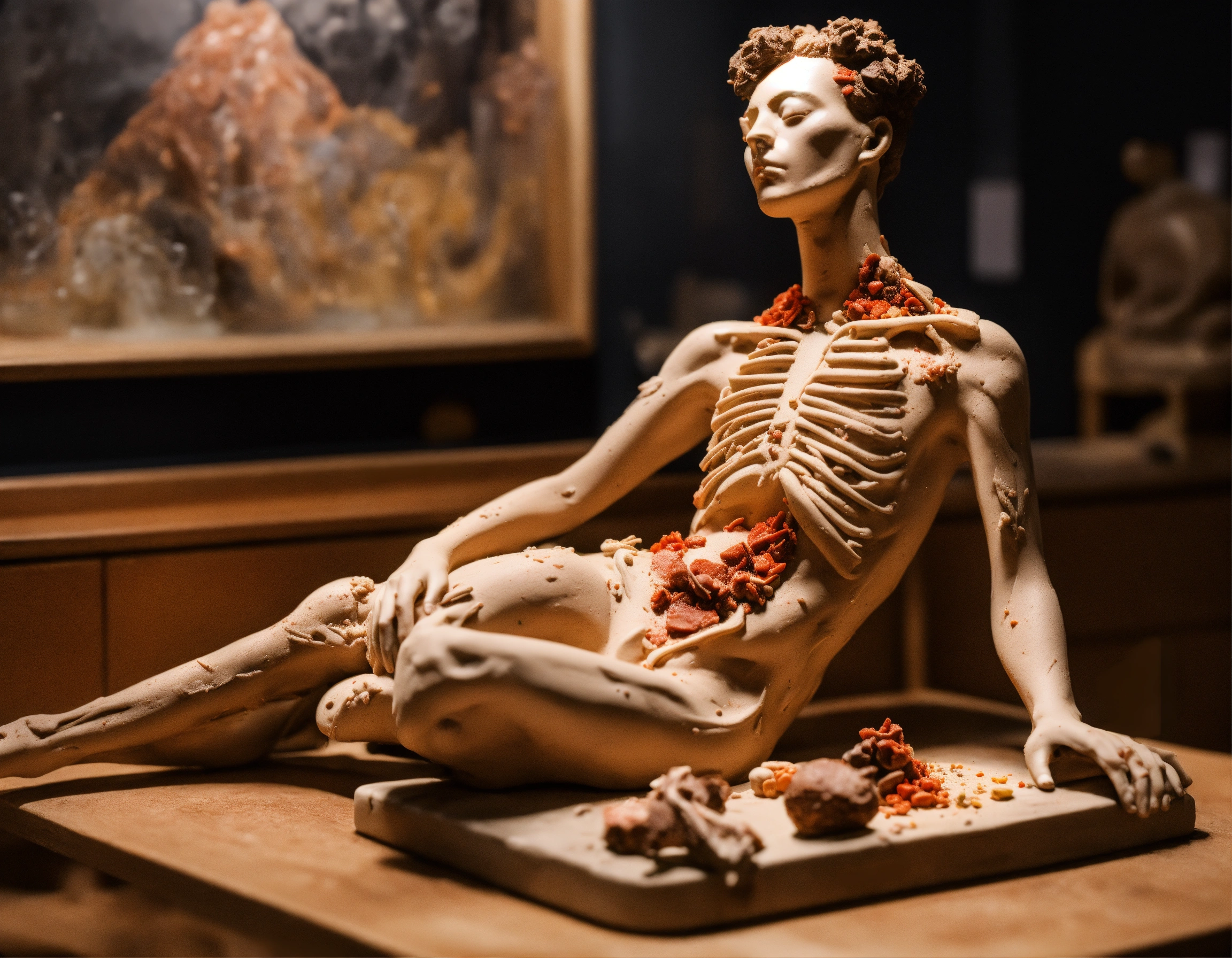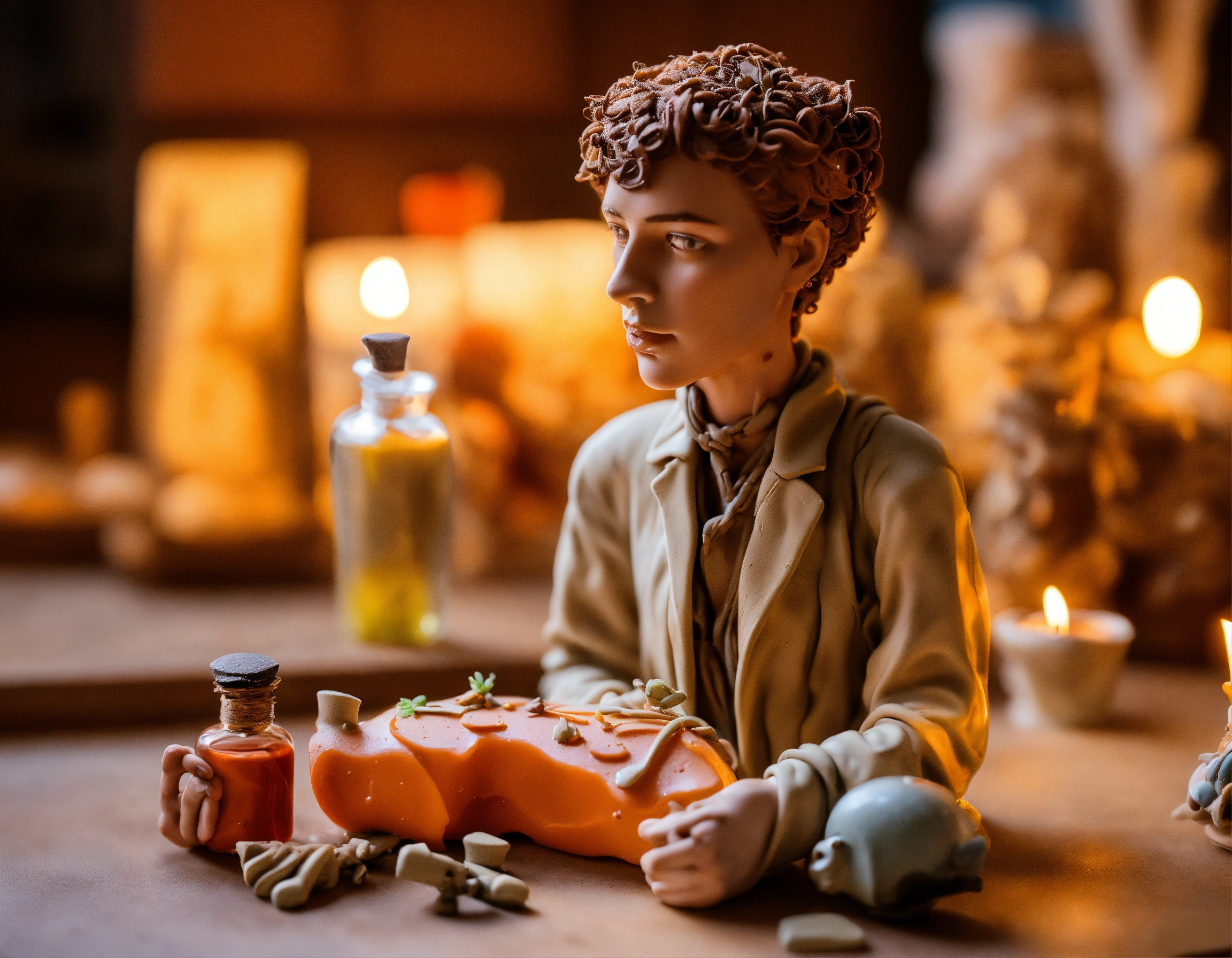 Hand-made modeling clay work. flesh and bones immersive- experience, inspired scent bottle, egon schiele the painter inspiration
