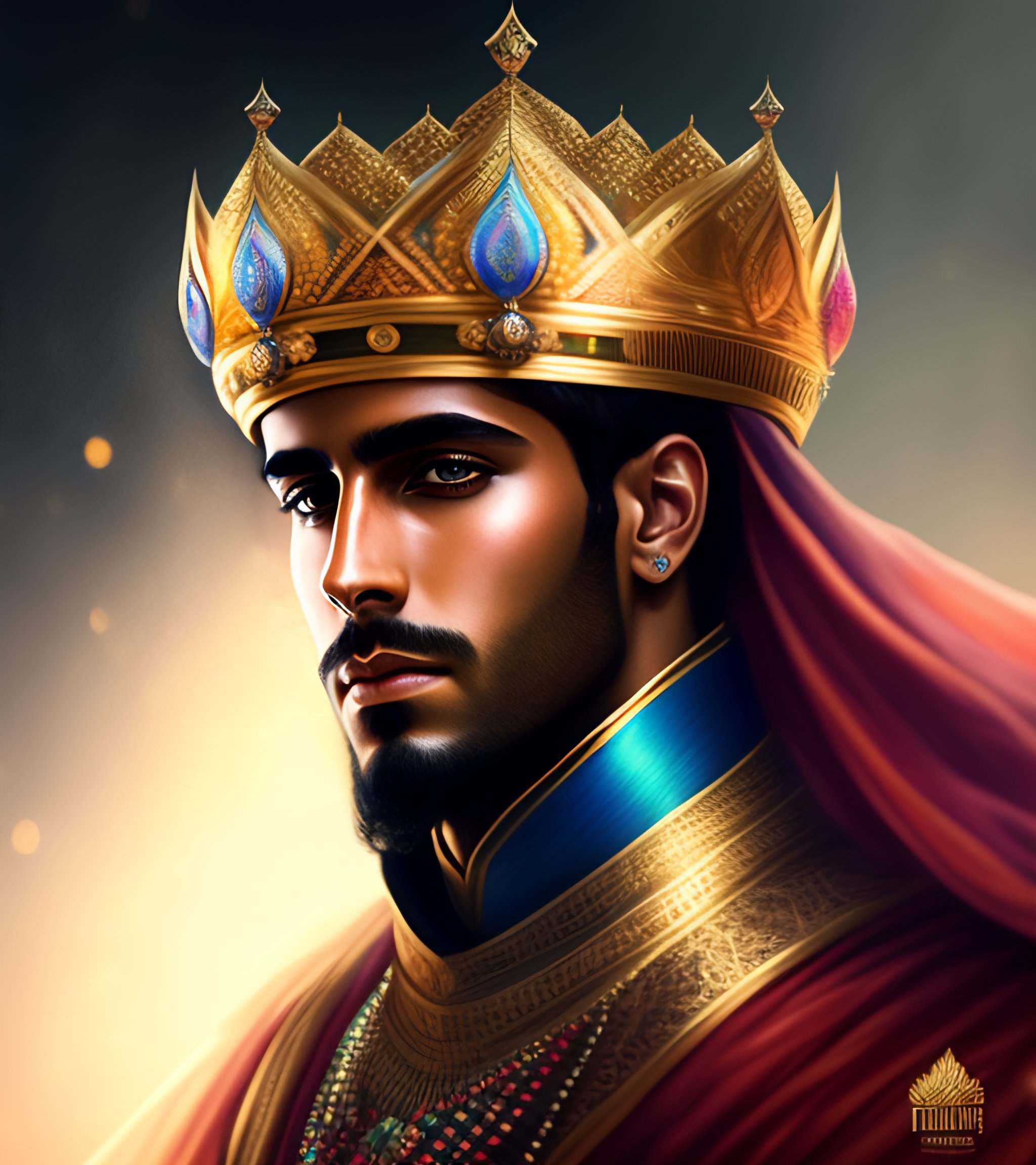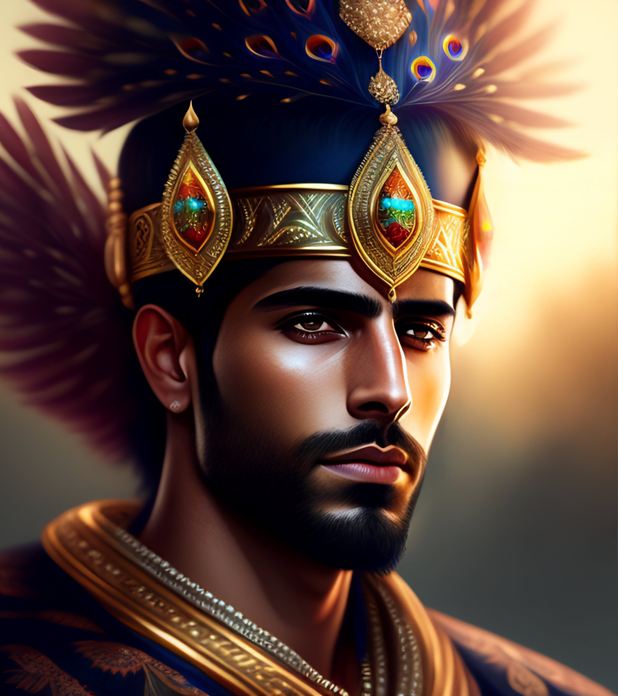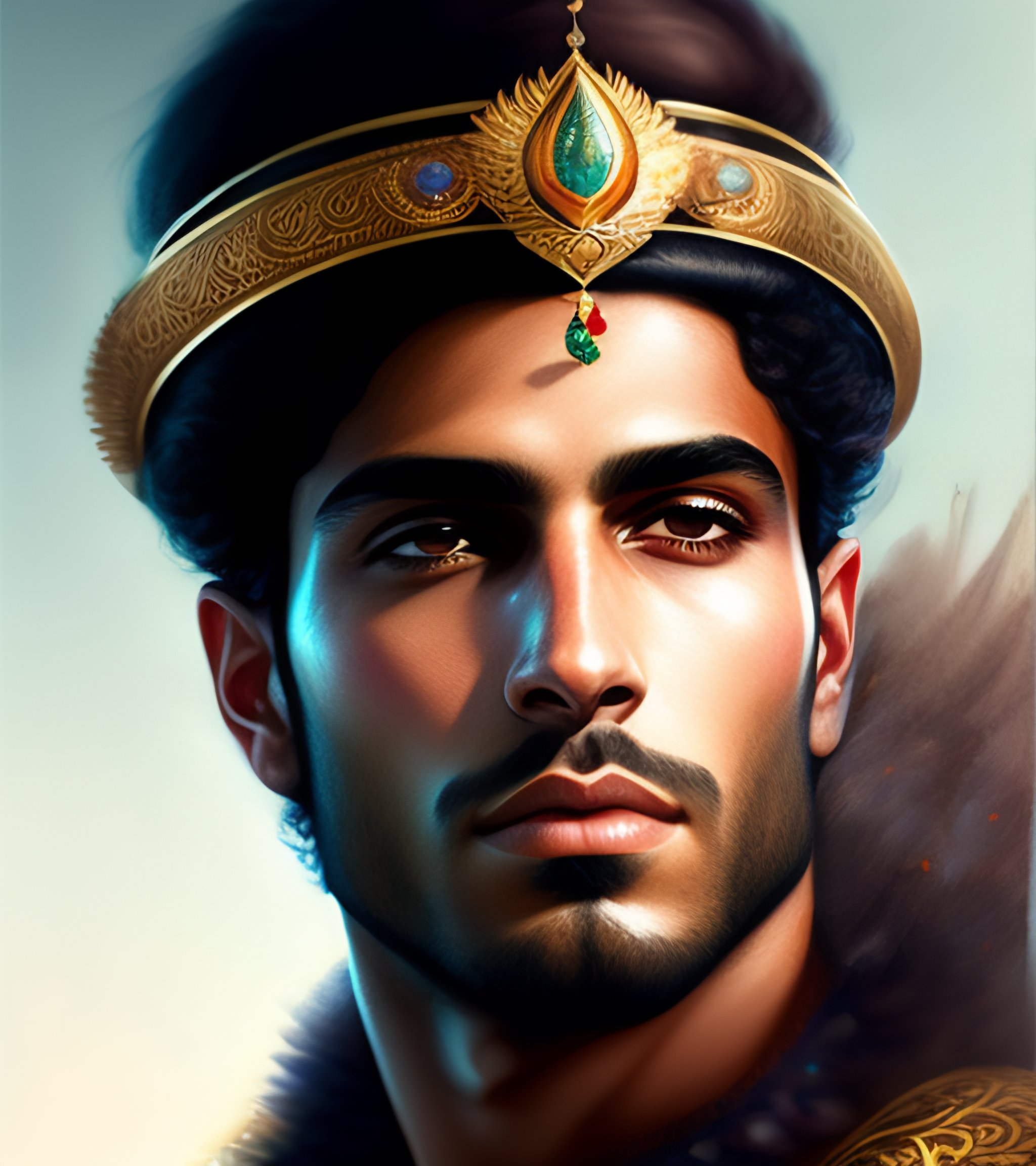 Beautiful portrait of an attractive arab prince wearing a crown made of peacock feathers, dramatic lighting, intricate, wild, highly detailed, digital painting, concept art, smooth, sharp focus, illustration, exotic