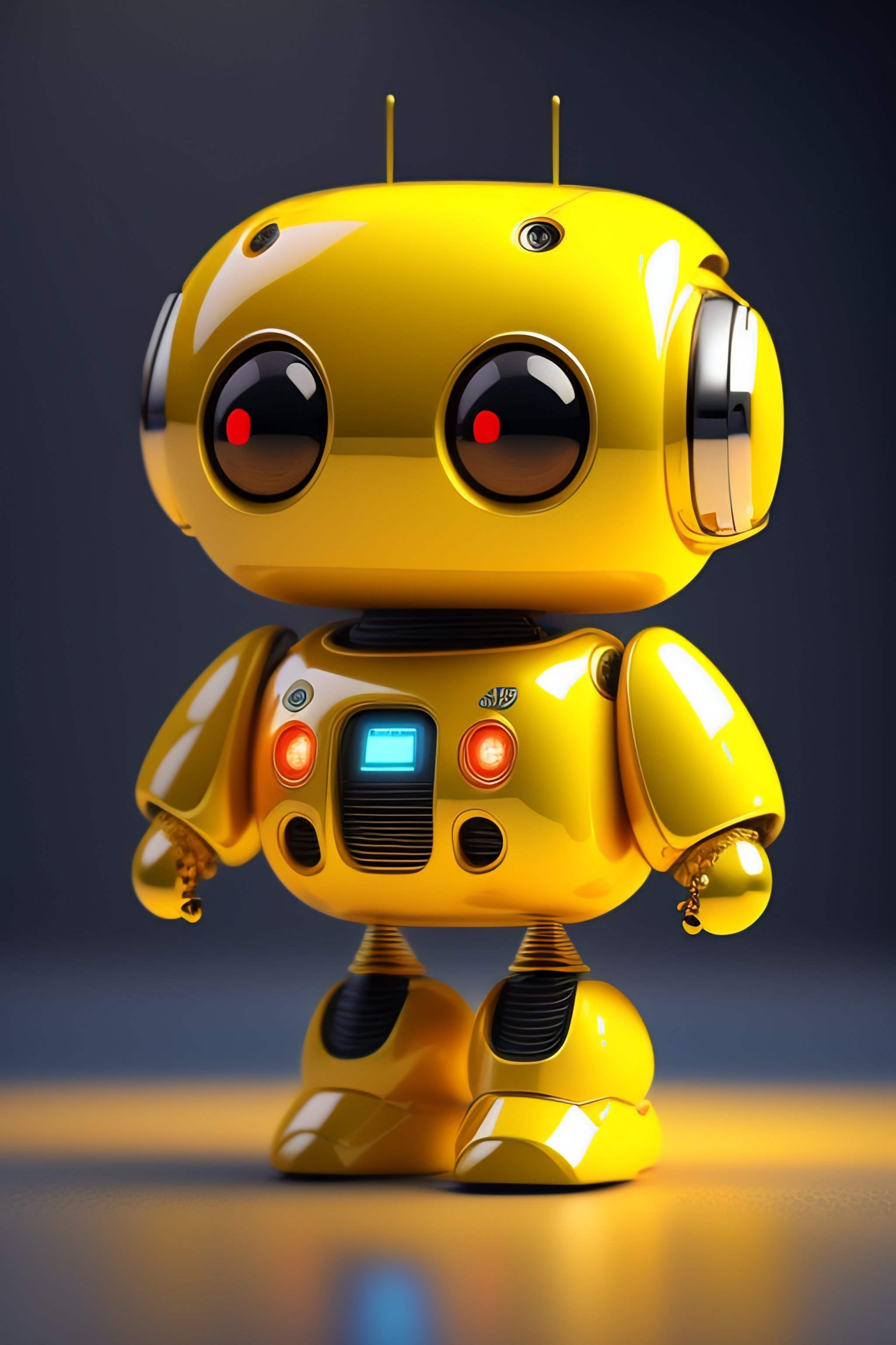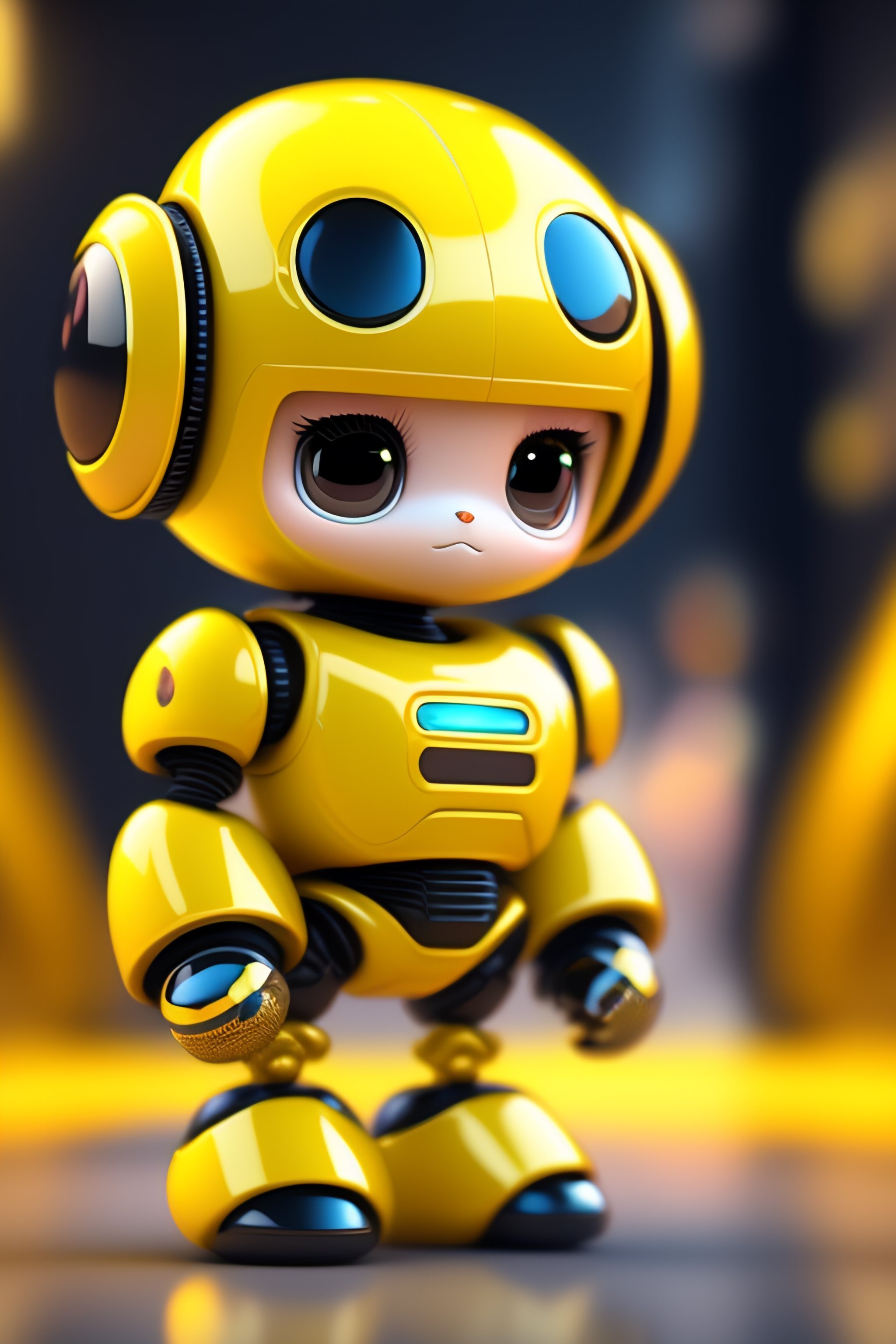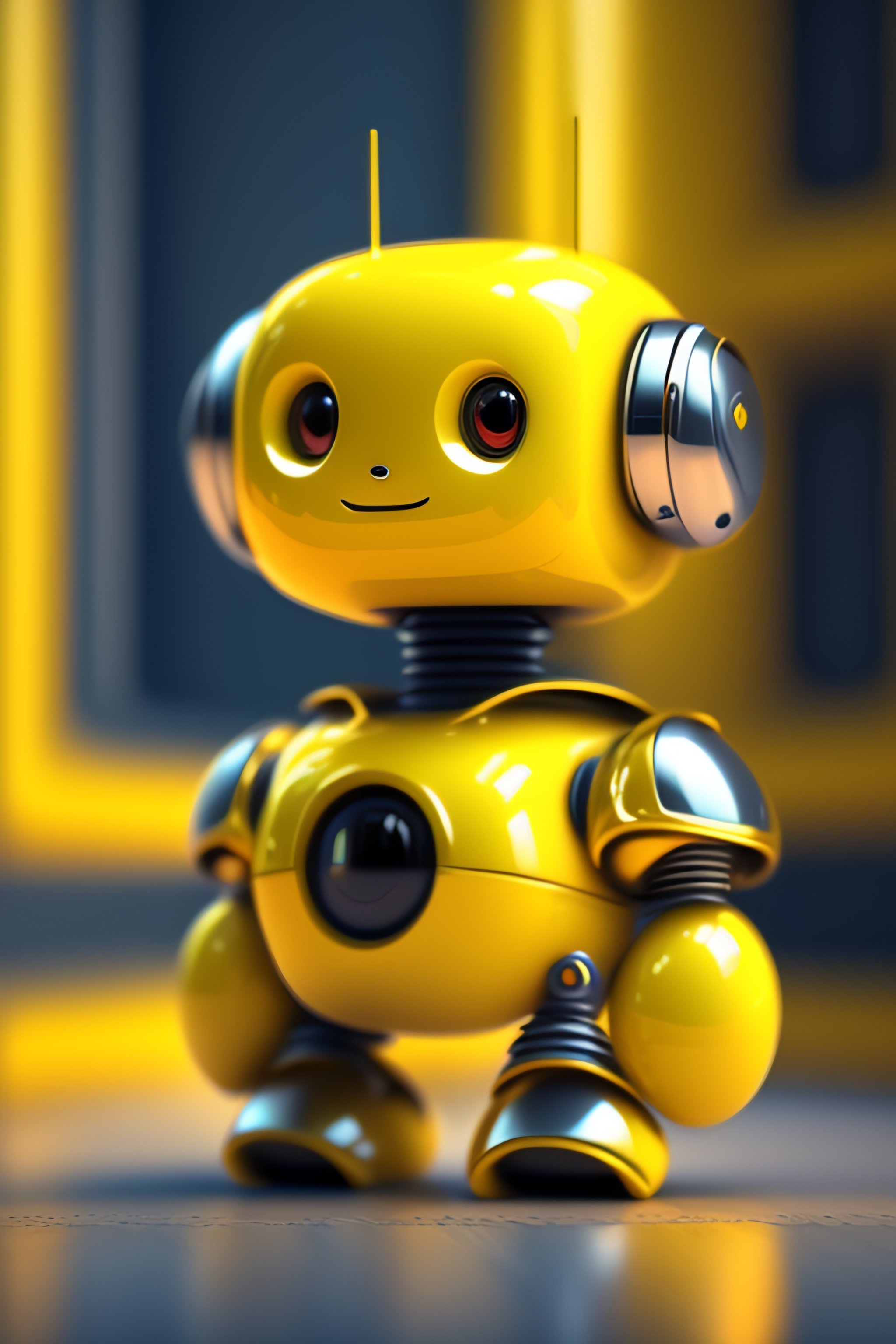Cute baby robot in a bright yellow room