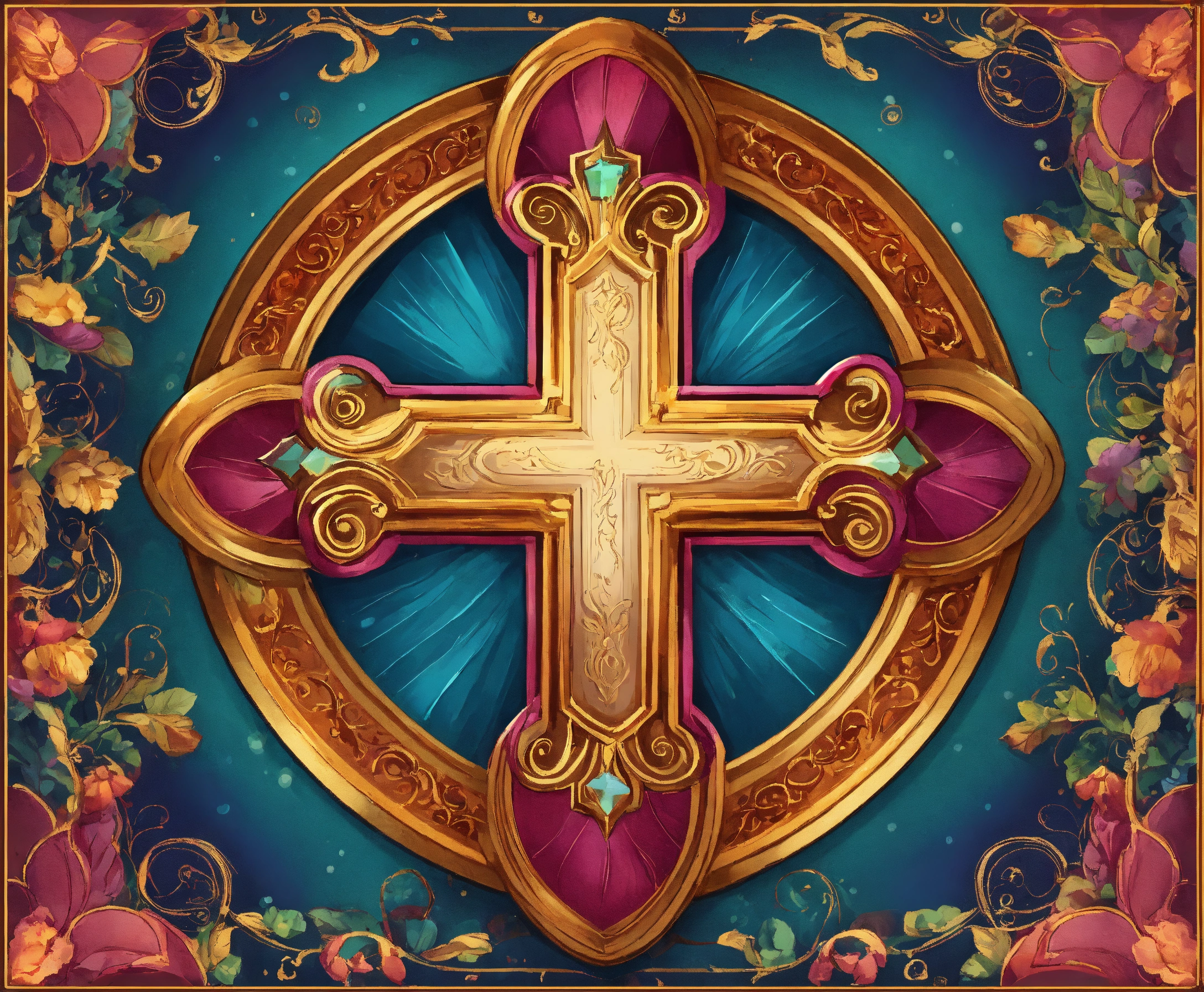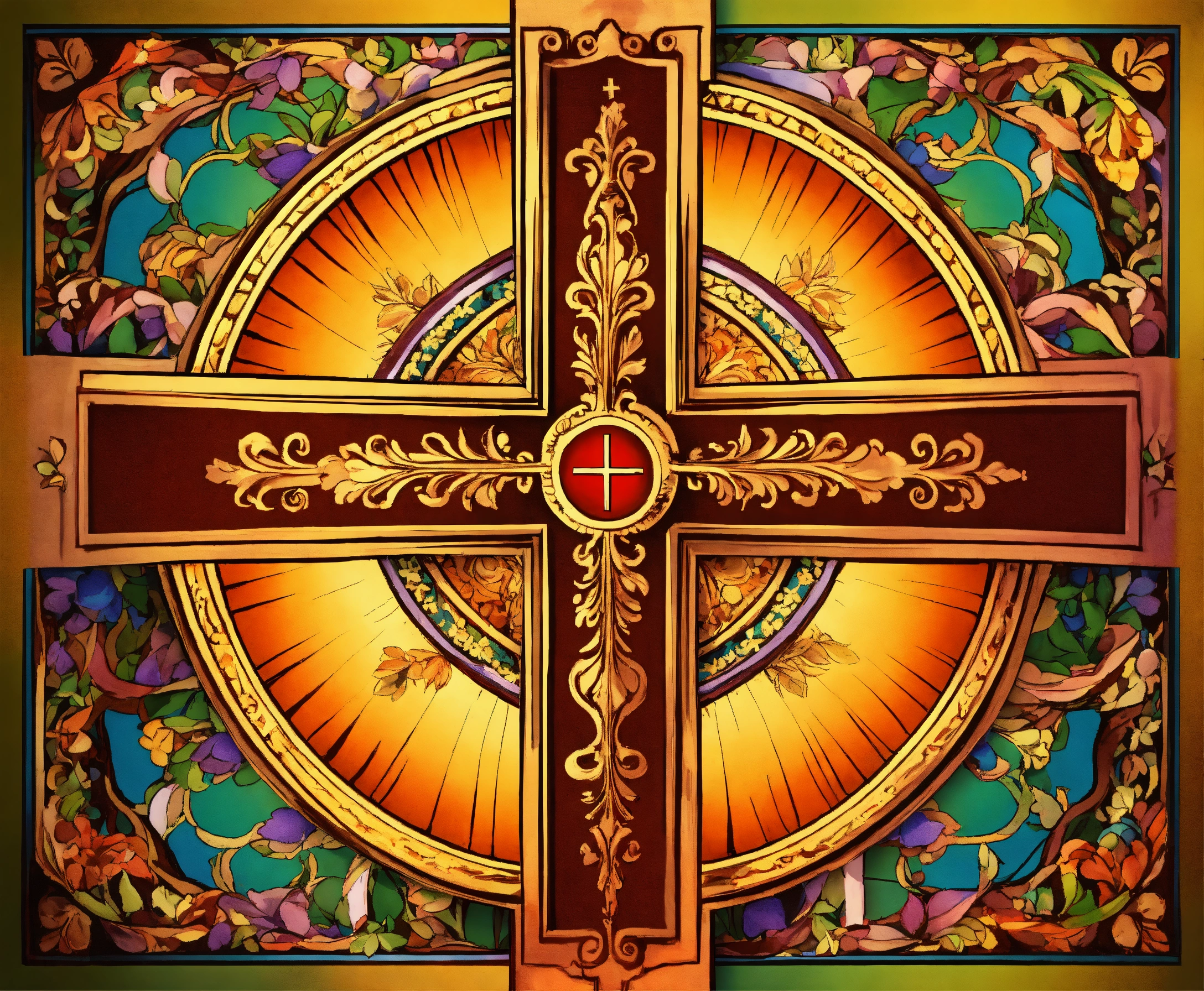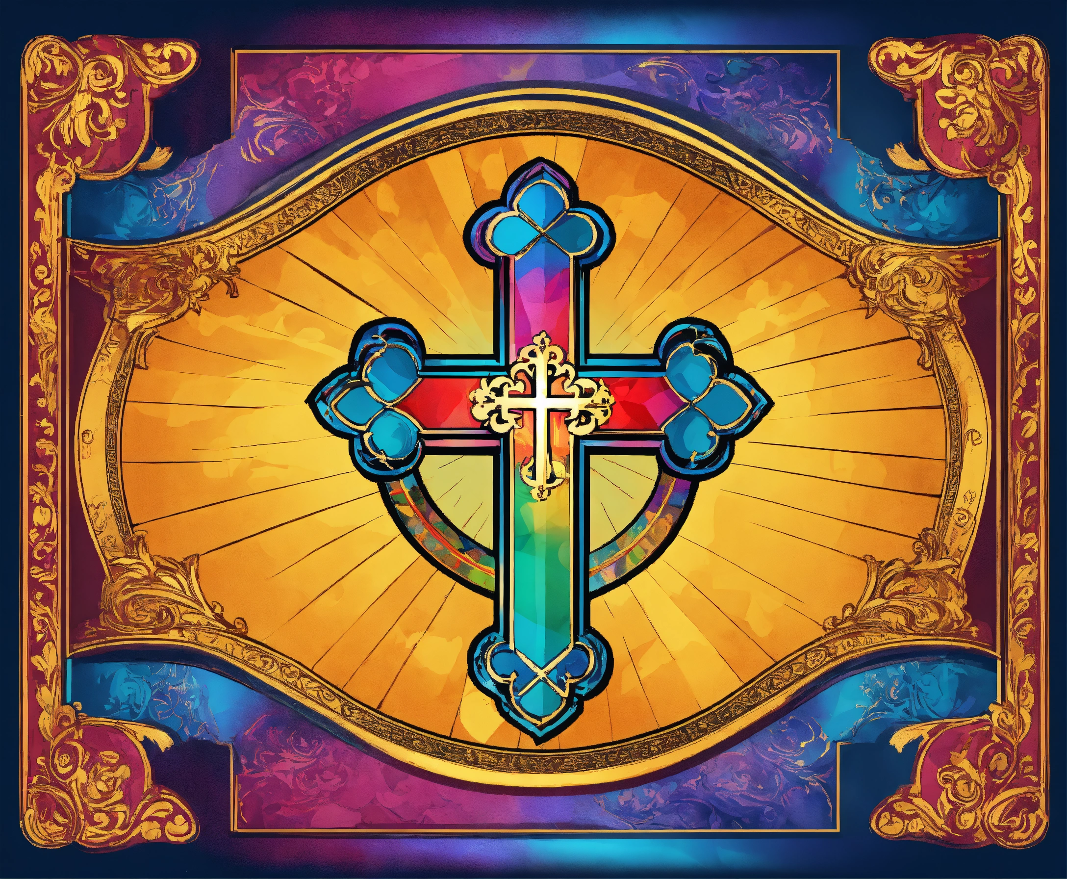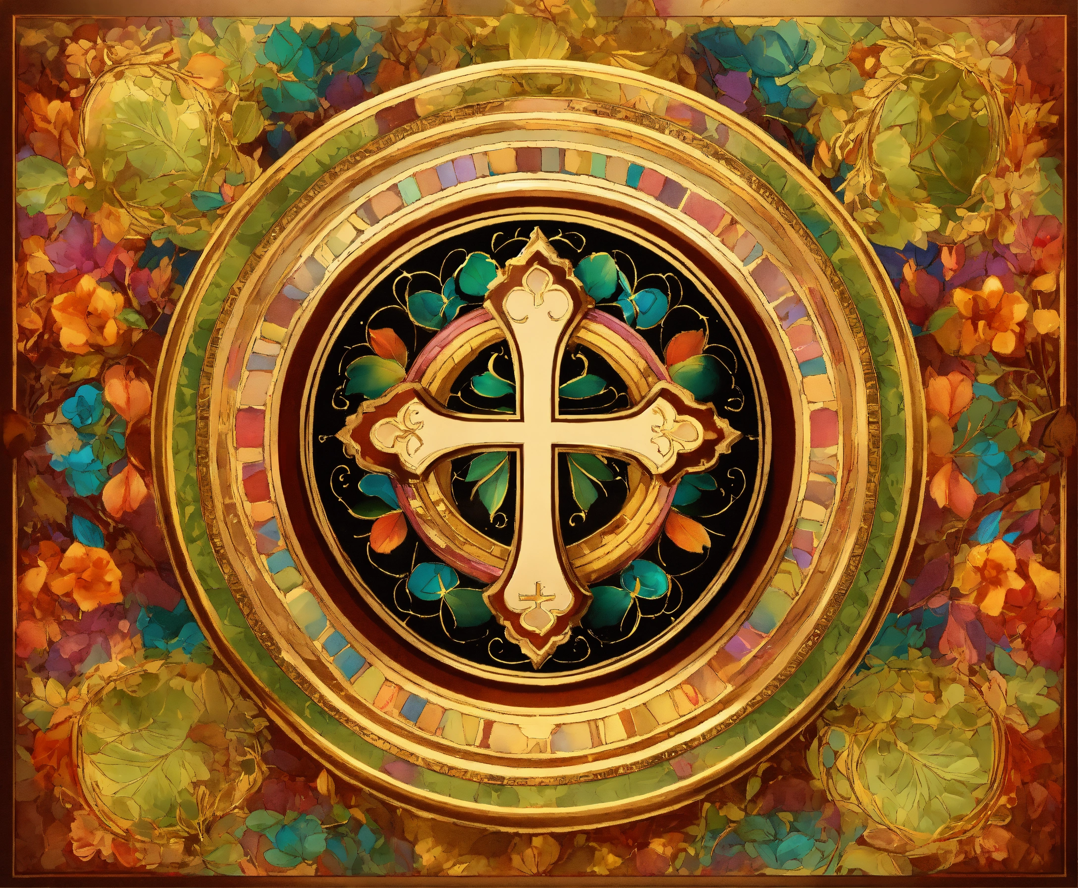 Detailed religious background and a blank label in the center a small cross in the right bottom corner of the label colorful bright beautiful