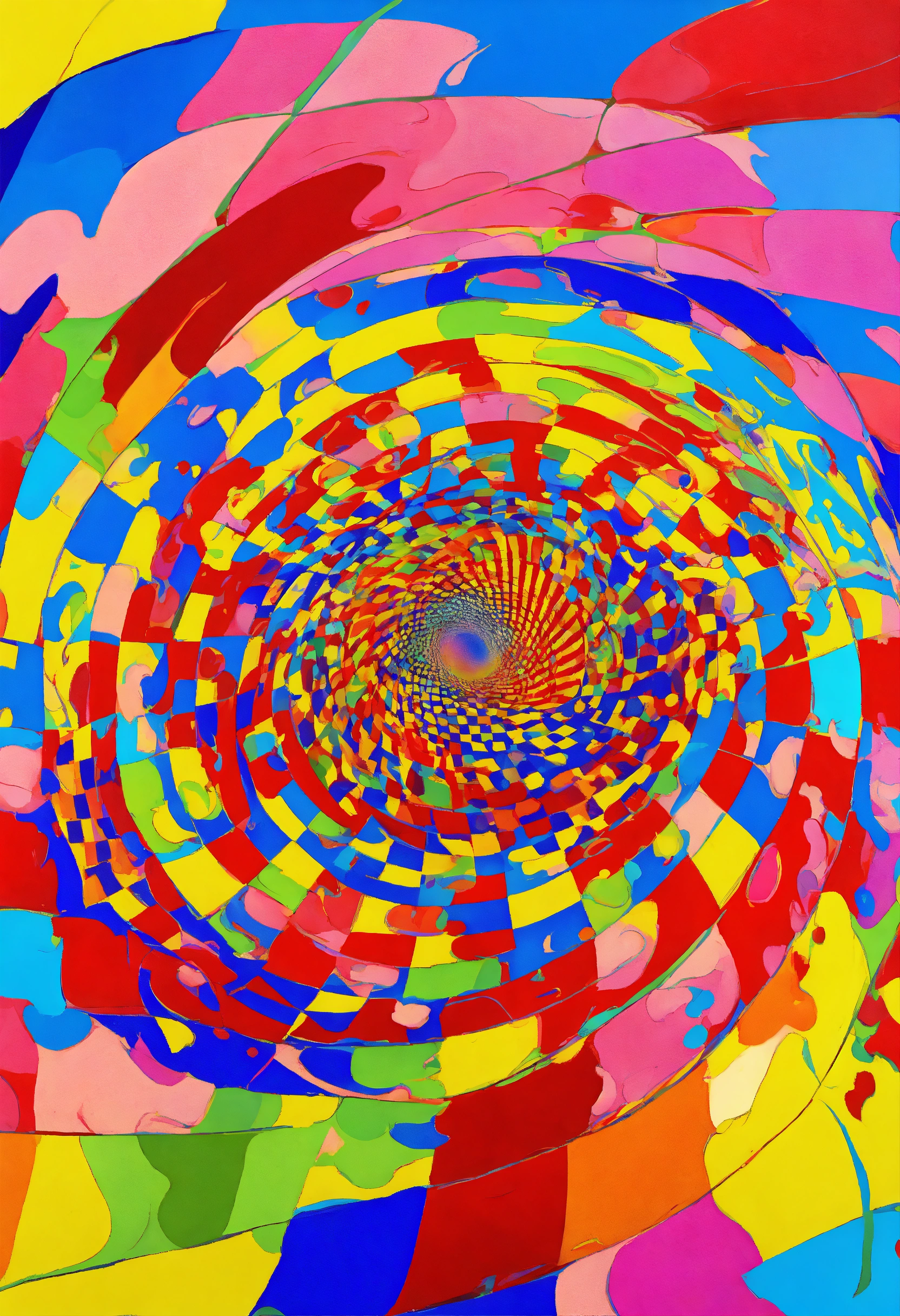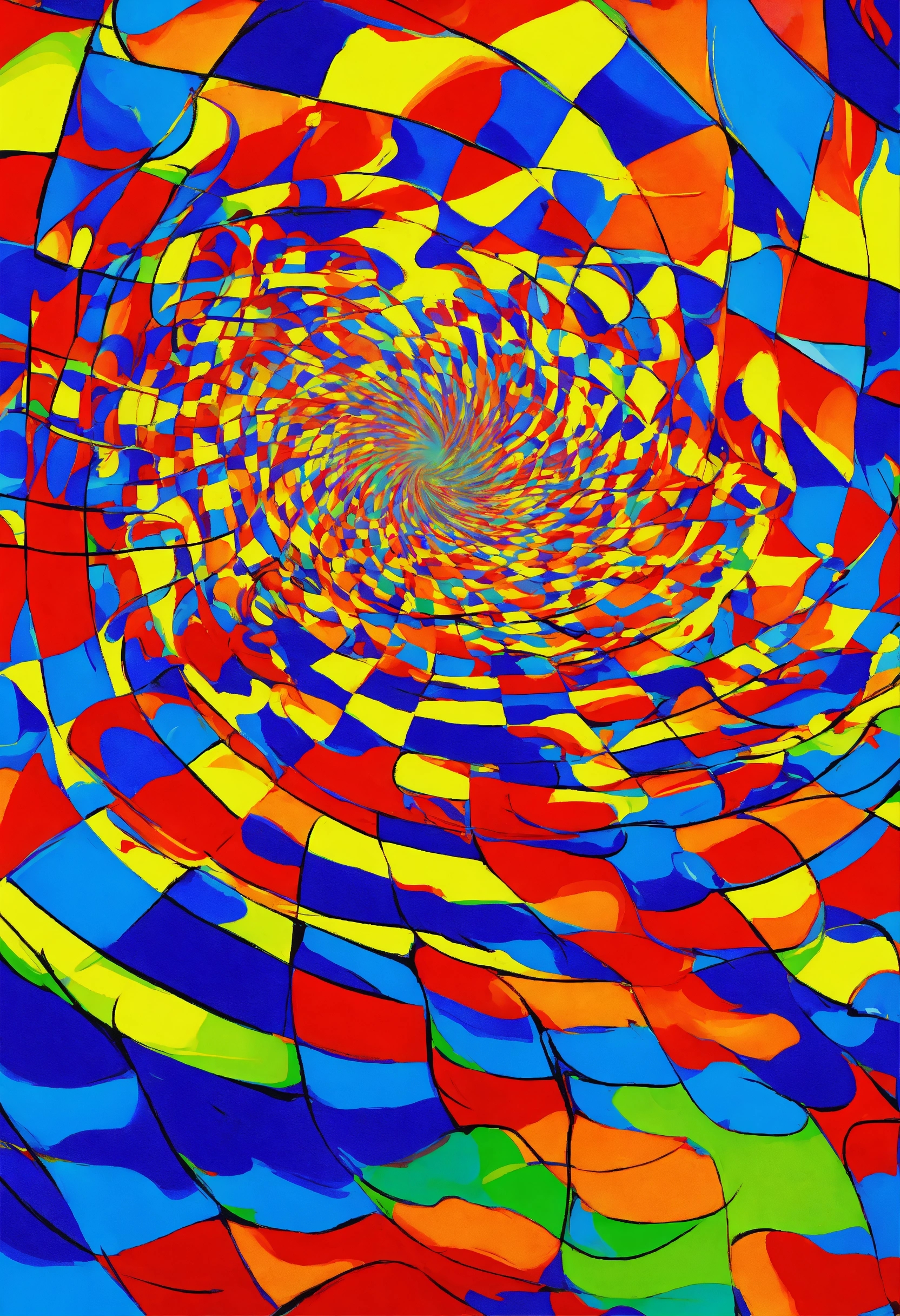 Vortex swirl psychedelic checkered flag in the style of peter max